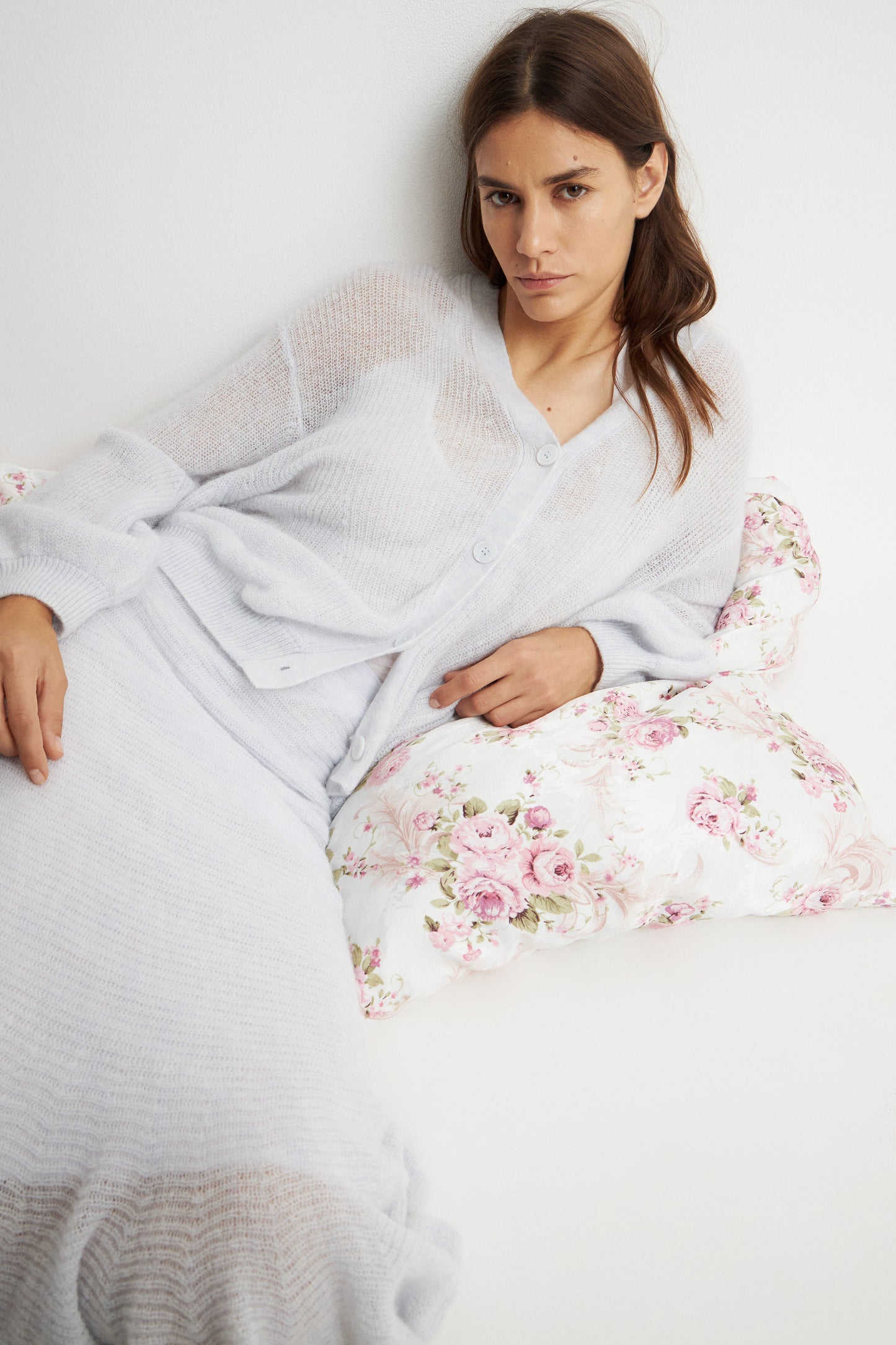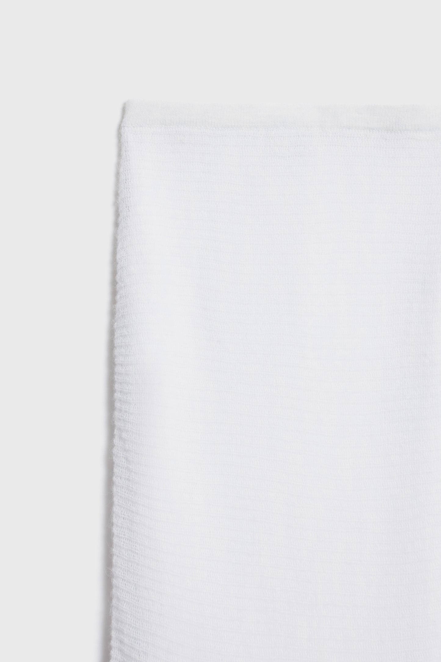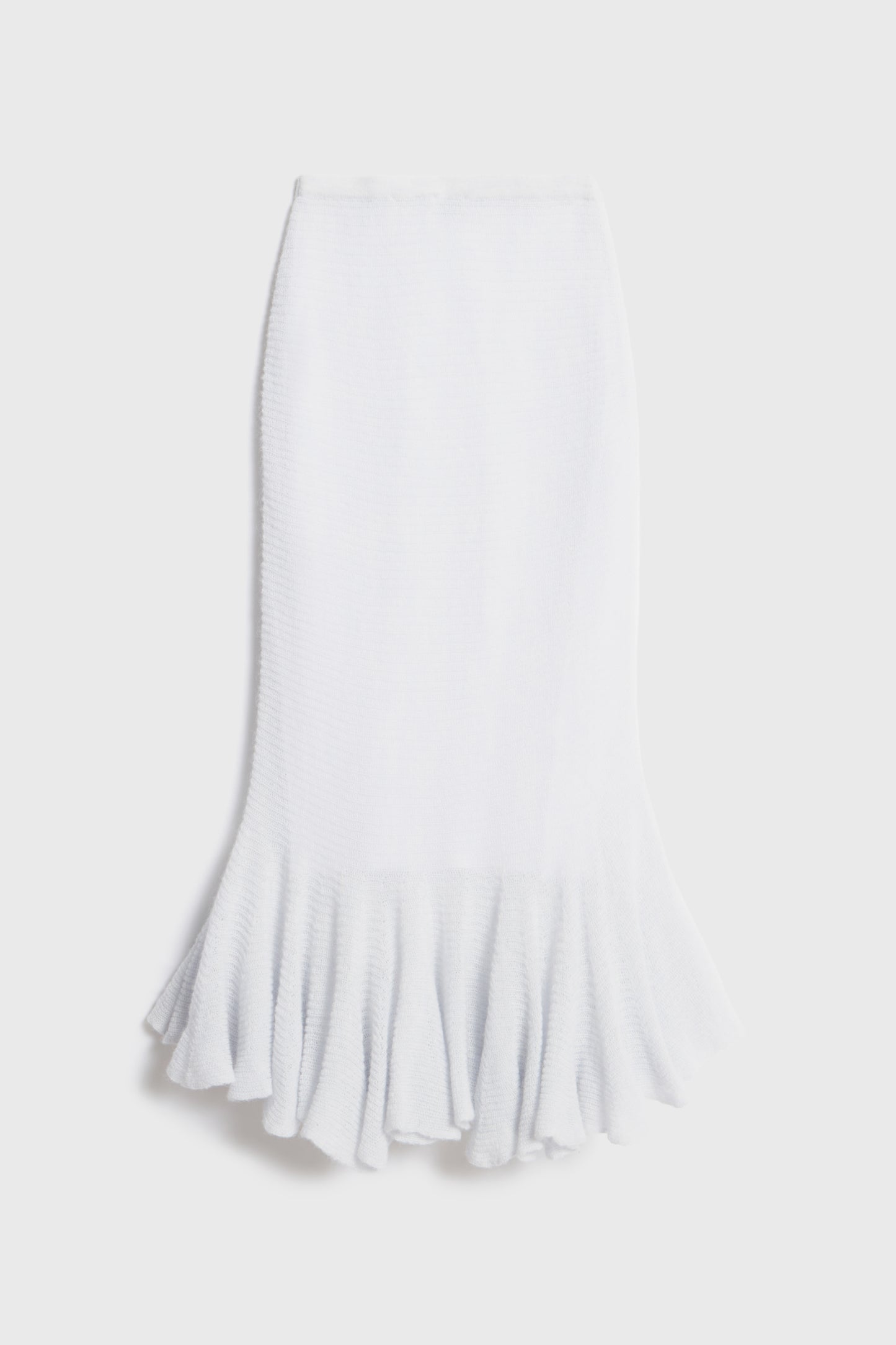 Calf-length skirt made of fluffy blend containing alpaca and wool. Features an elasticated waist and flared peplum with pleats.