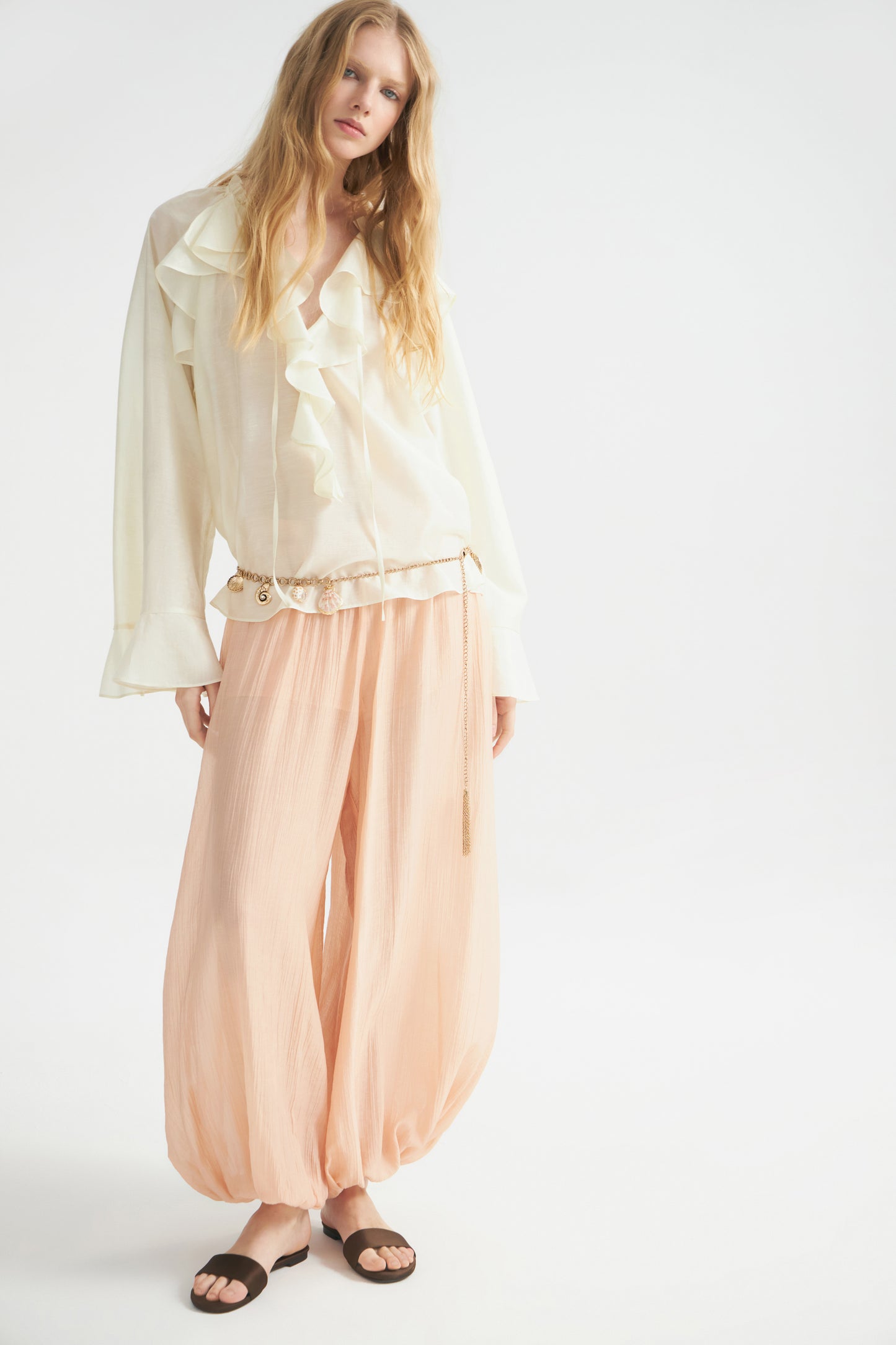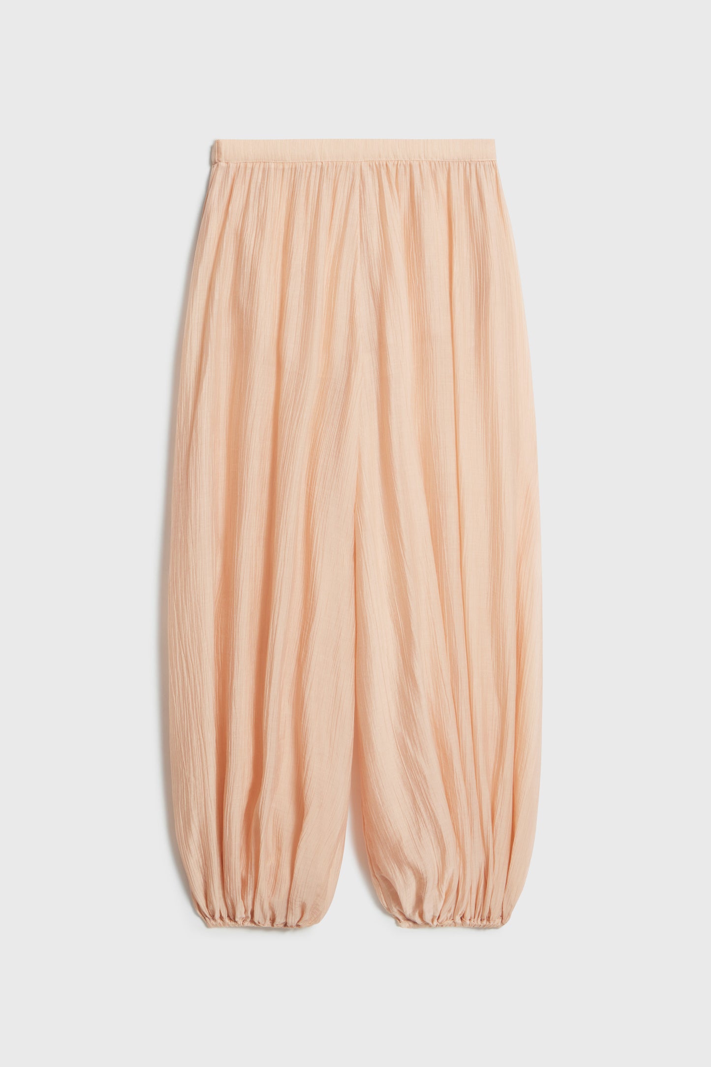 Relaxed-fit trousers in a lyocell blend. Matching shorts as a lining. Elasticized waistband and cuffs. Voluminous, curved legs, tapered to hems.