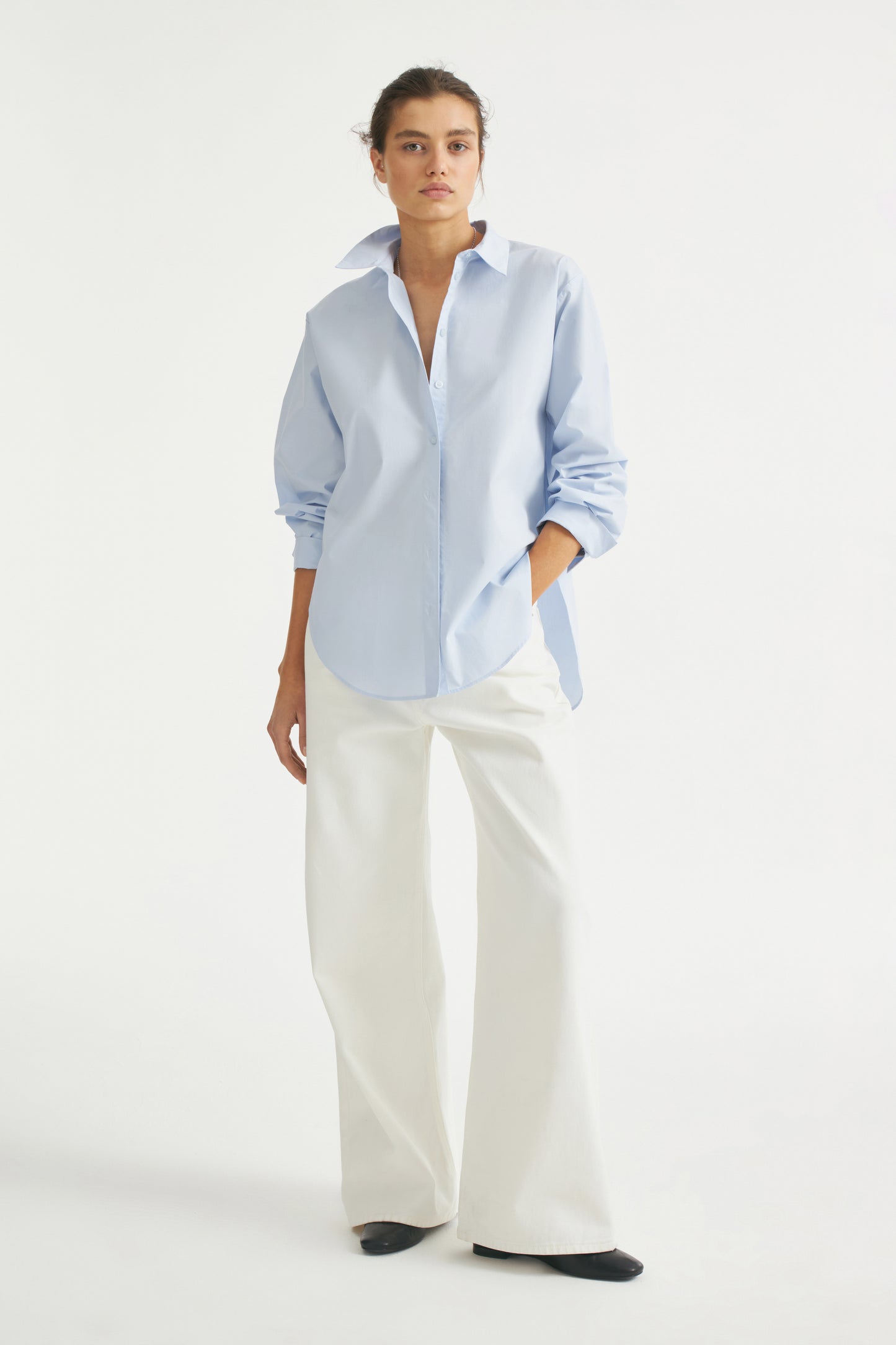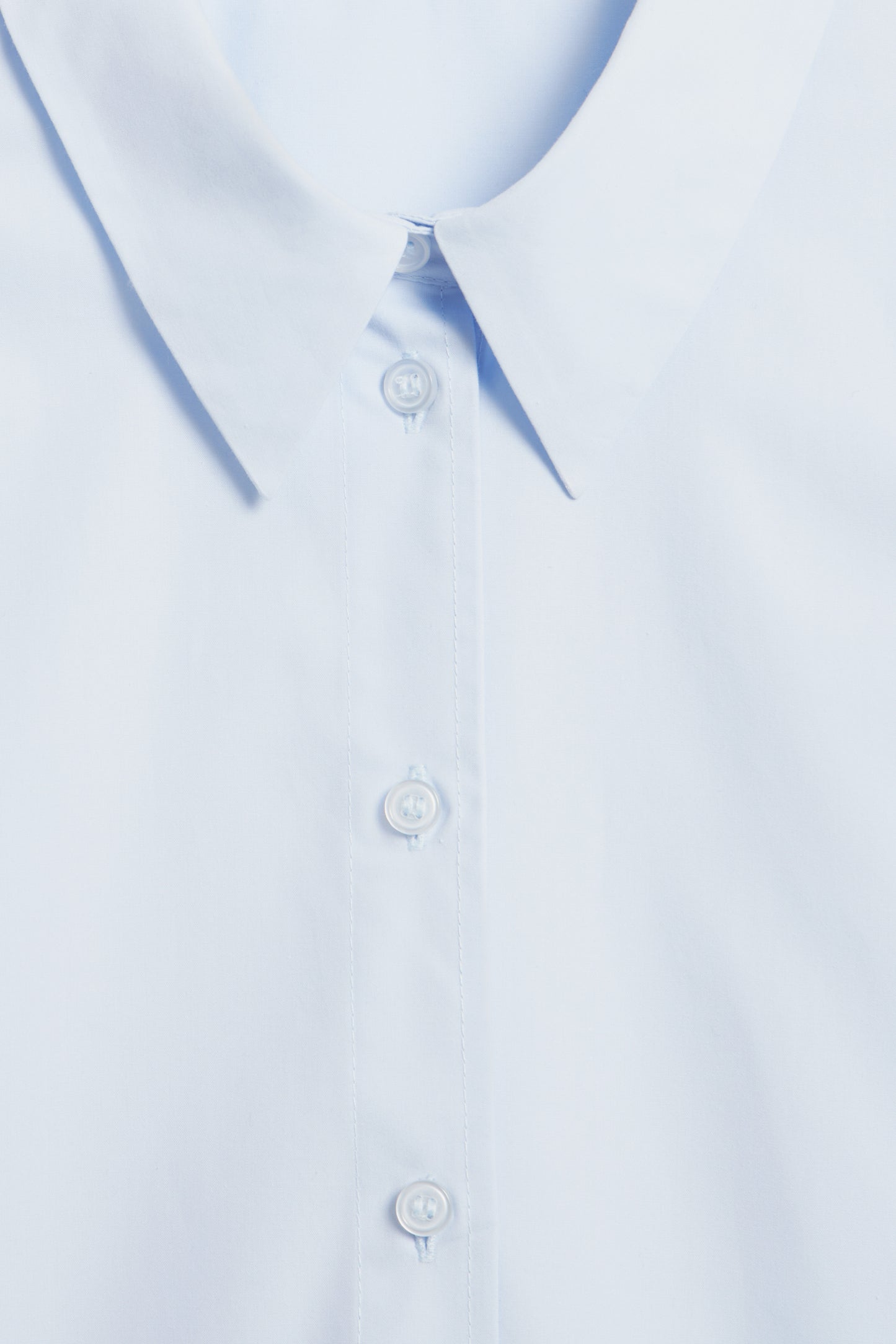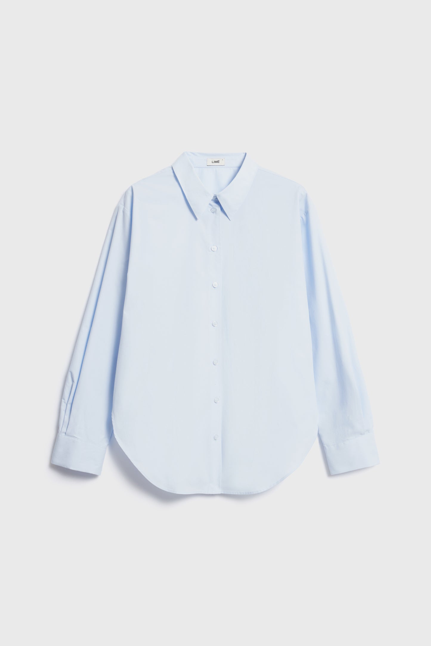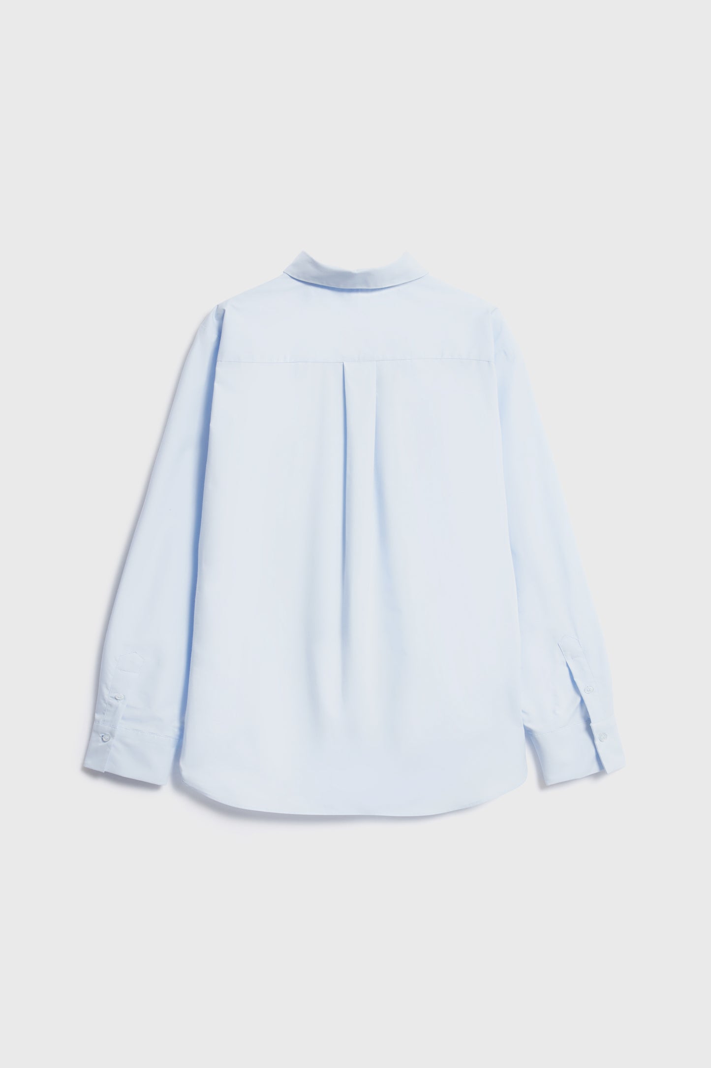 Straight fit shirt made of cotton. Featuring a lapel collar, long sleeves with buttoned cuffs. Gently rounded hem. Pleated detail at the back. Button-up front.