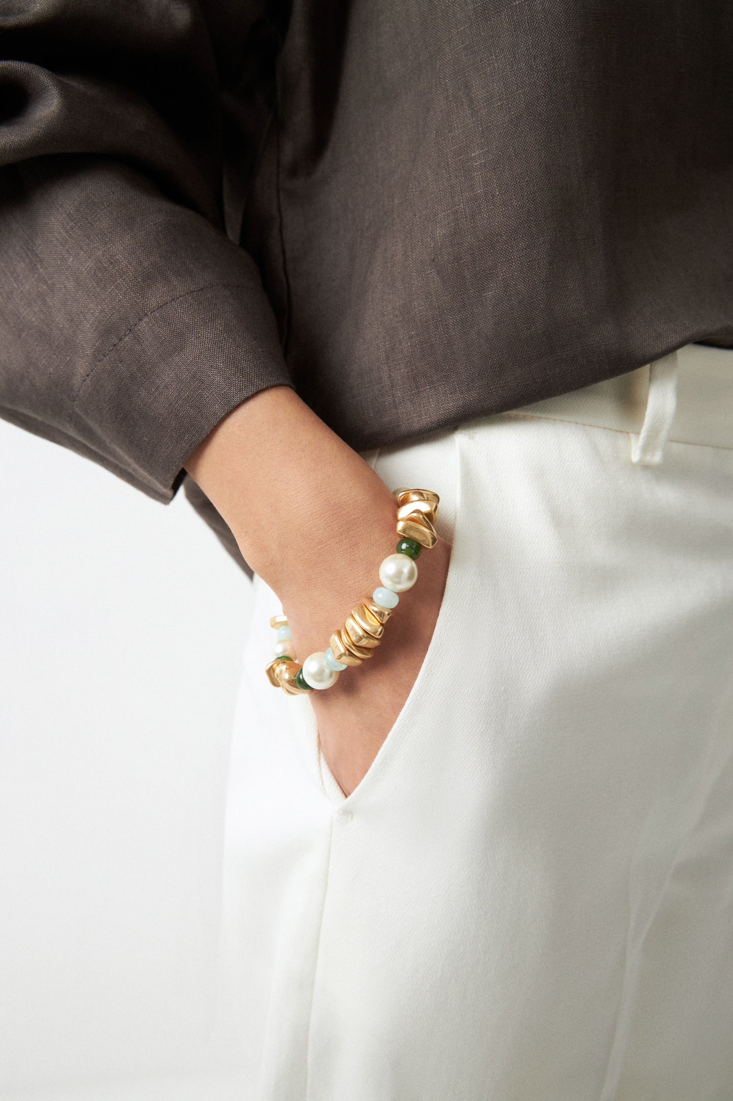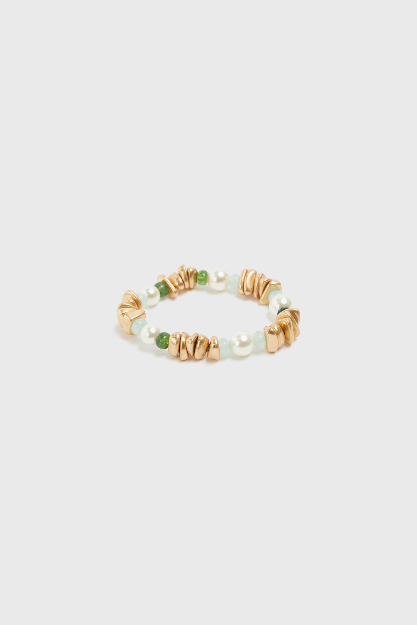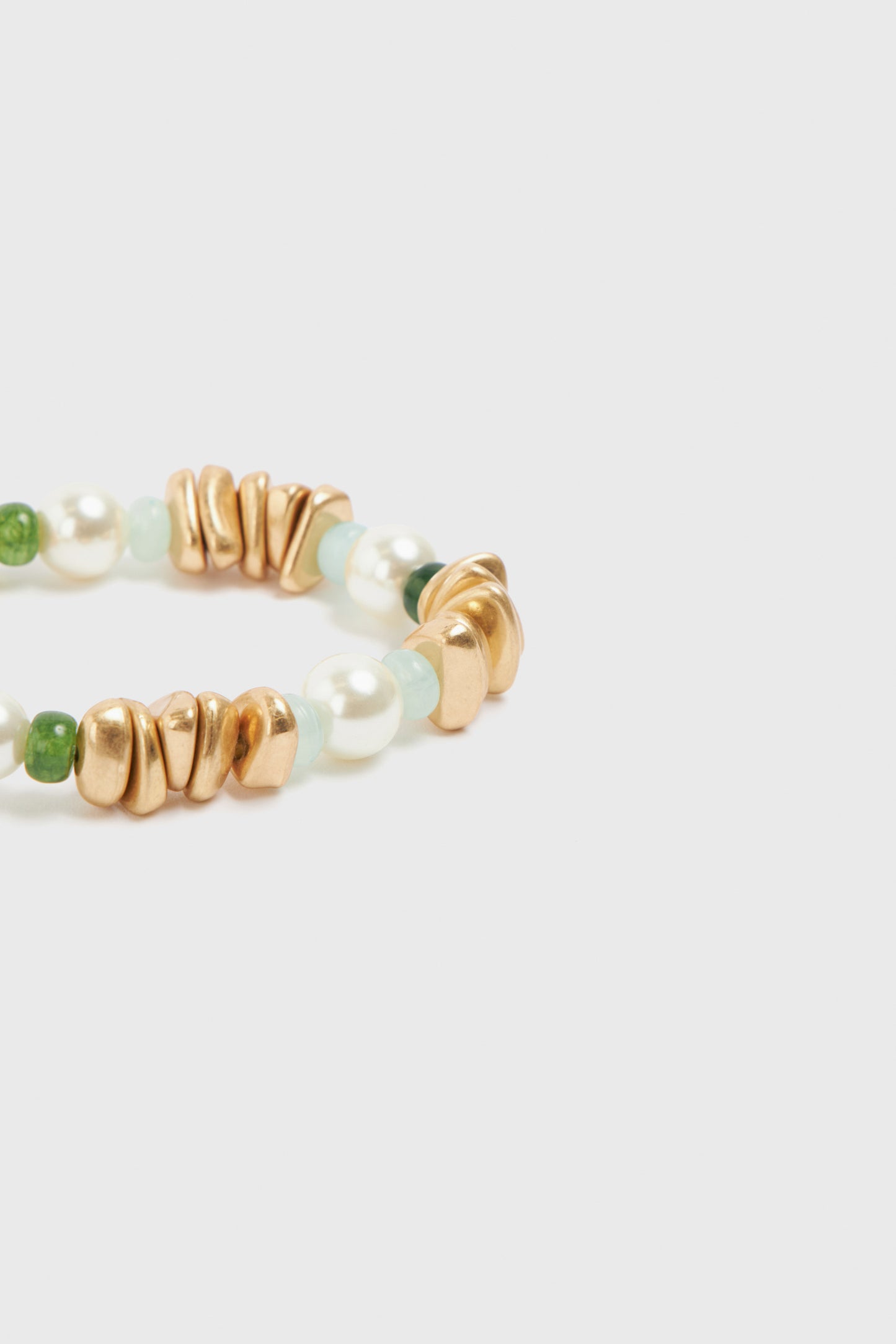 Bracelet strung with small beads in different shapes. ONE SIZE: 6 cm