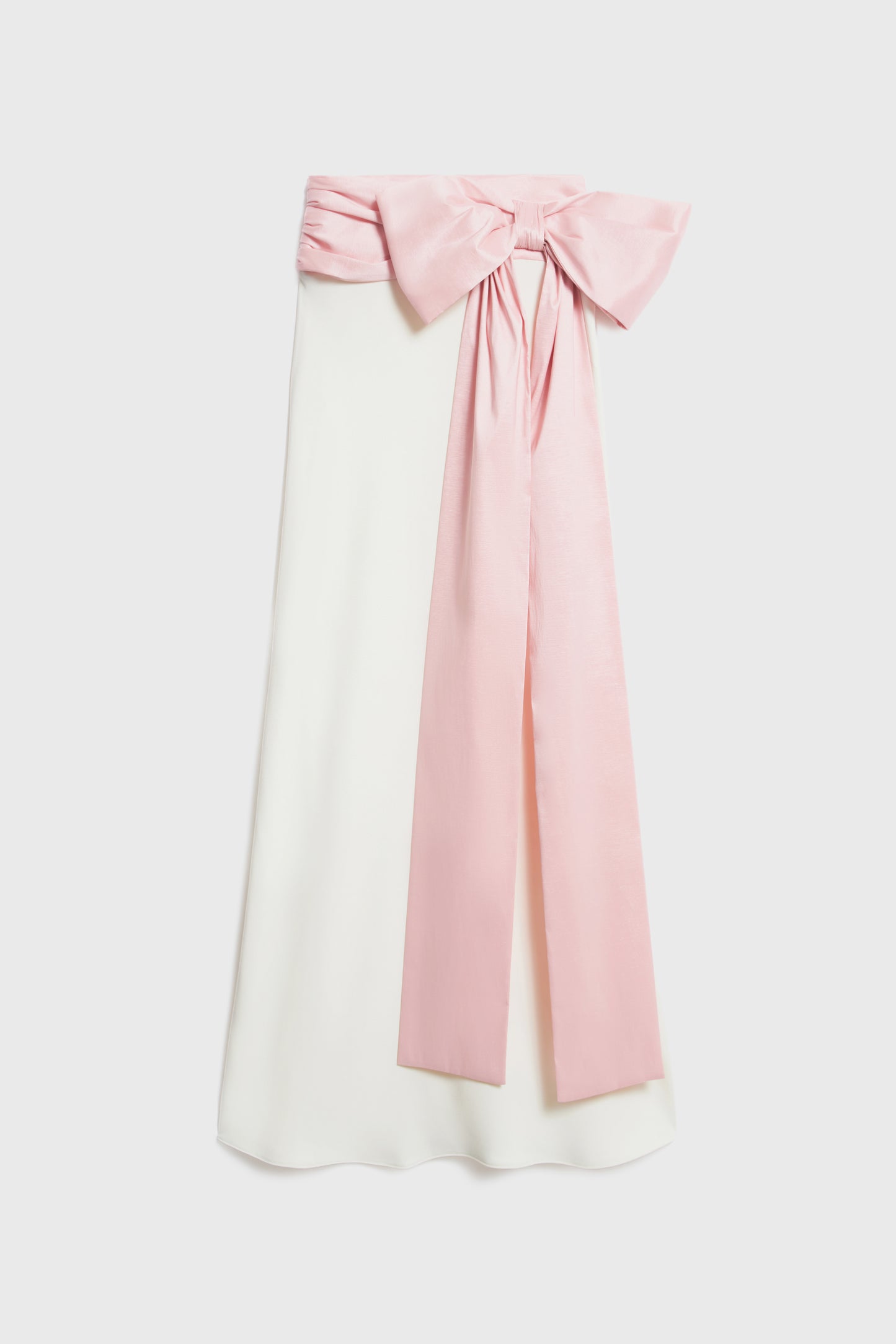 Rich details lend a modern view to this season's evening collection. This bias-cut skirt features a statement satin bow-detail. Hidden zip closure at the side.