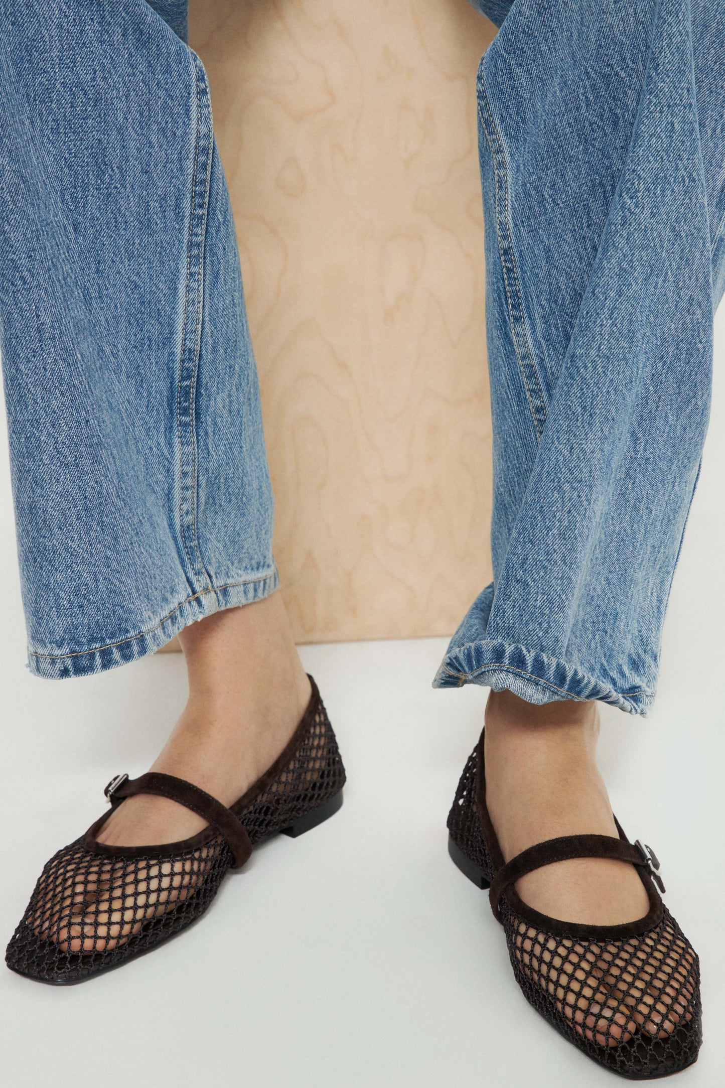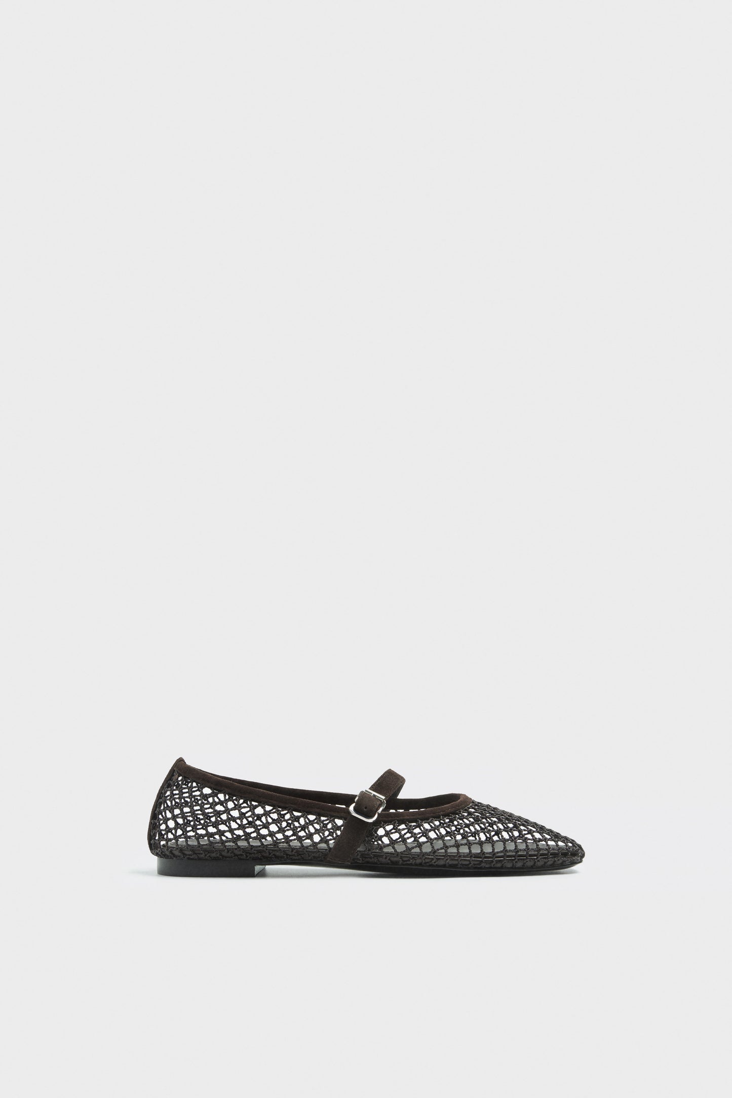 BRAIDED SUEDE-DETAIL MARY JANE FLATS