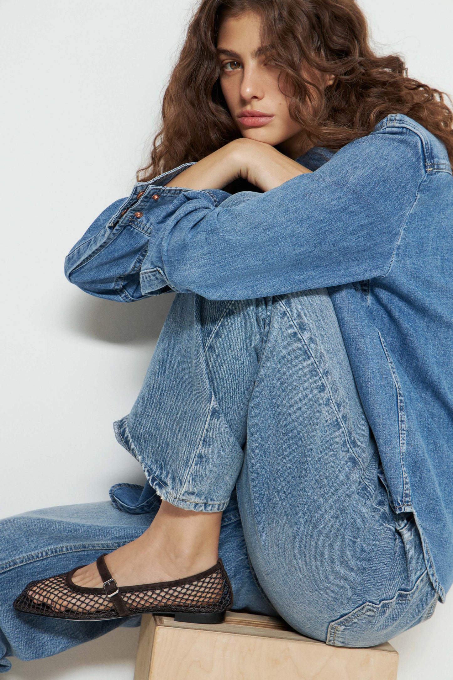 Mary Jane flats in braided, coated fabric with 100% suede trim. Square toes. Adjustable foot strap with buckle in metal. Leather linings and insoles. Your purchases are delivered with a fabric bag.
