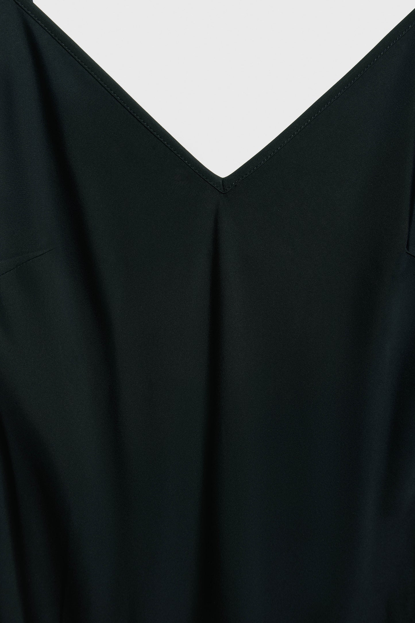 Sleeveless midi dress in satin made from a viscose. Featuring with a V-shaped neckline and thin adjustable shoulder straps.