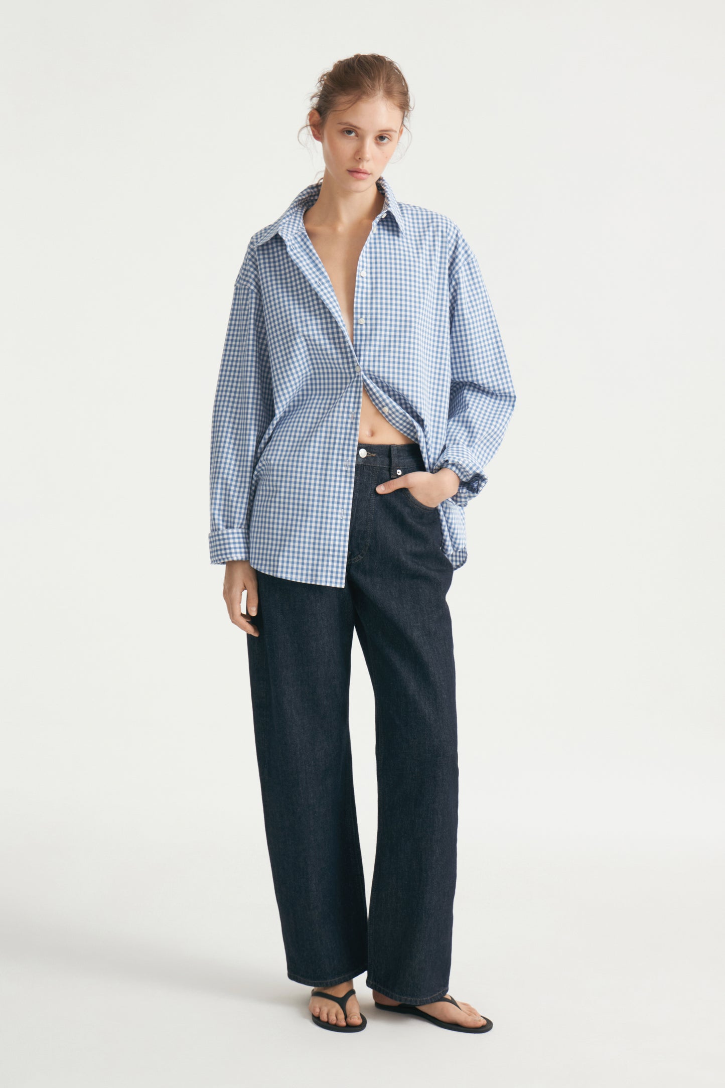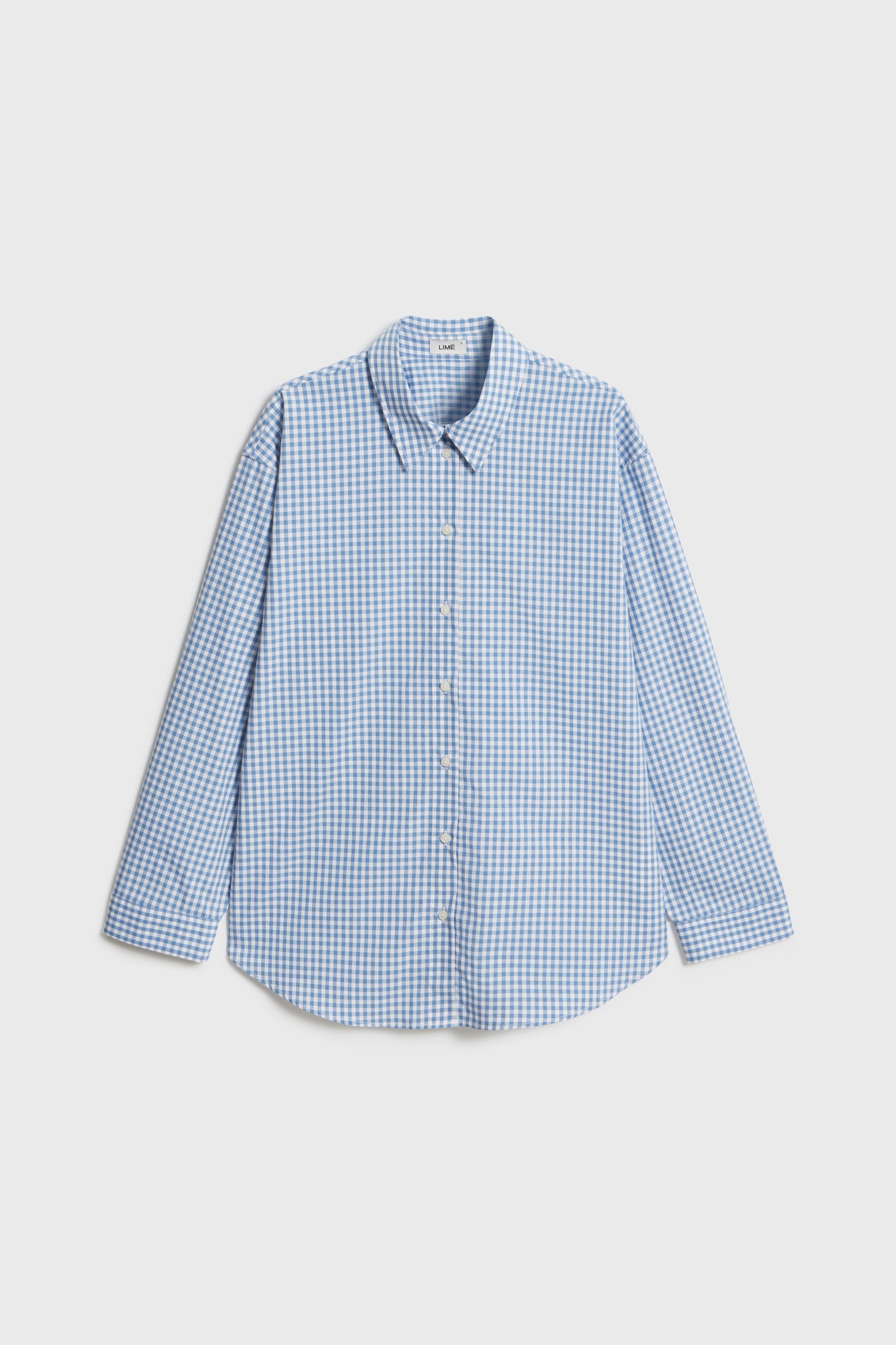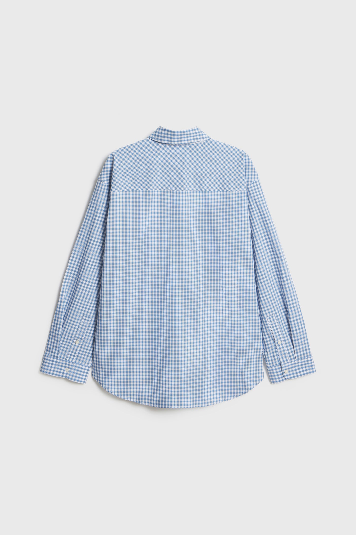 Collared shirt in cotton with a check pattern. Button front and long sleeves with adjustable buttoning at the cuffs. Rounded hem.