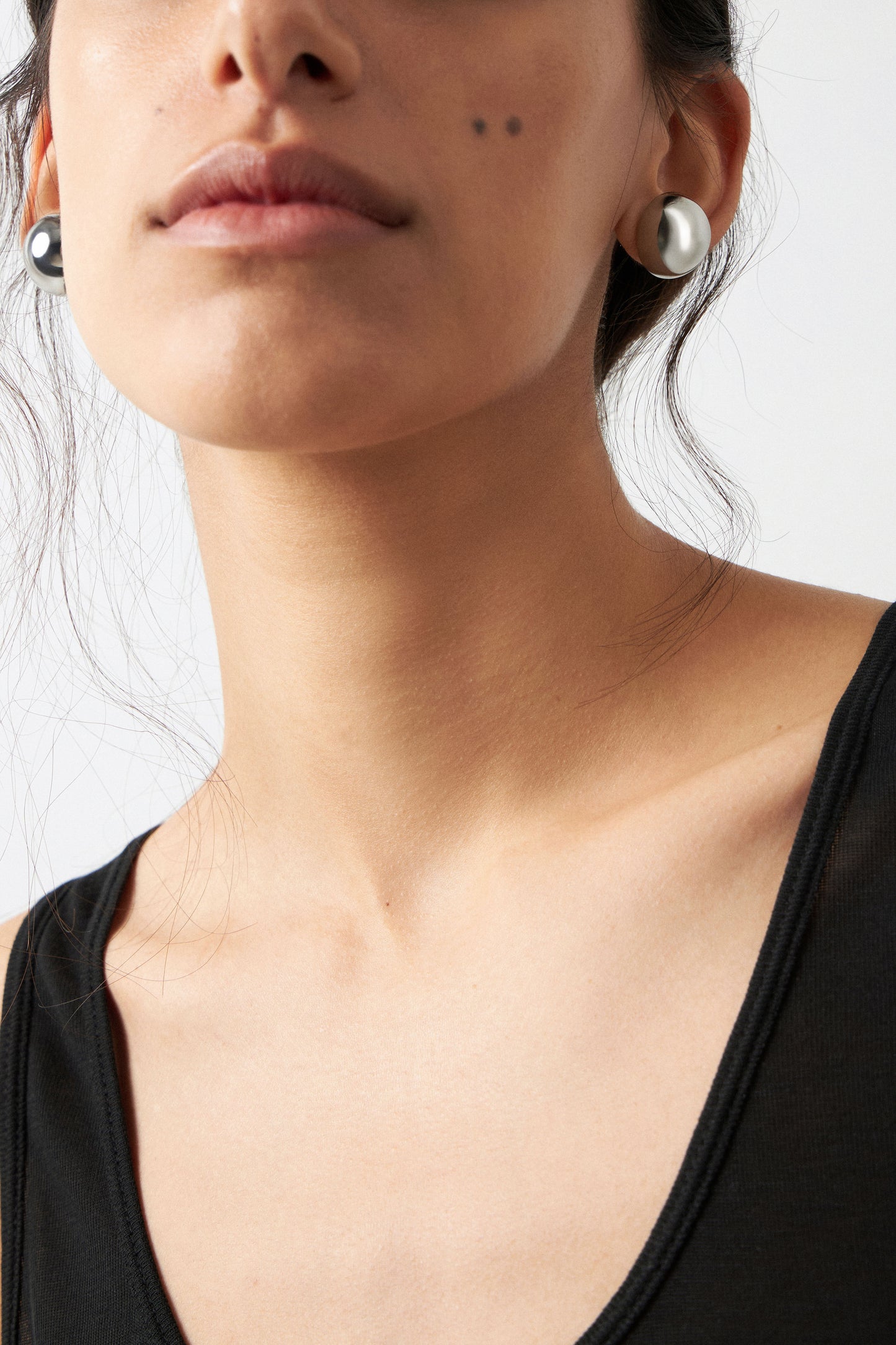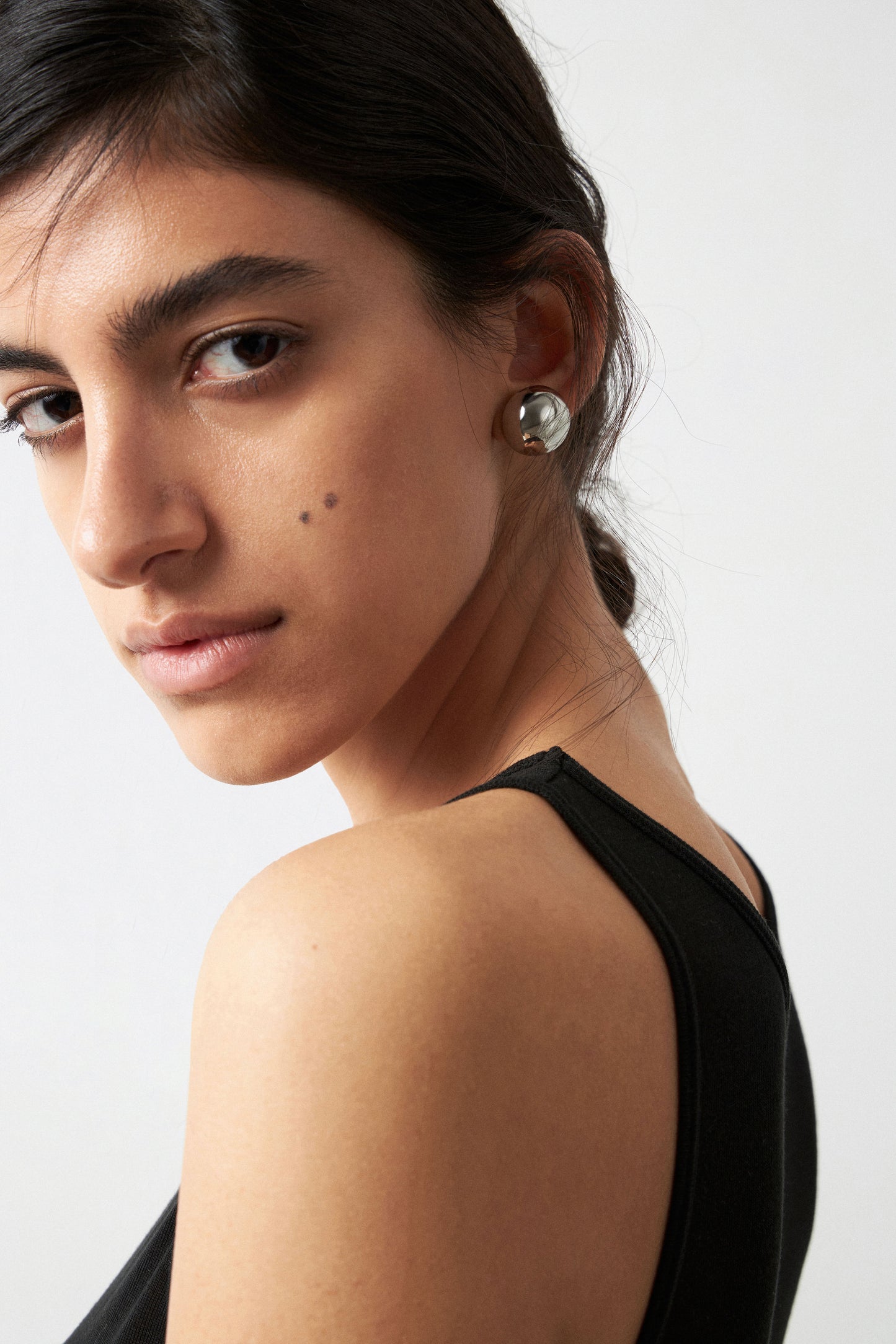 Circular-shaped earrings made of lightweight plastic. Push-back closure.