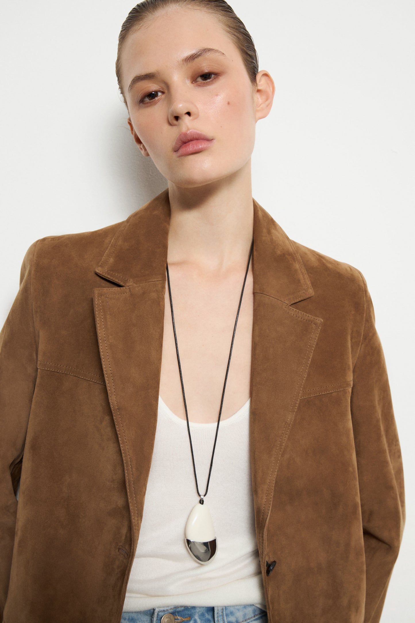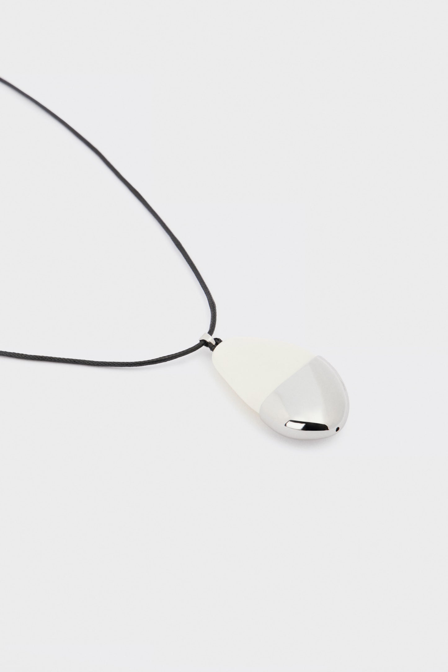 Cord necklace with a drop-shaped metal pendant. Adjustable length. Length / Size: 97 / 6,5 cm