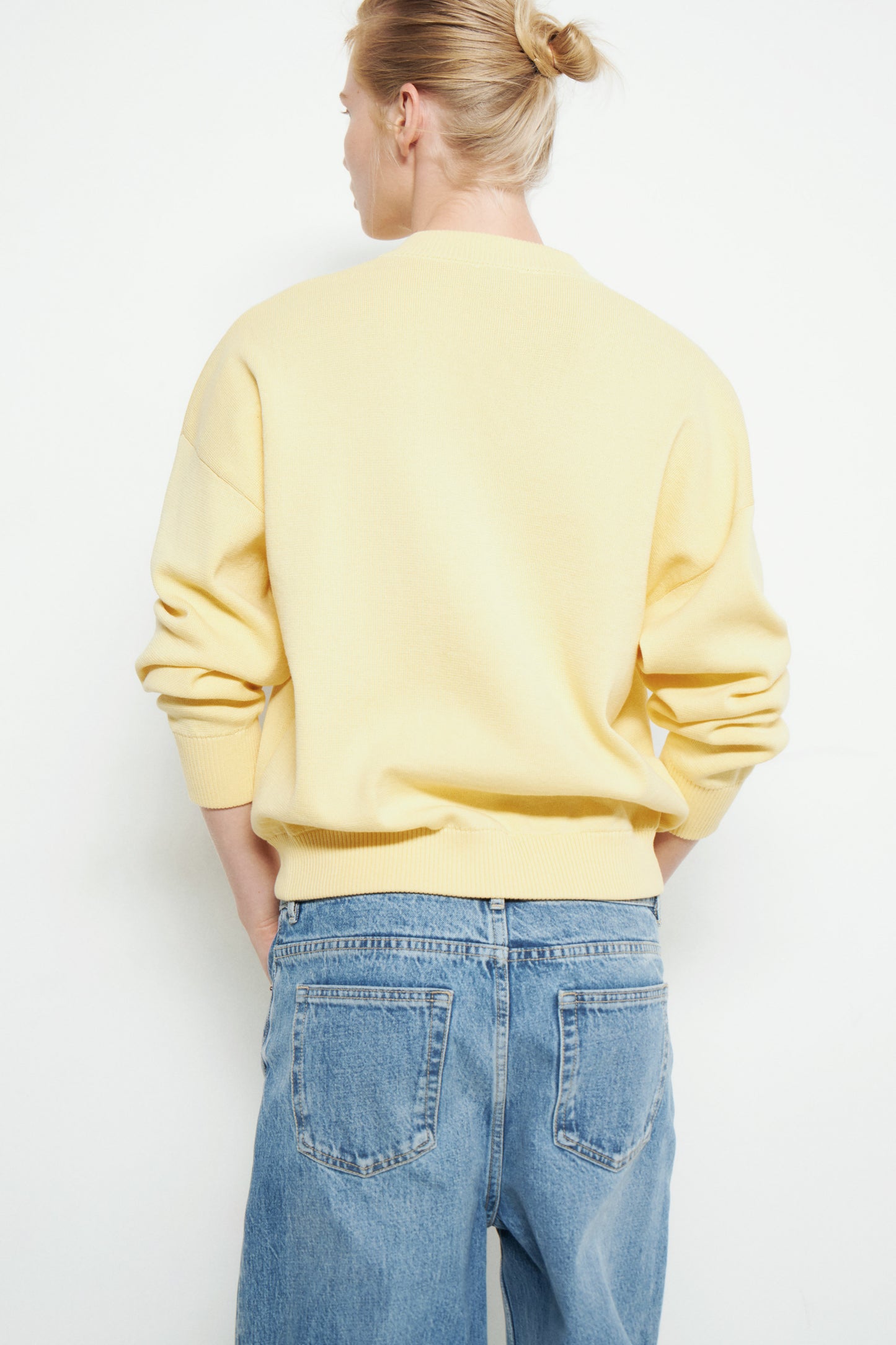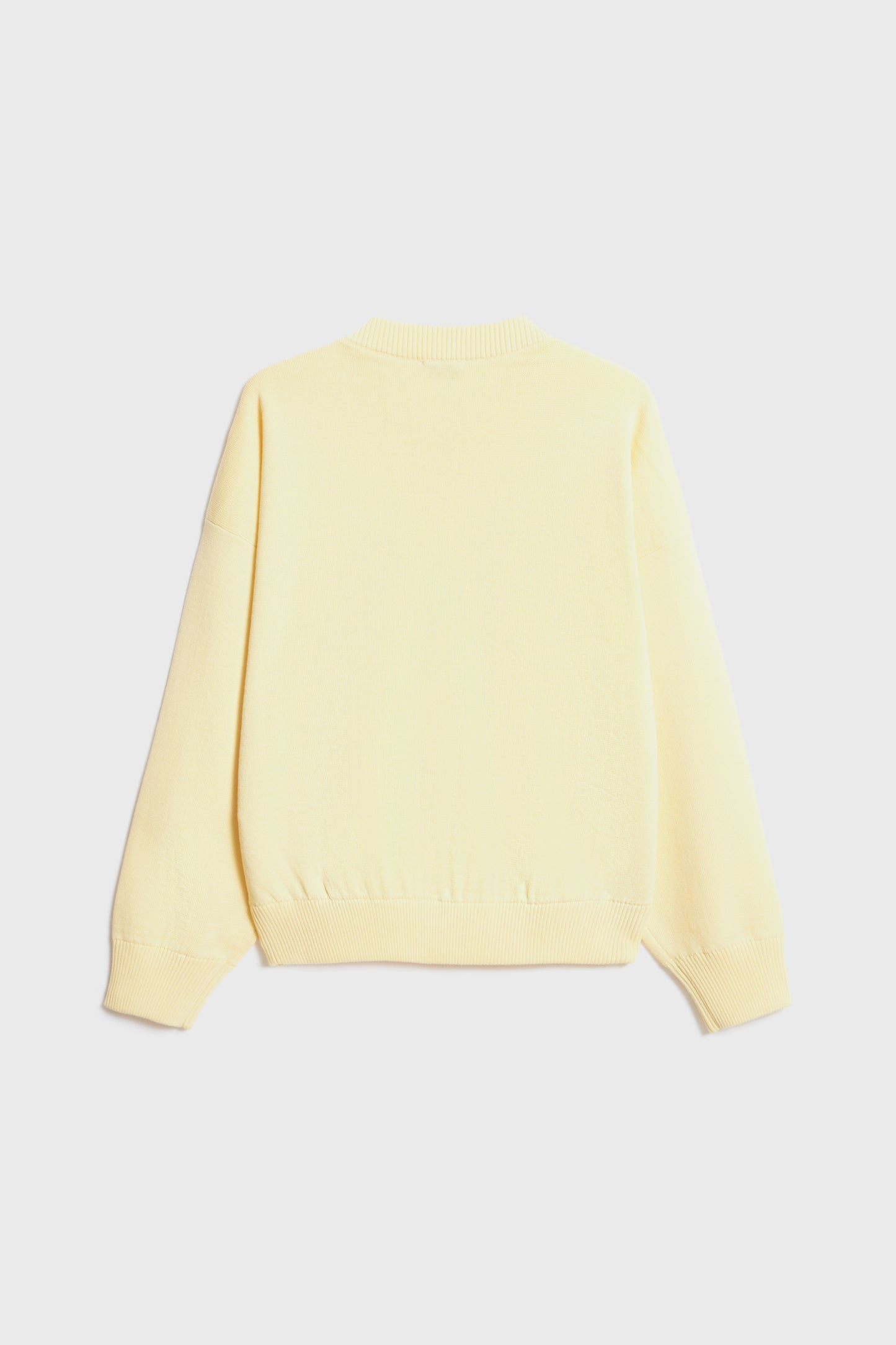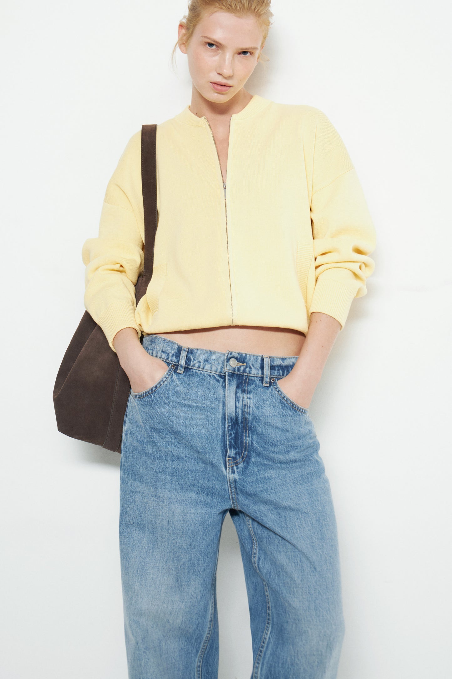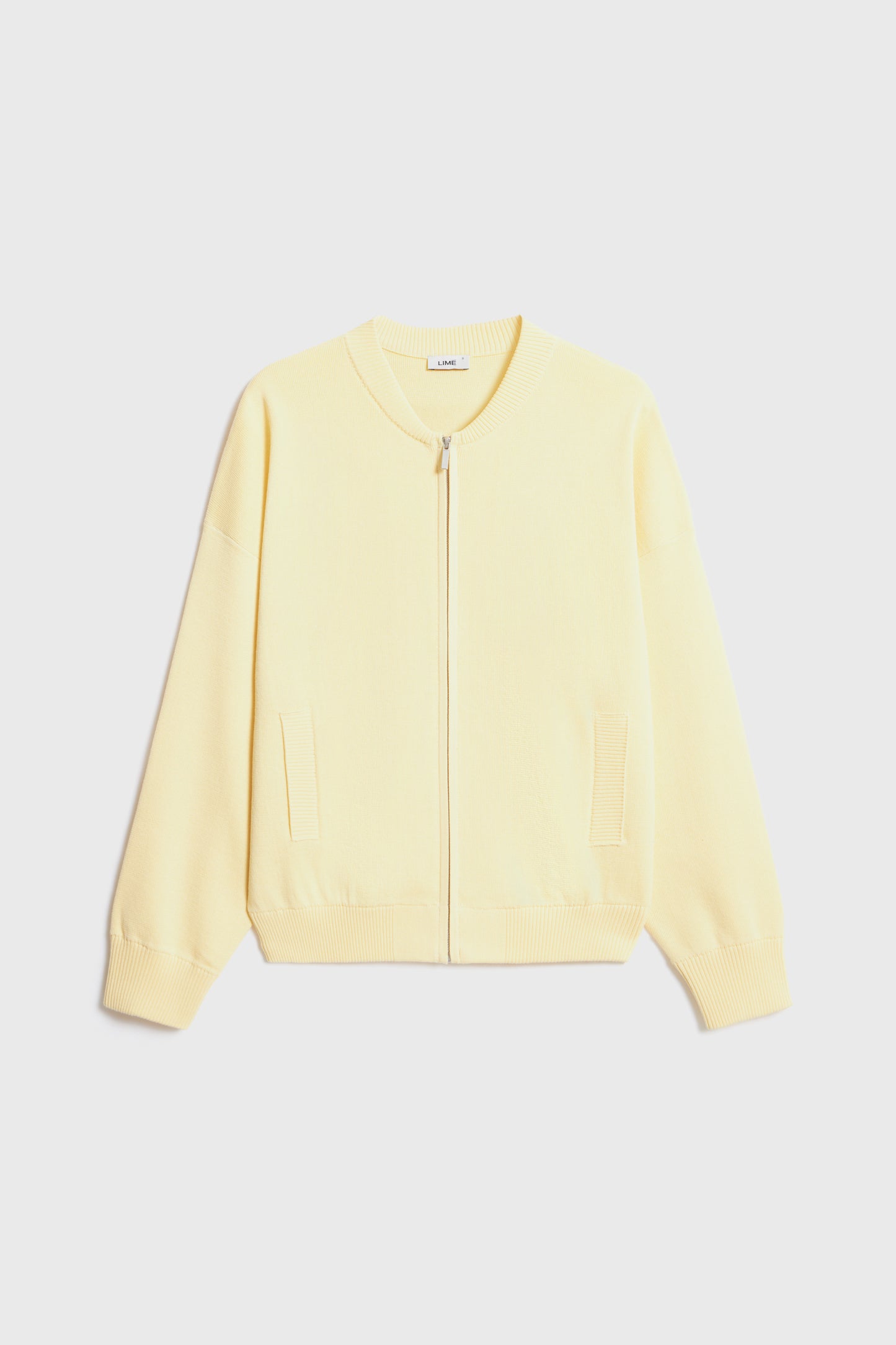 A knitted cardigan with a straight fit crafted from a soft cotton blend. It features a round neckline with a collar, long sleeves, front pockets and a versatile zipper.