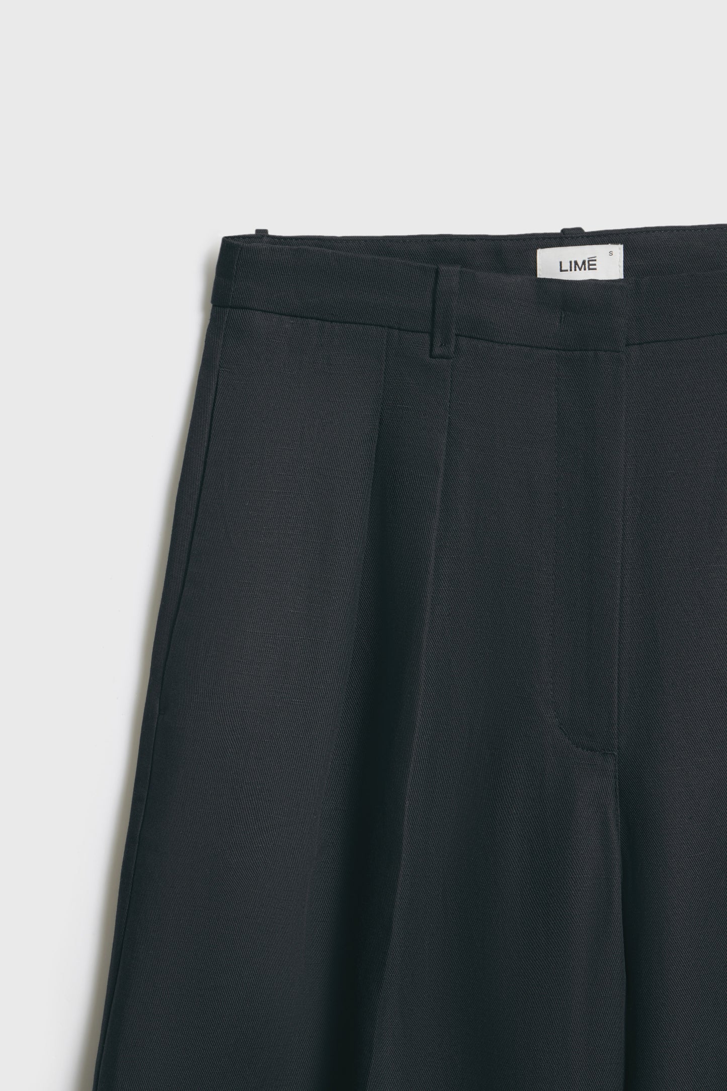 Full-length trousers with darts crafted from a cotton and linen blend. Wide-leg design. Featuring front pockets and decorative rear welt pockets. Front zip fly, button and metal hook fastening.