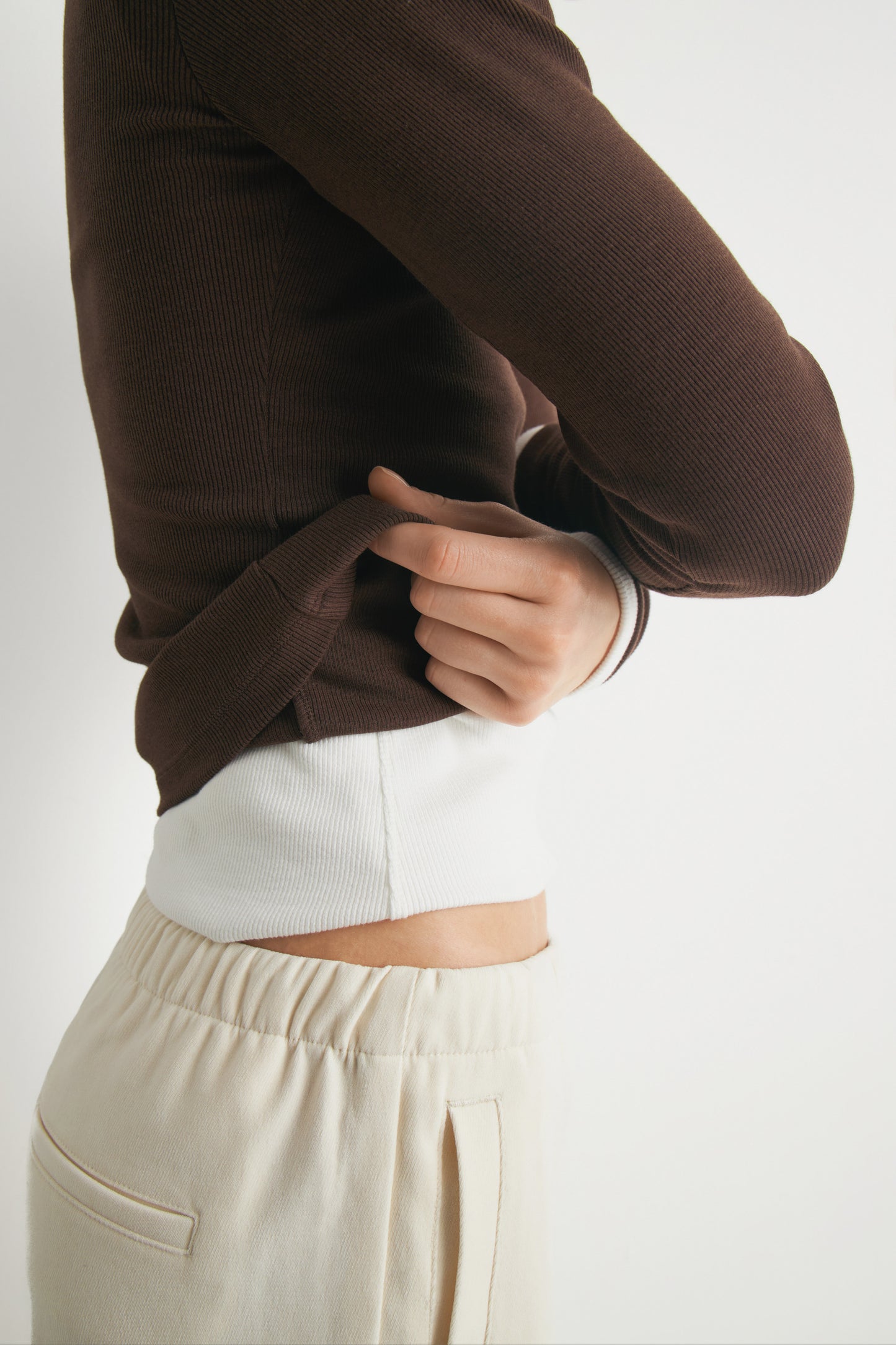 Fitted T-shirt in soft cotton and viscose blend with a round neckline and long sleeves.