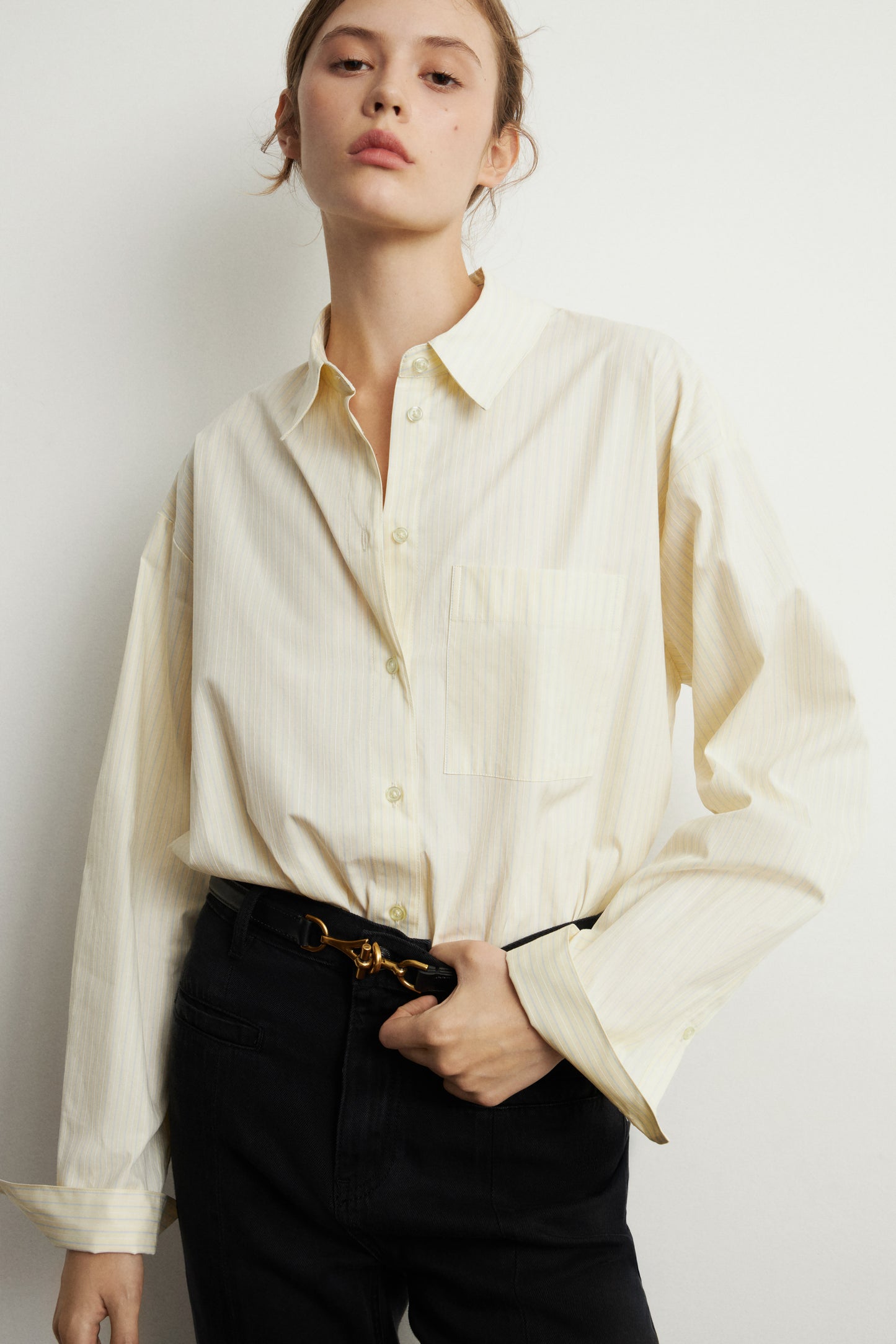 Collared oversize shirt in cotton. Detailed with an open chest pocket and long sleeves with buttoned cuffs. Rounded hem. Button-up front.