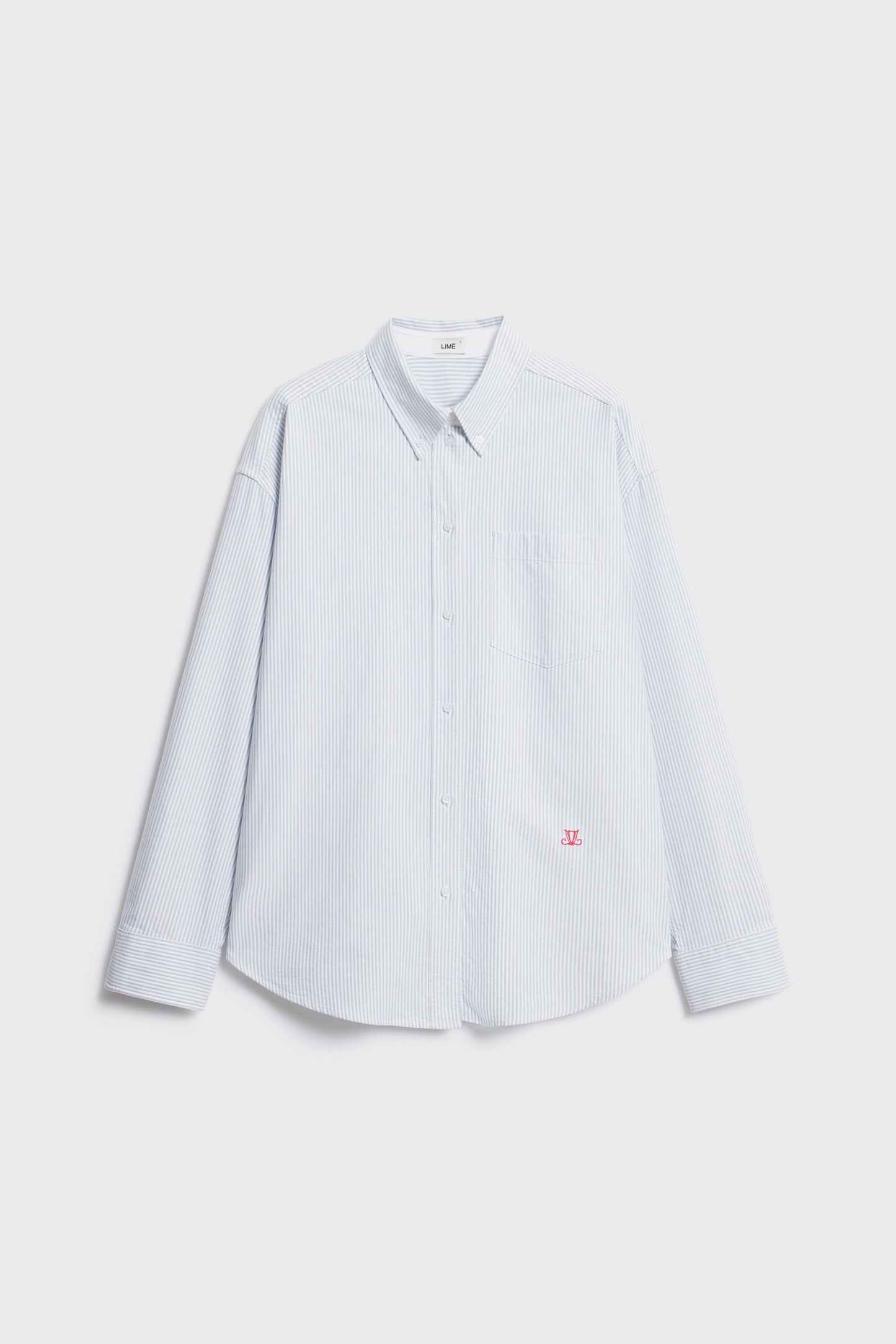 Straight fit shirt with cuffed long sleeves in cotton. Contrast embroidery detail. Button-down collar. Chest patch pocket. Rounded hem. Button-up front.