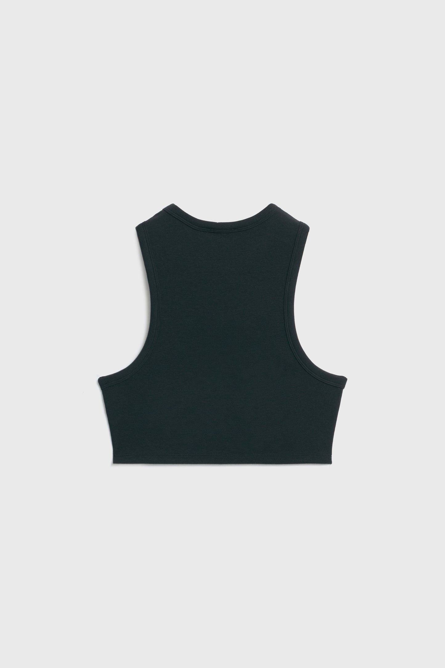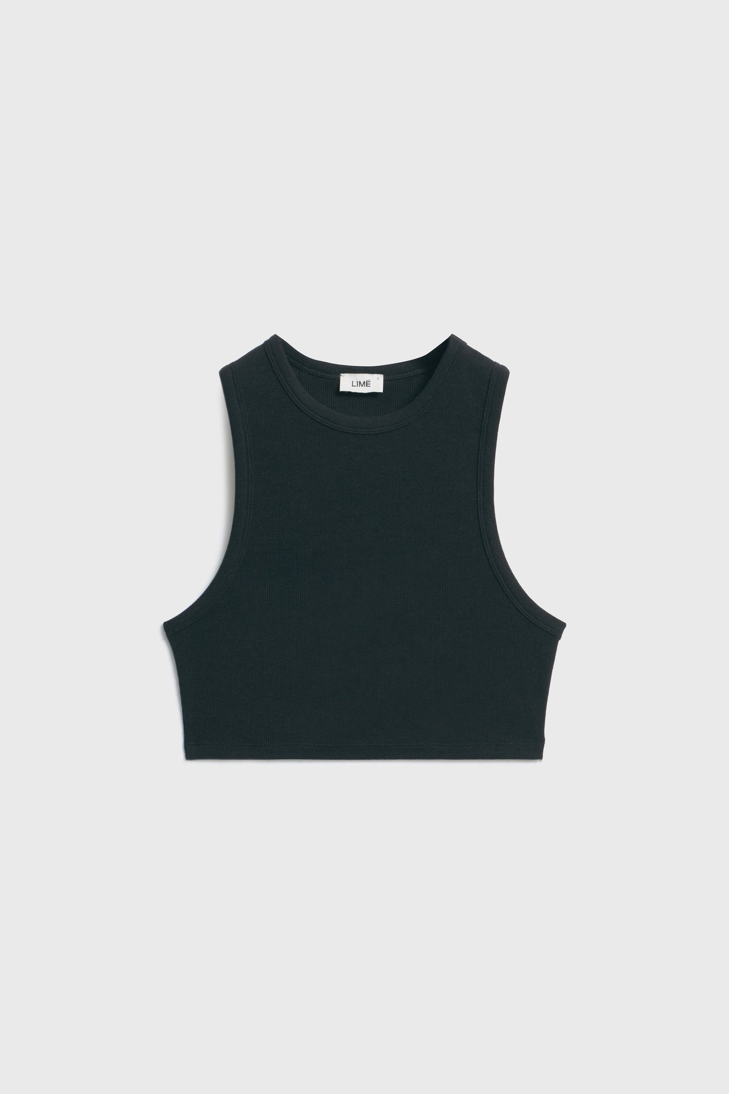 Cropped top in midweight, ribbed jersey made from a cotton and viscose blend with a round neck and straight-cut hem. Slim fit that hugs the contours of your body, creating a fitted silhouette.