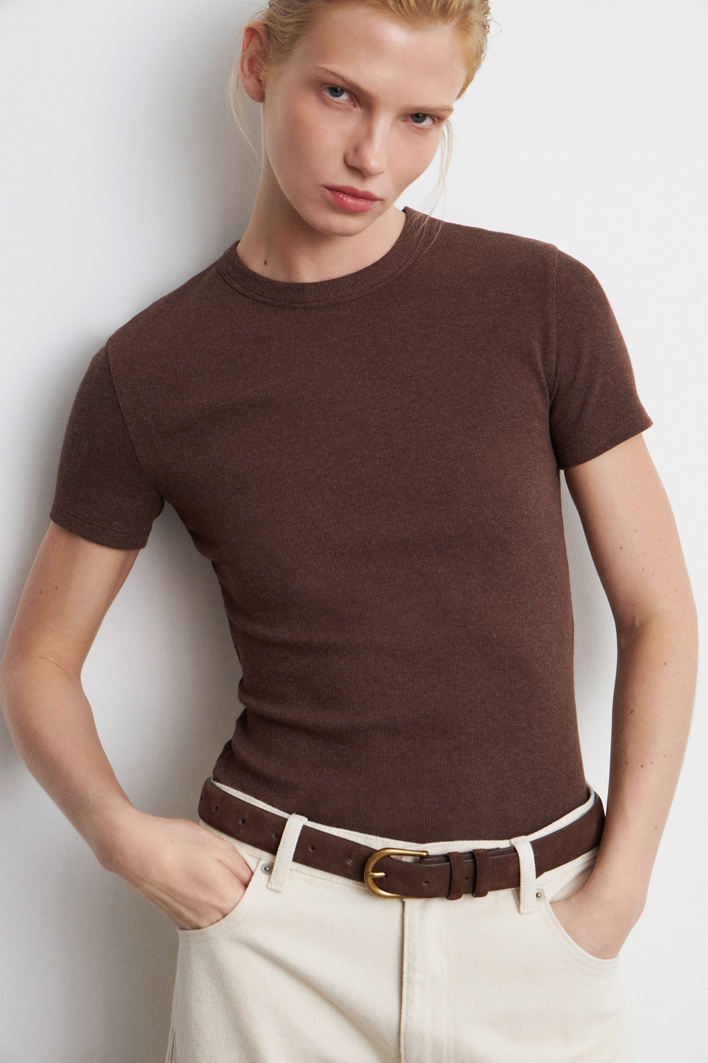 Fitted T-shirt made of stretch cotton. Round neck and short sleeves.