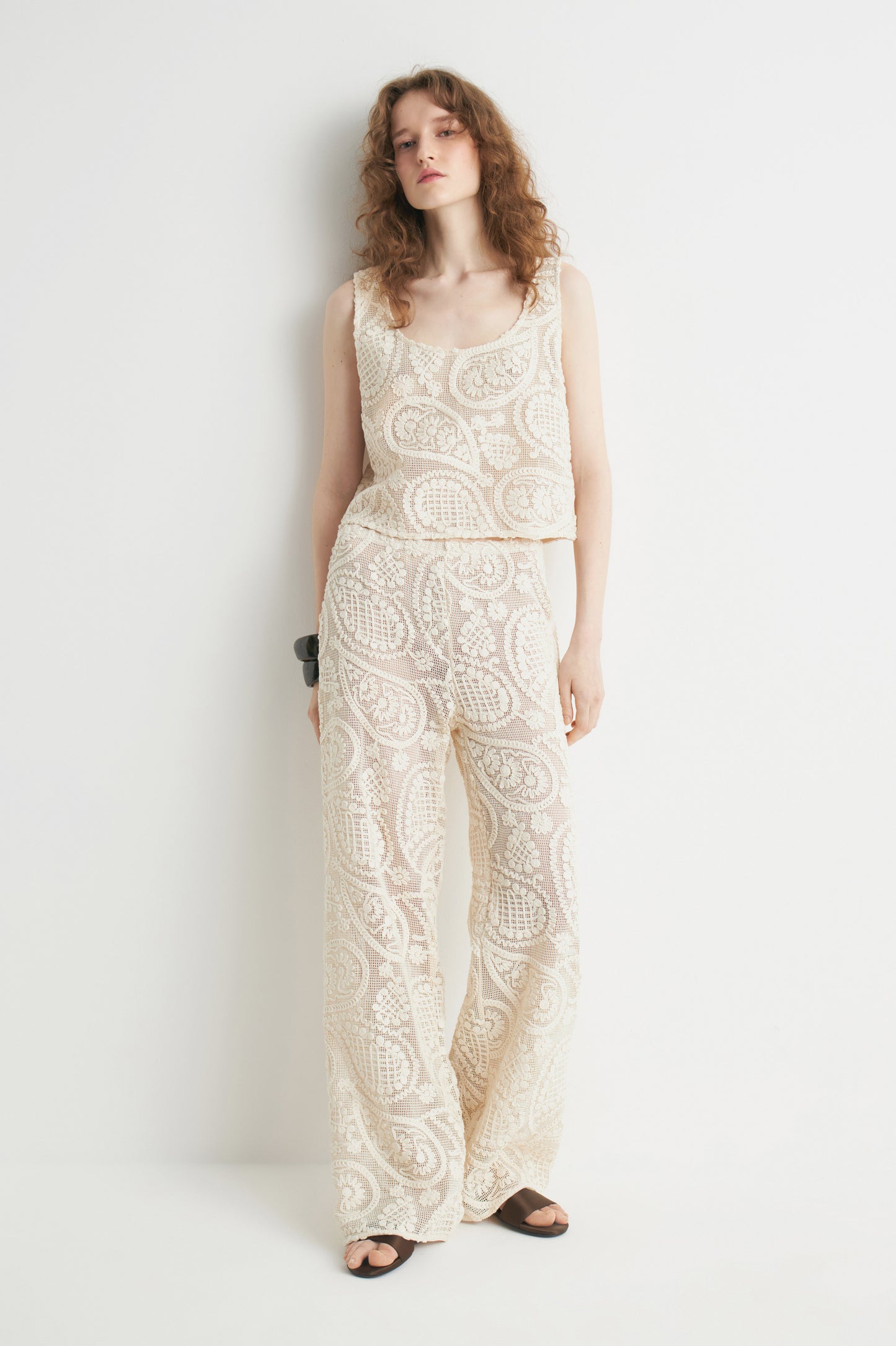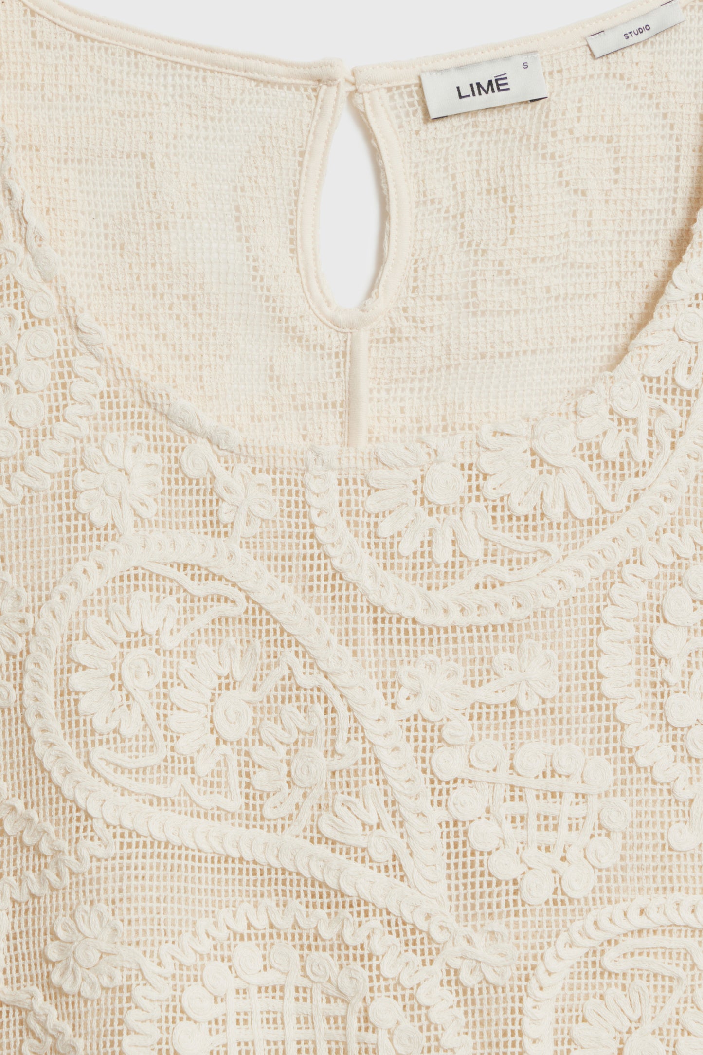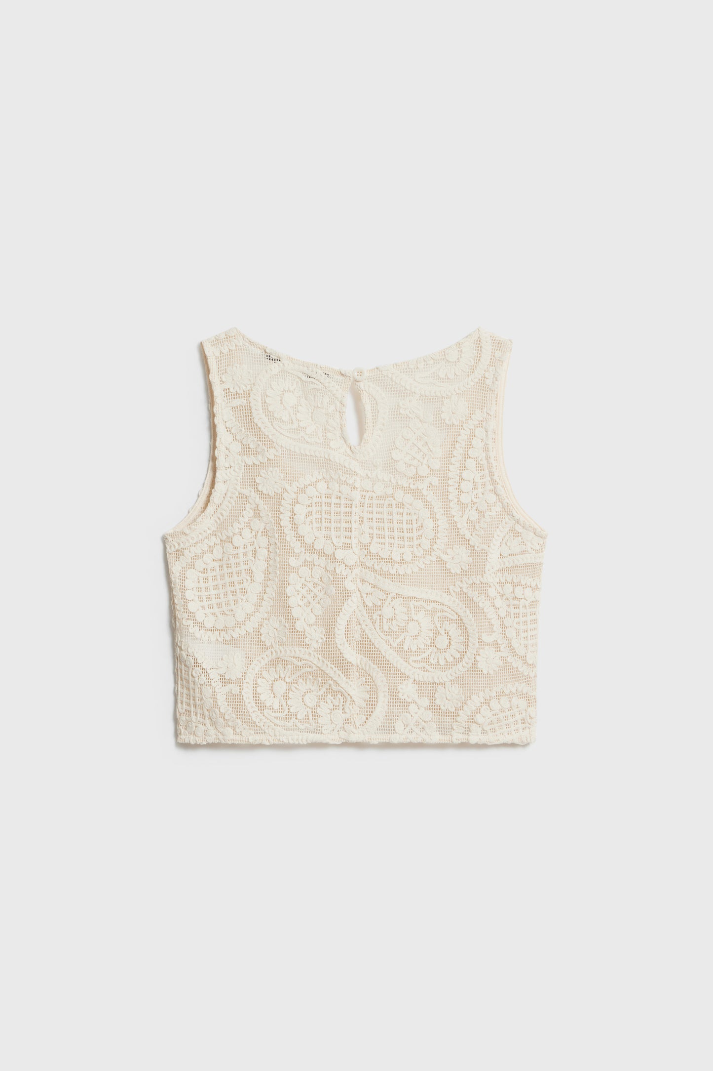 Cropped top in a crochet-look cotton with a round neckline. Adorned with a bohemian-inspired ethnic motif. Unlined for a lightweight feel, it looks best paired with the matching piece.