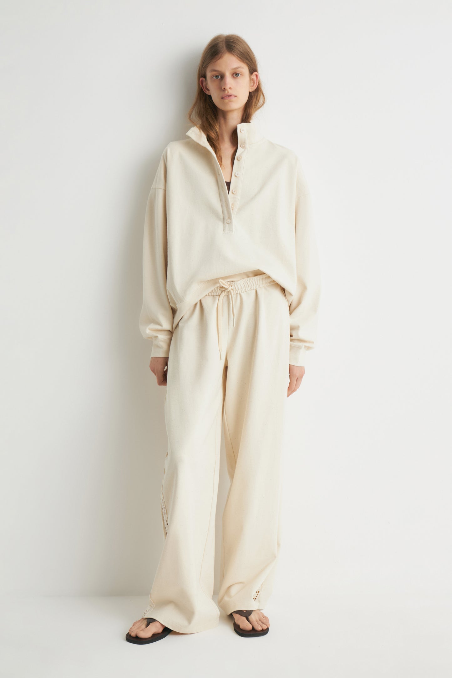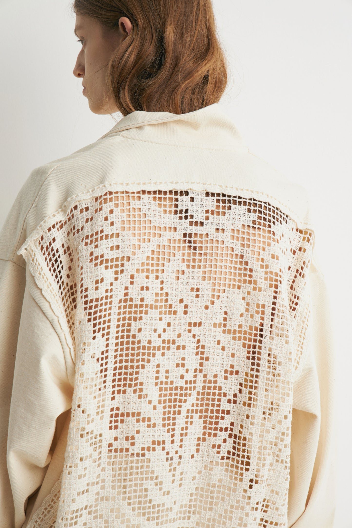 CROCHET-LOOK DETAIL SWEATSHIRT