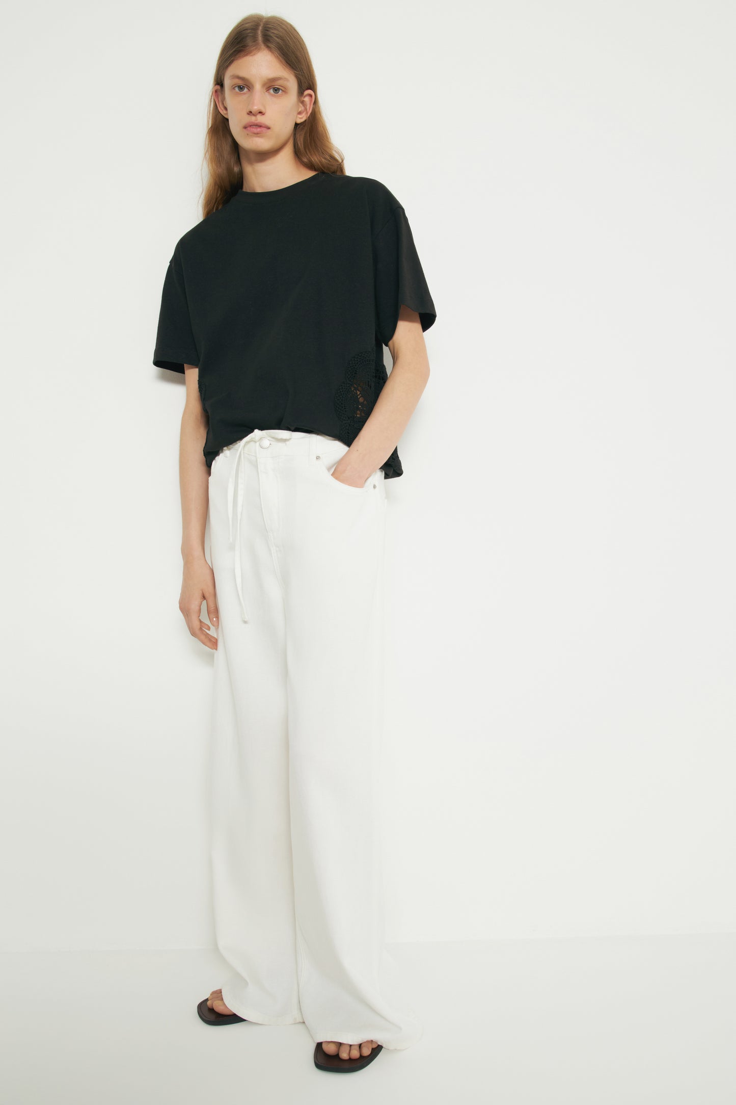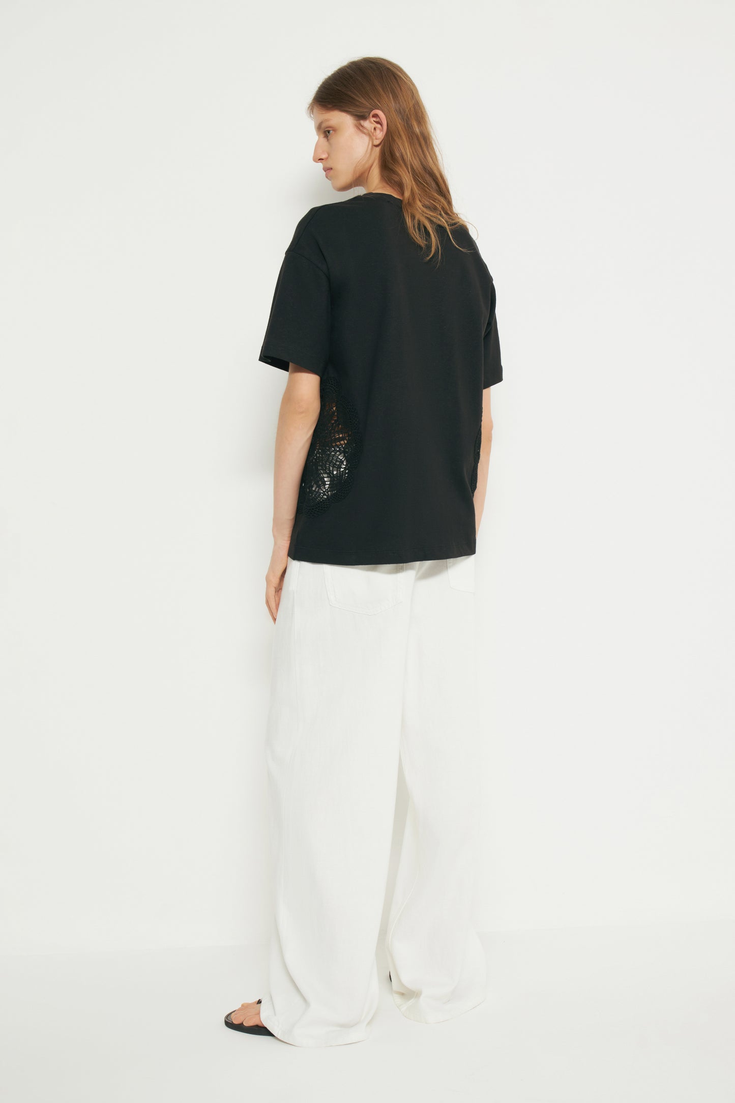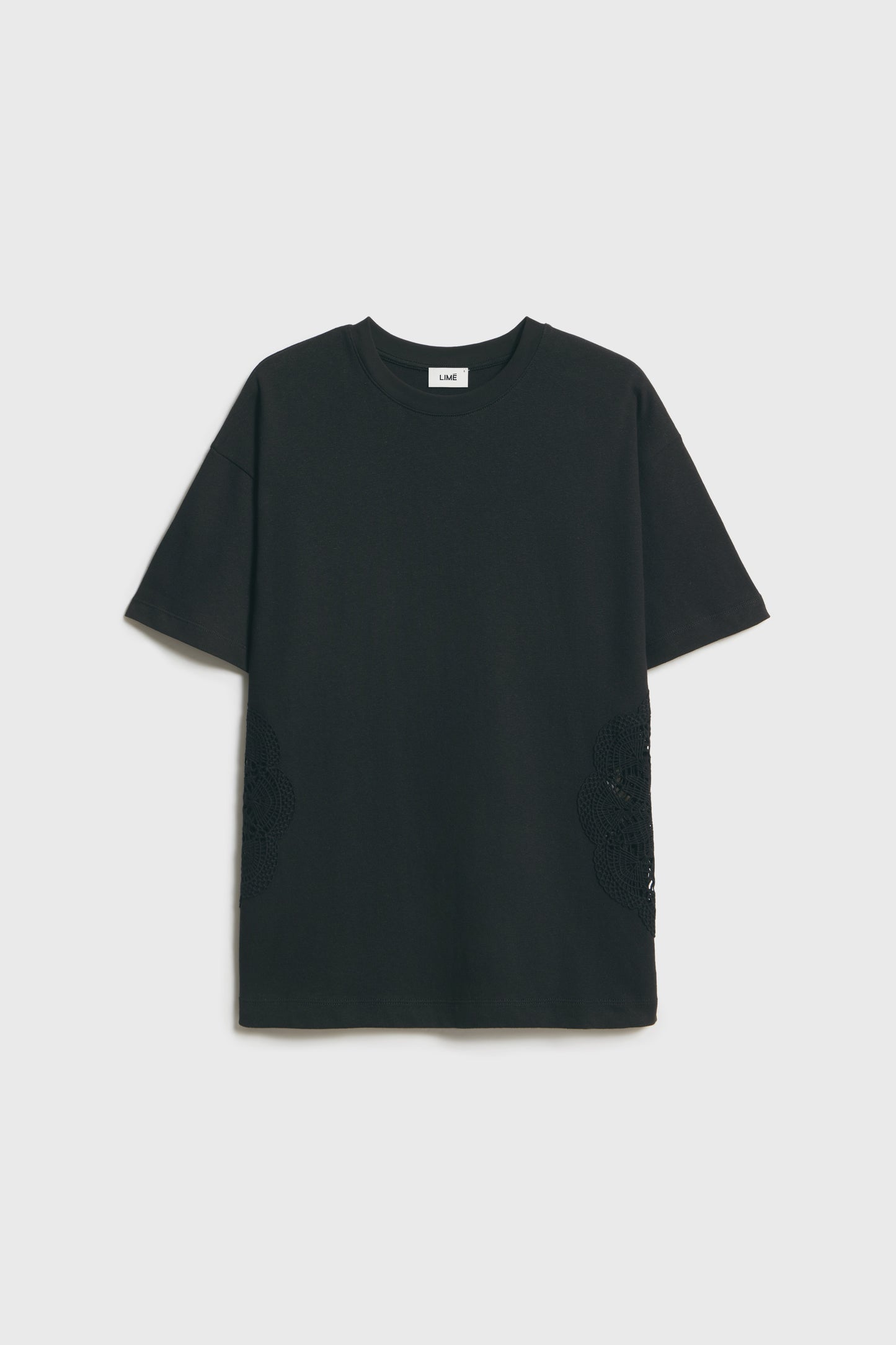 Round neck T-shirt in a cotton weave with short sleeves. Crochet-look details.