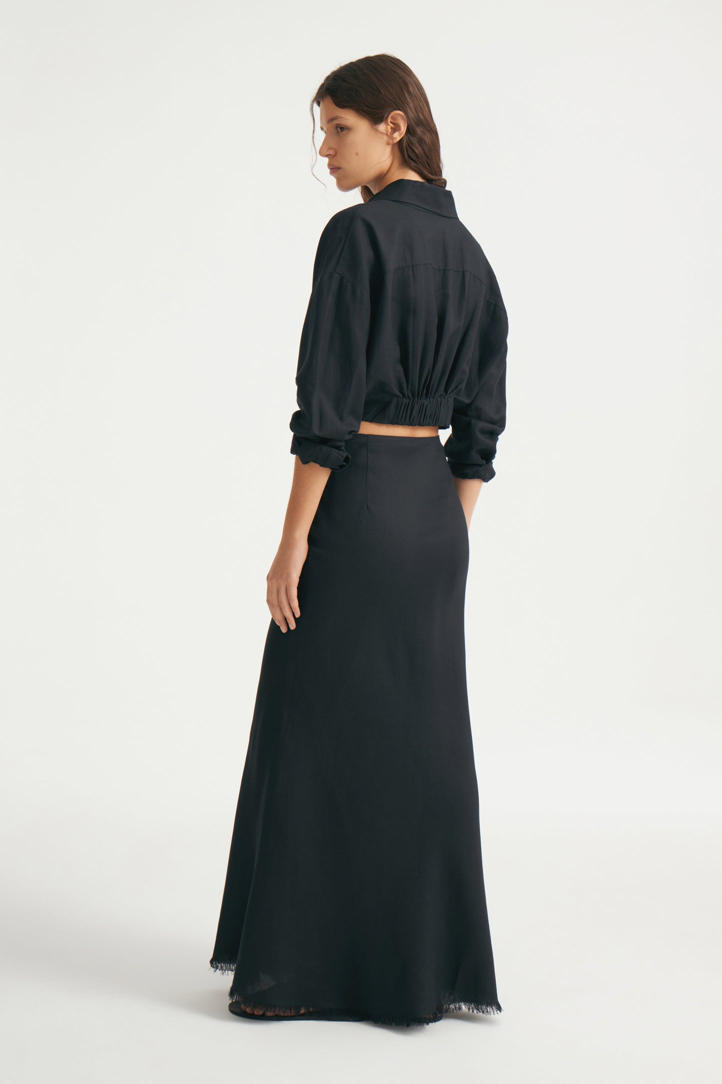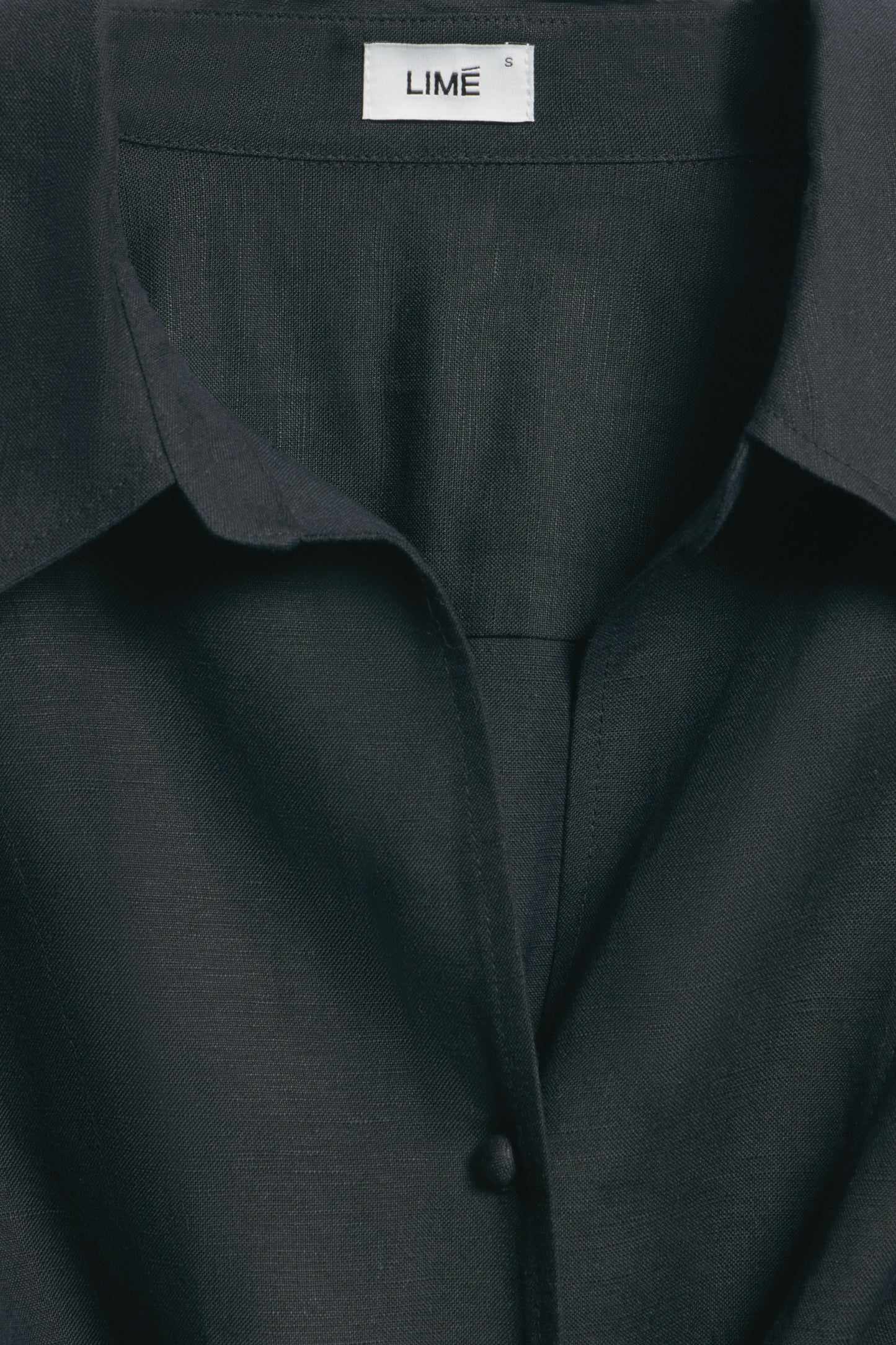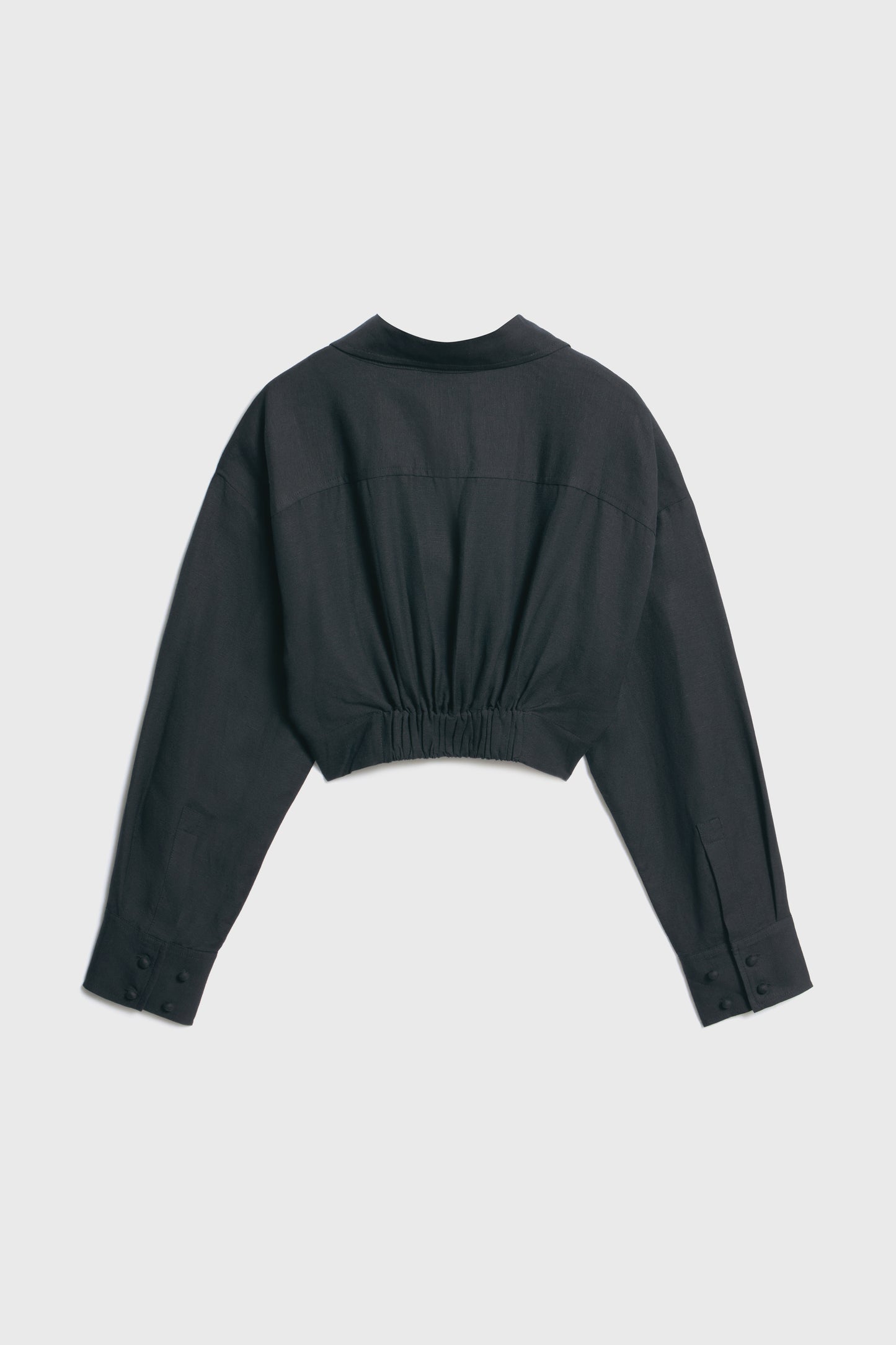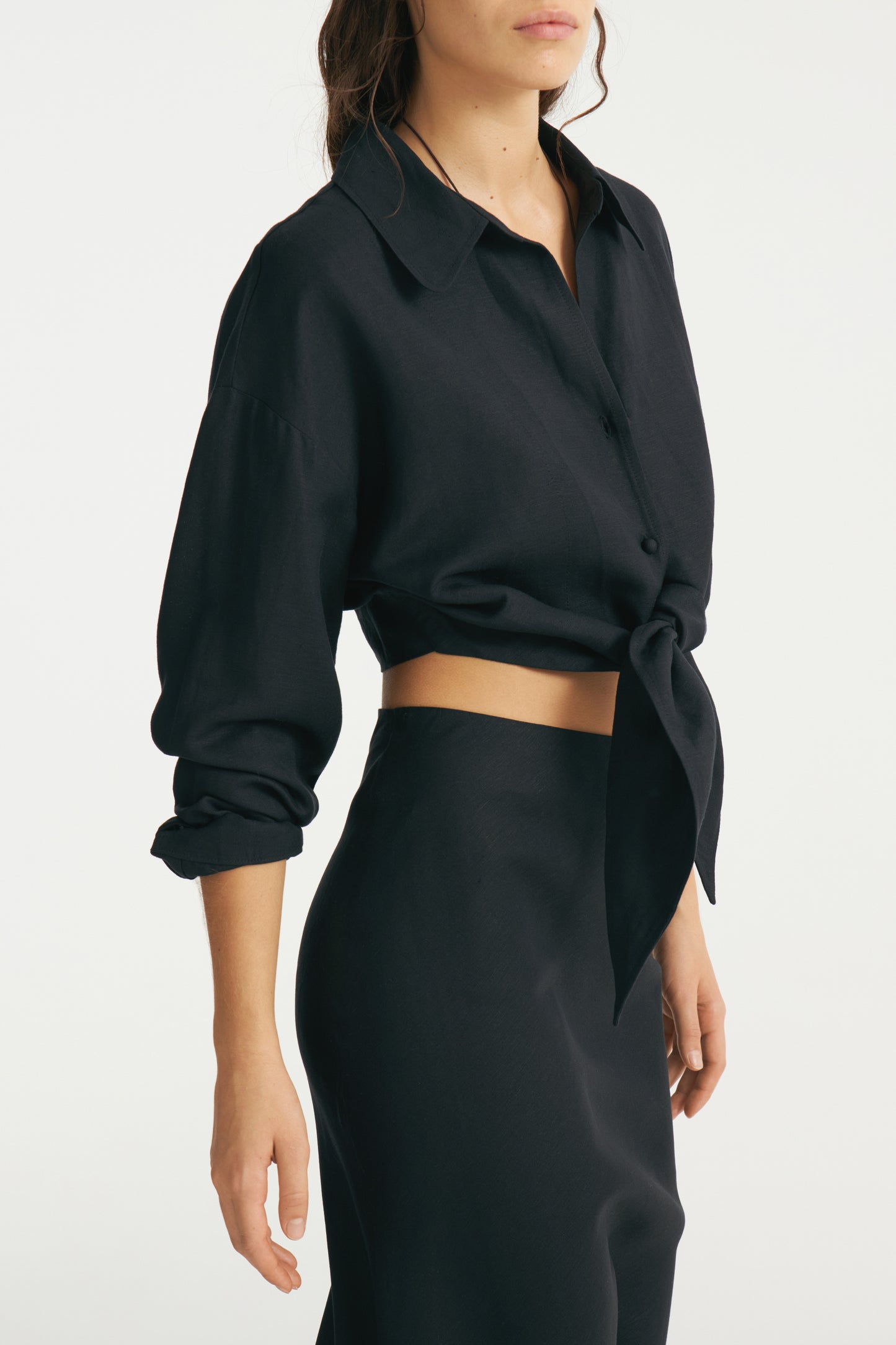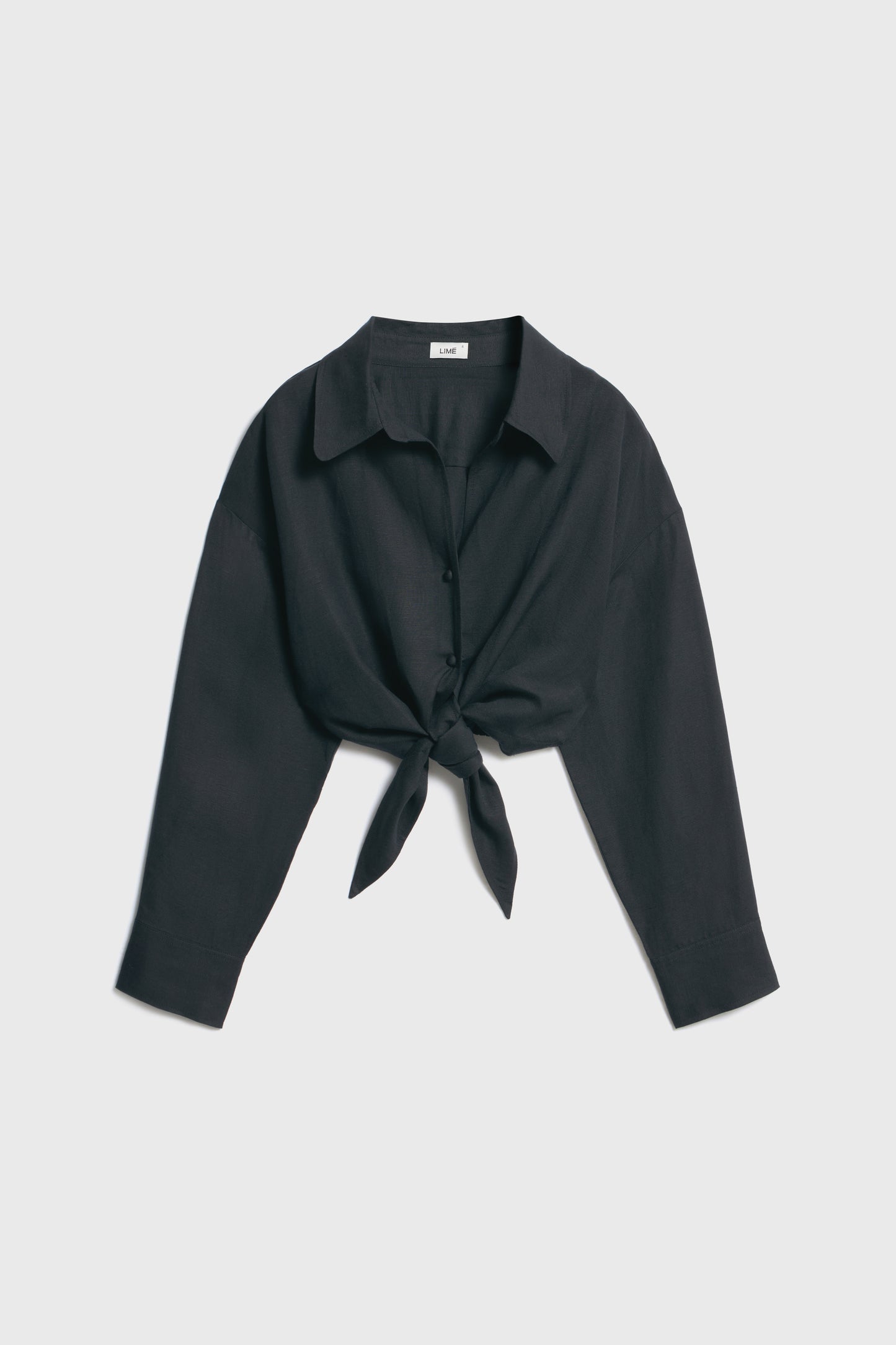 Collared shirt with tied detail and long sleeves made of natural linen-viscose blend. Cropped. Button-up front.