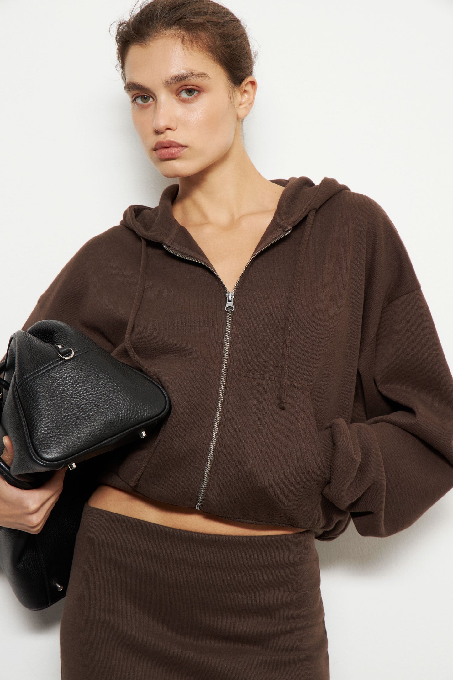 COTTON-BLEND ZIP-THROUGH HOODIE