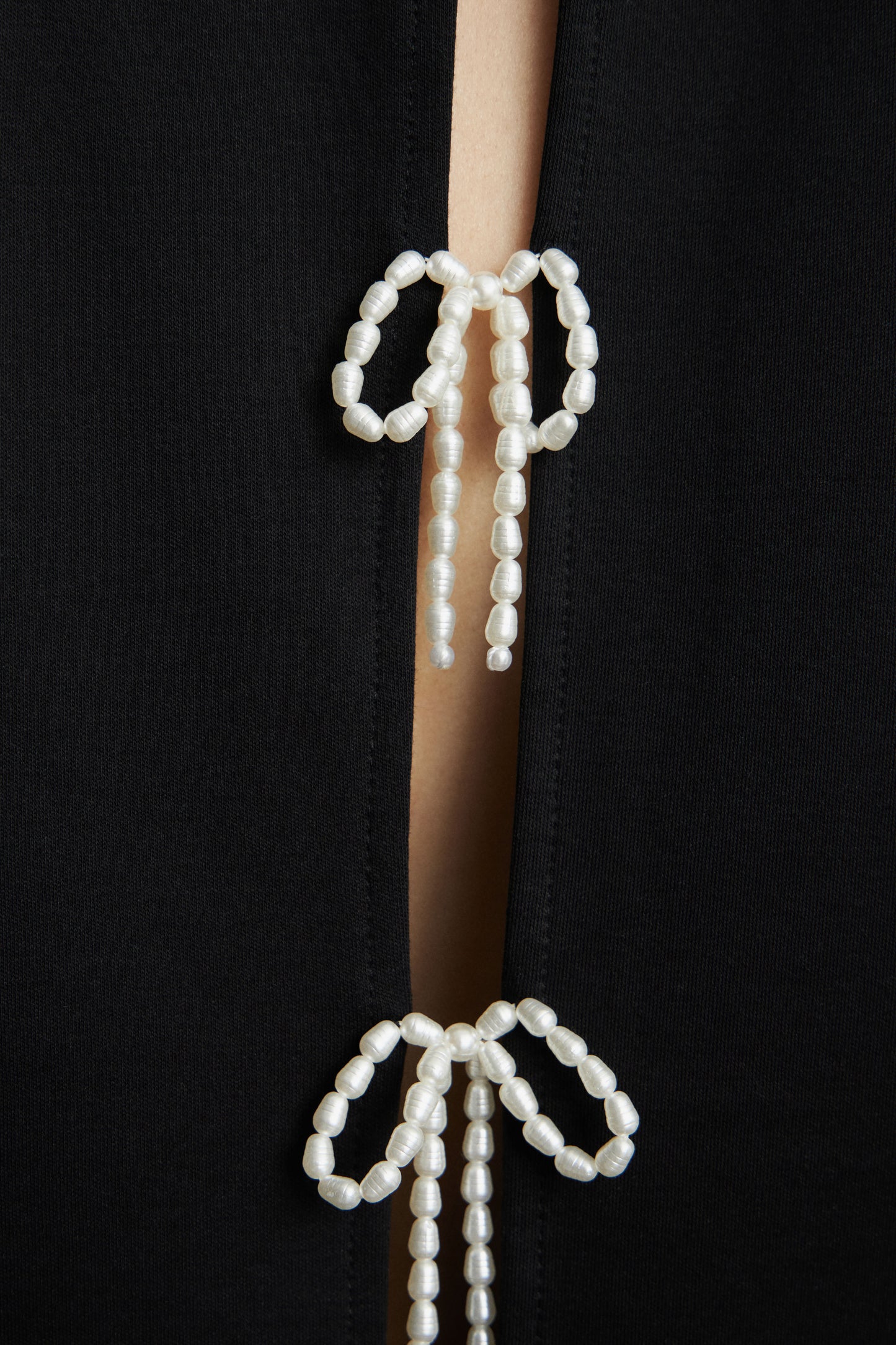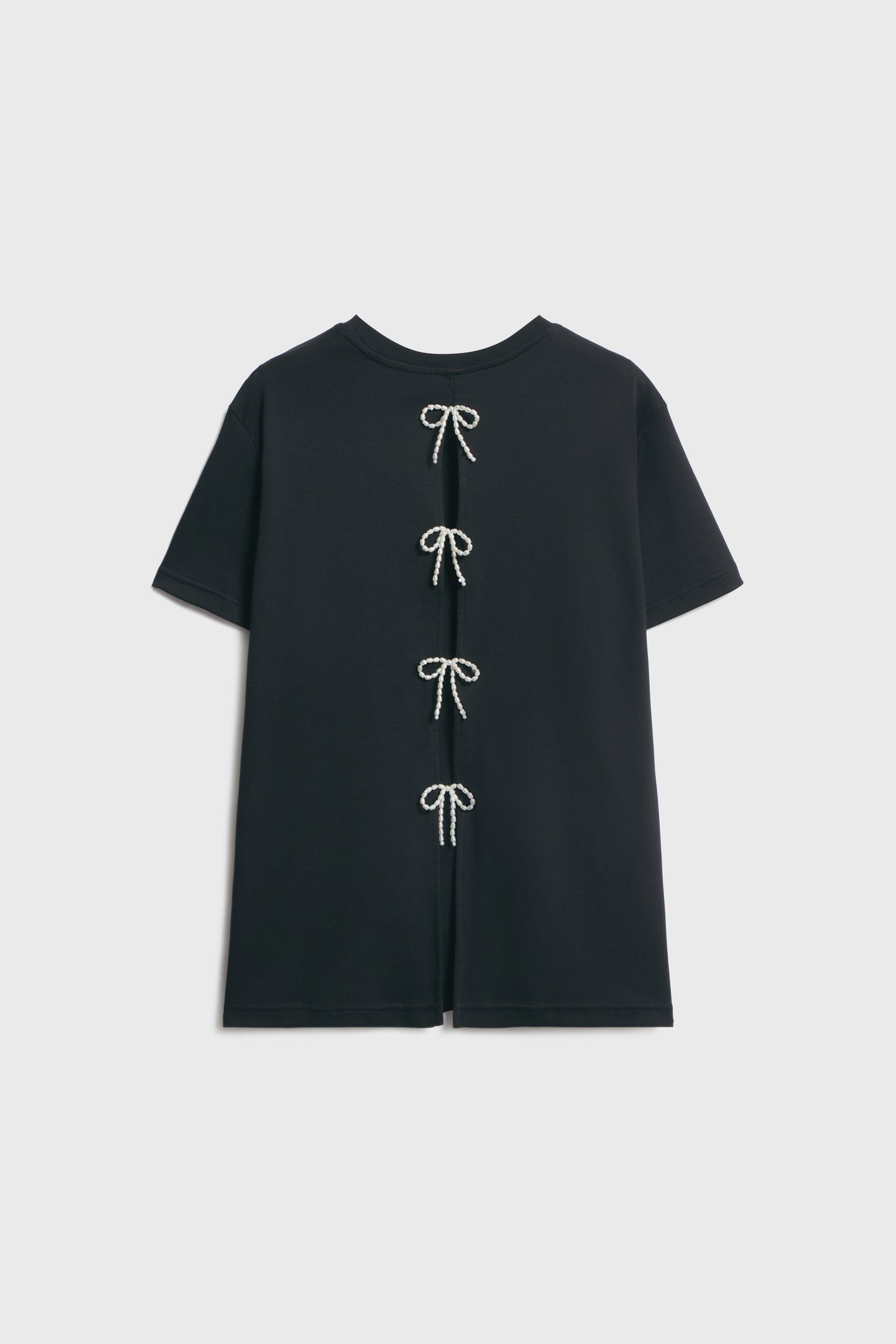 Round neck T-shirt in a cotton with short sleeves. Embellished with pearly beads that form bows at the back.