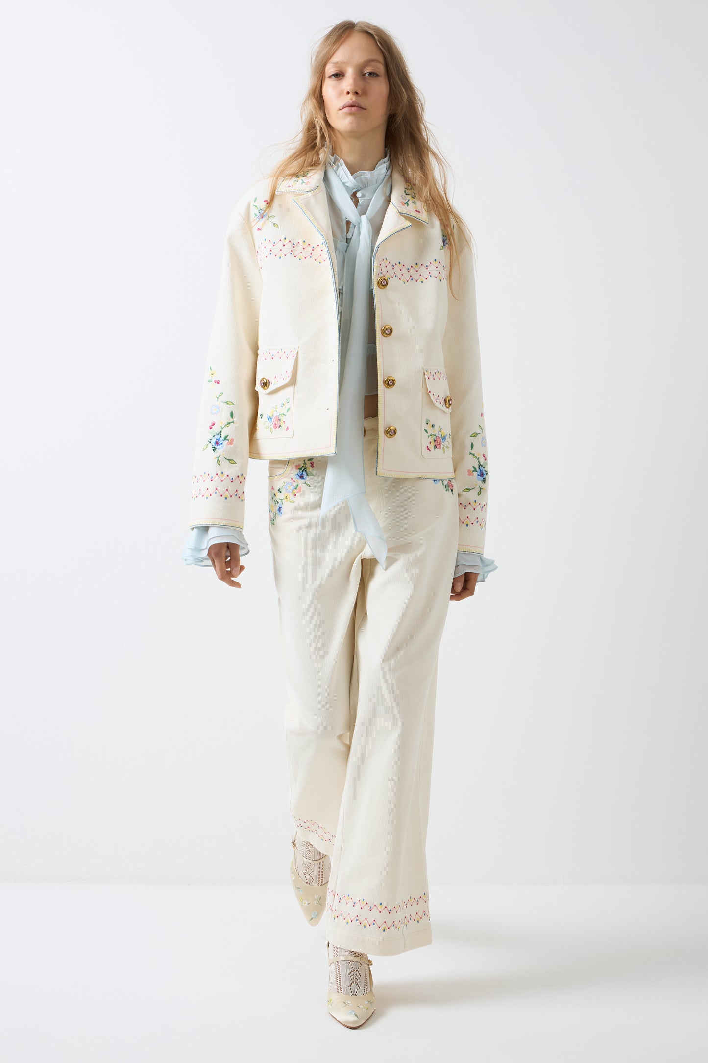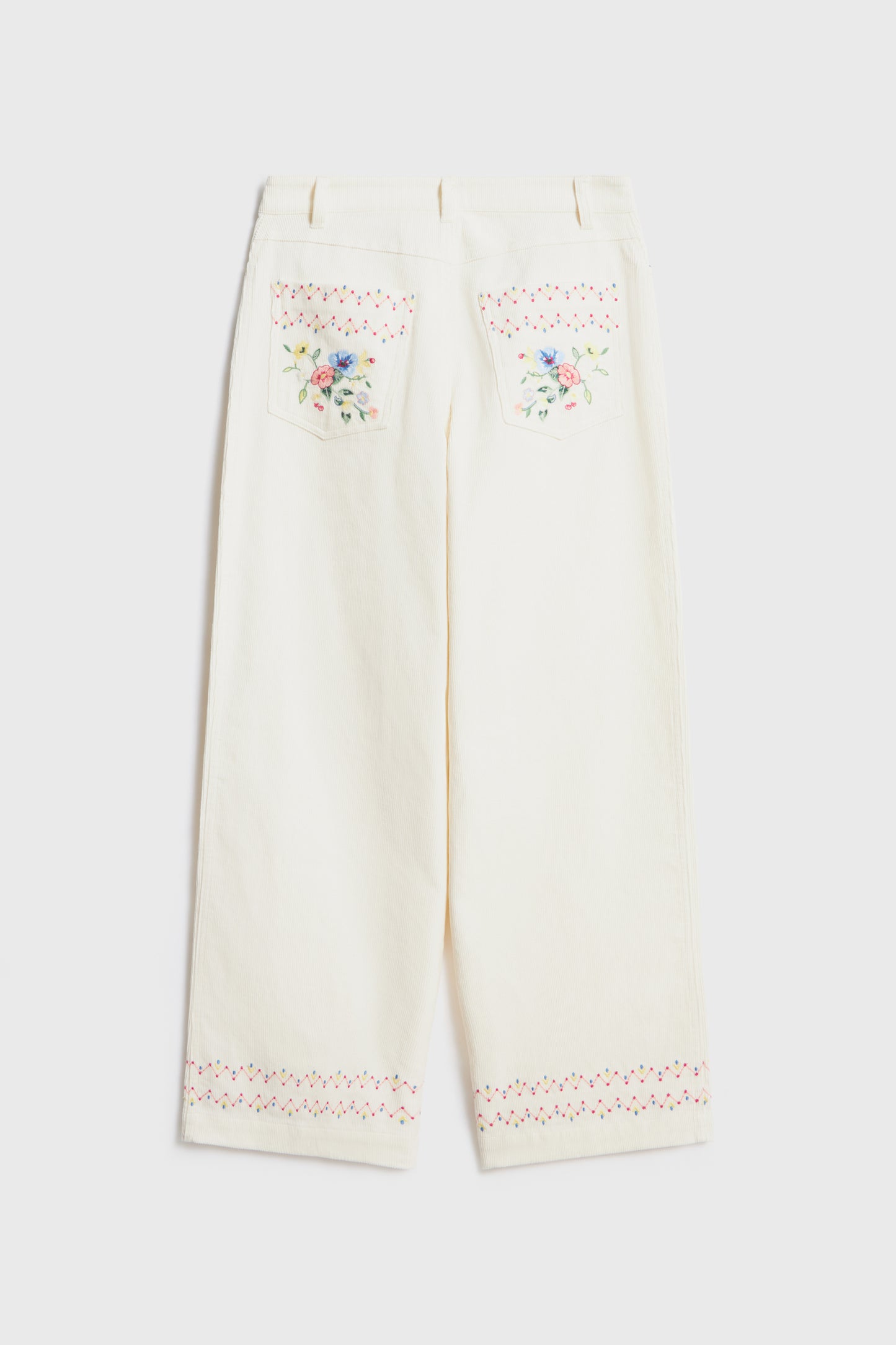 EMBROIDERY-DETAIL CORDUROY TROUSERS