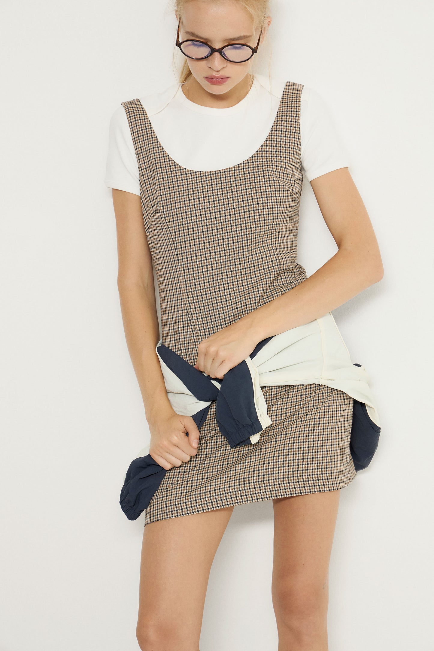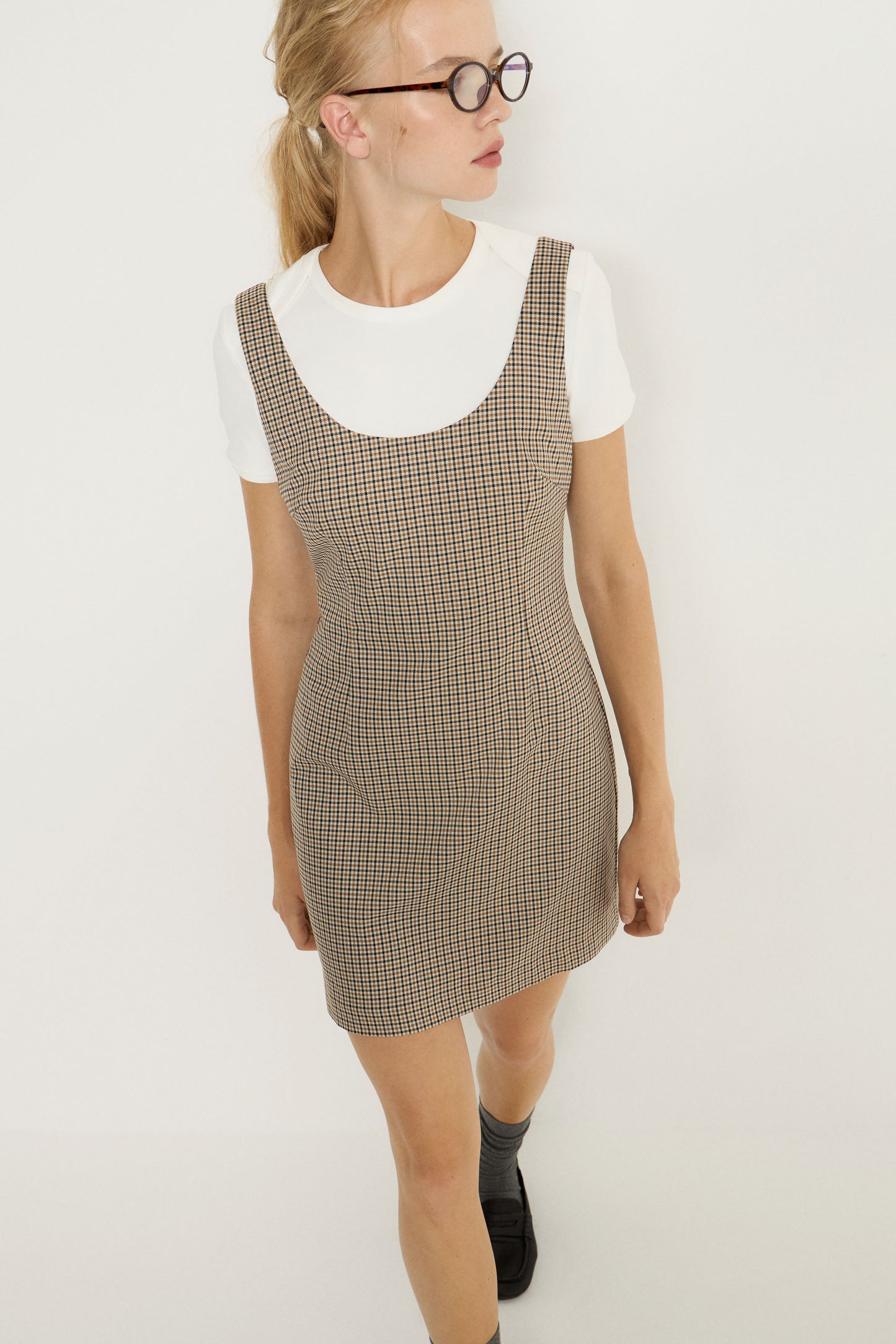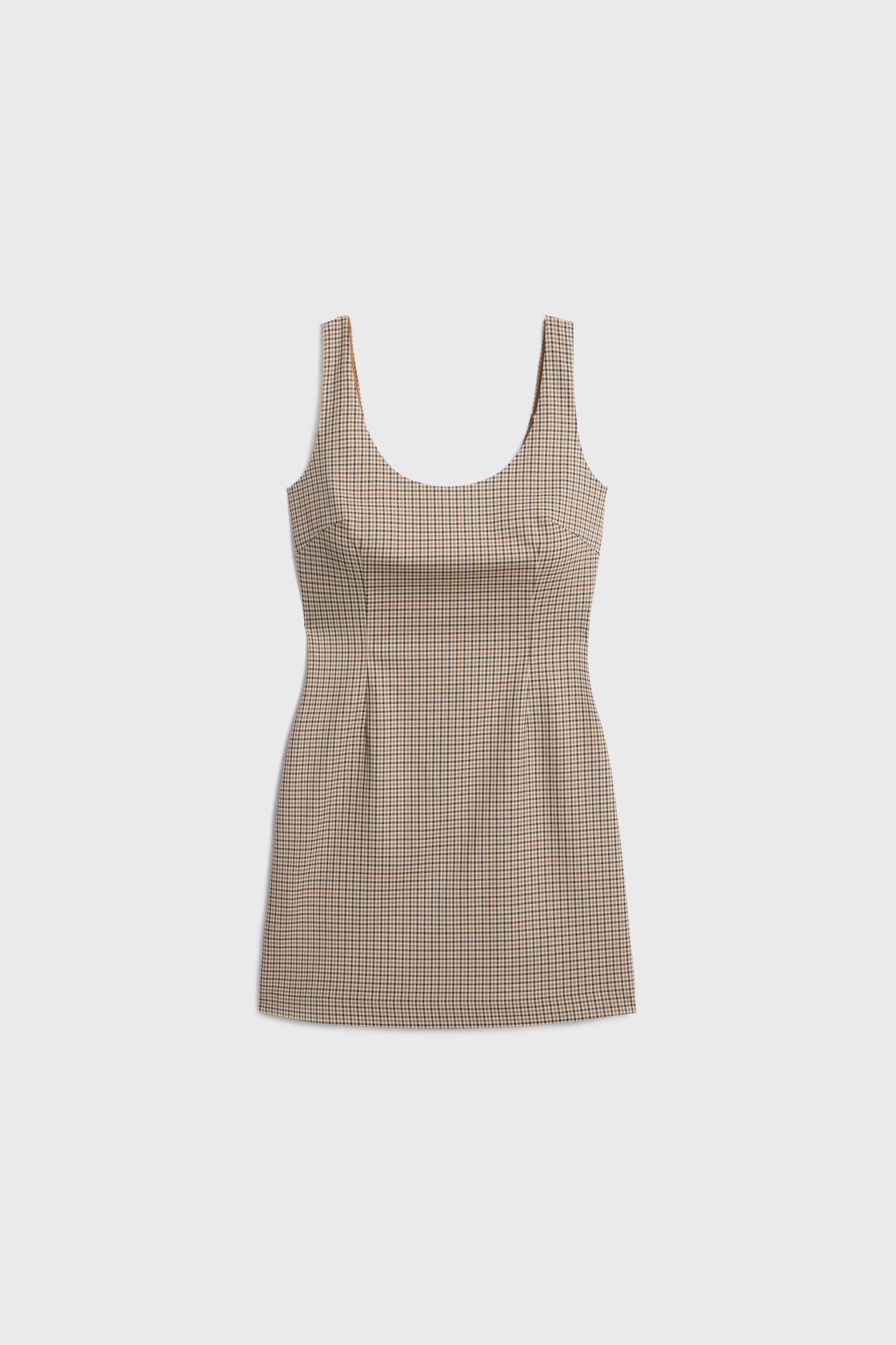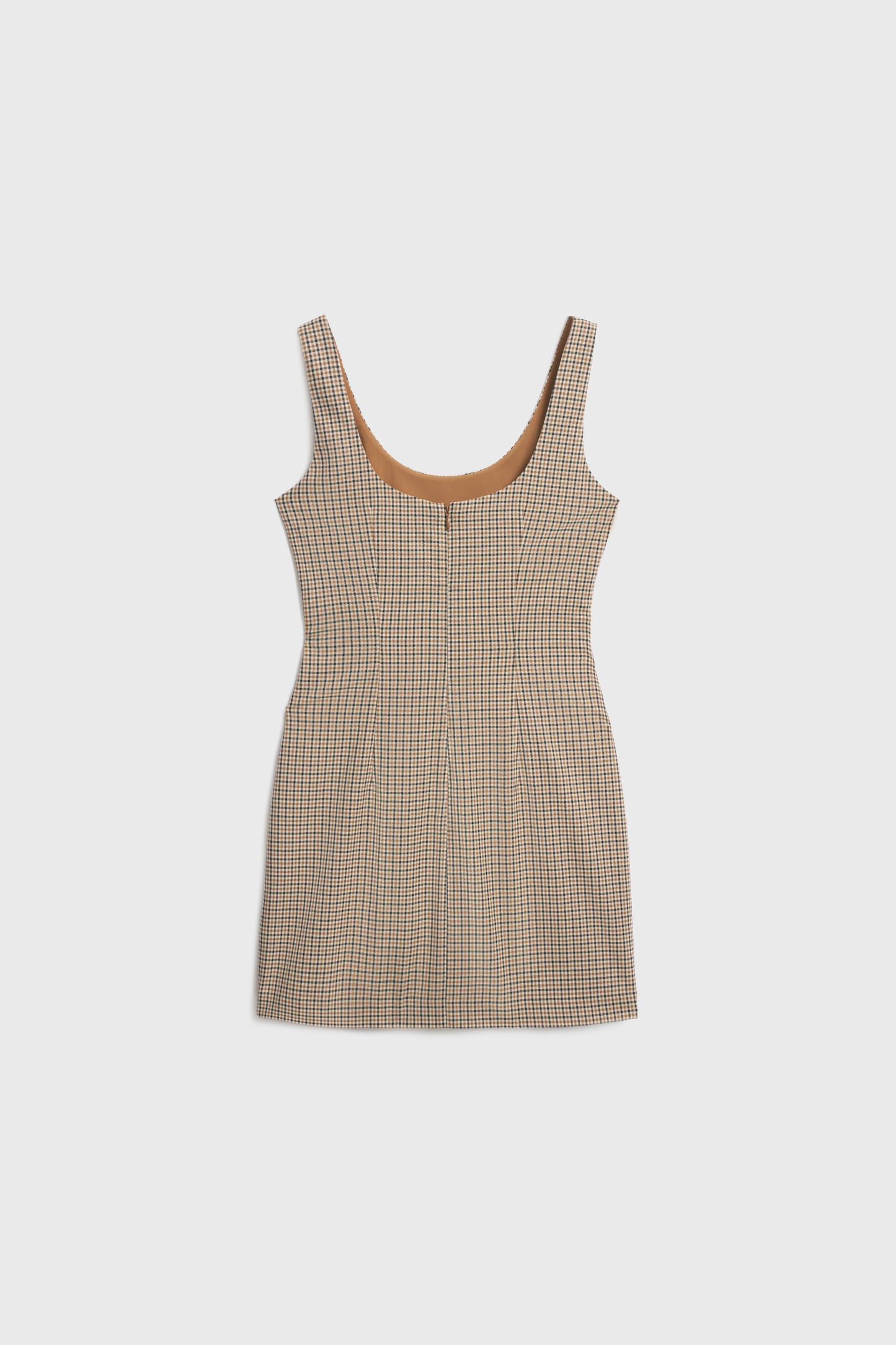 Short, fitted dress in woven viscose blend with shaping seams at front and back. Wide shoulder straps, scoop neck with slightly lower-cut back, and a concealed zipper at the back. Lined.