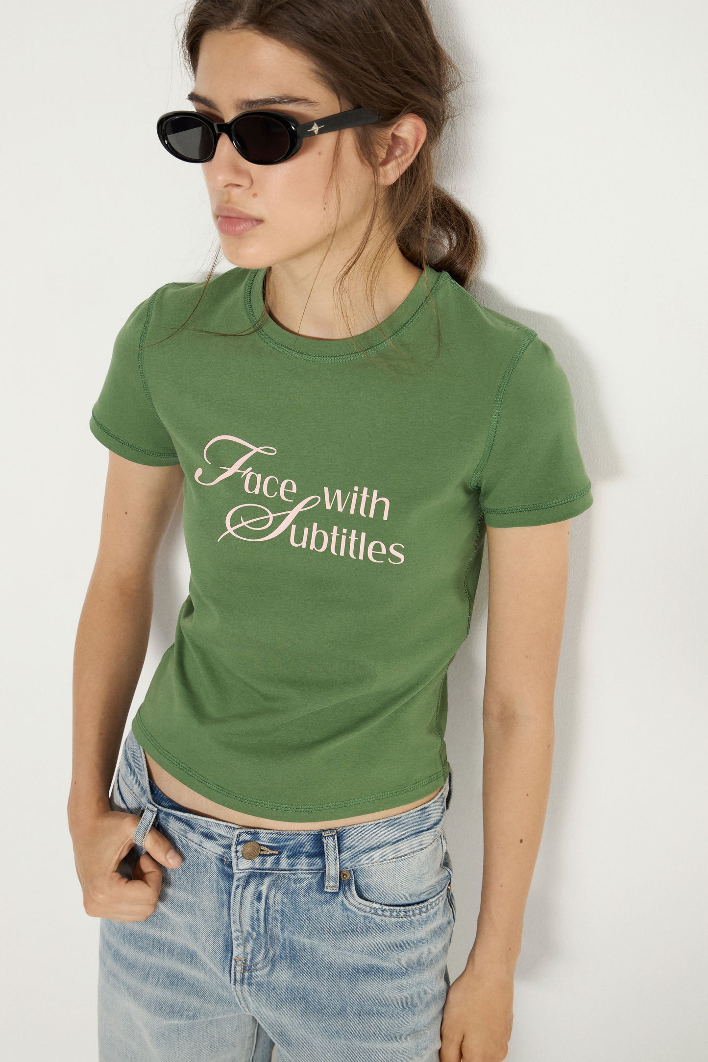 Fitted T-shirt in cotton jersey with a print motif, short sleeves and round neckline. Slim fit.