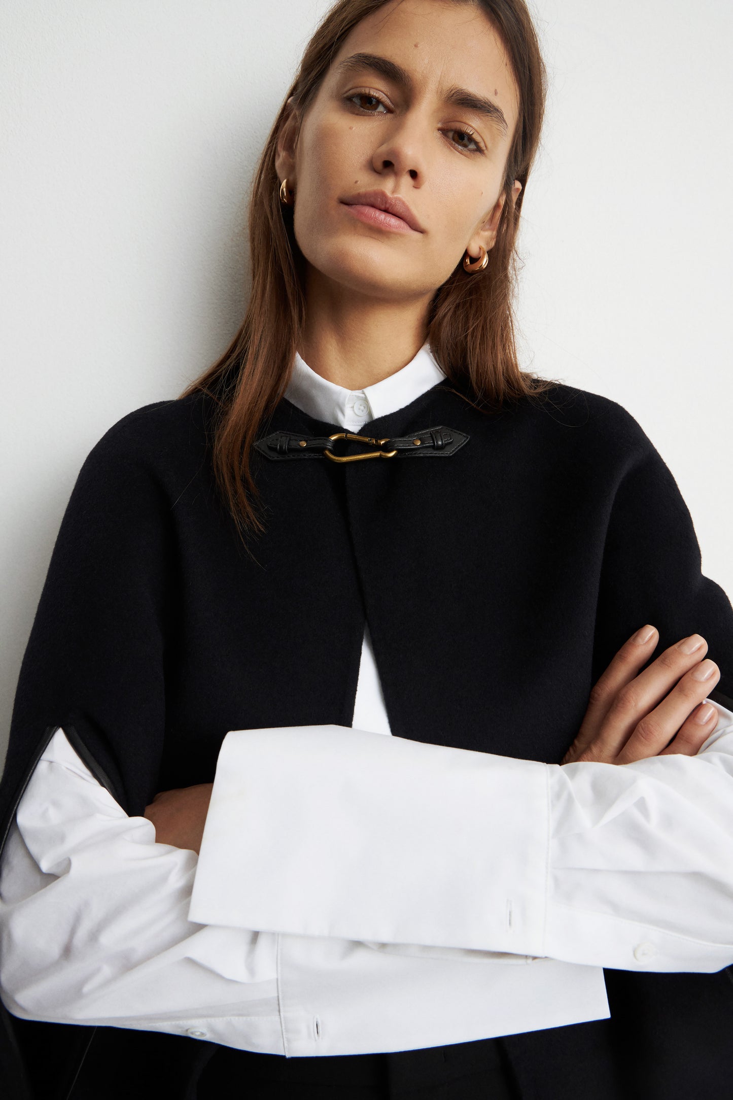 HANDMADE LEATHER-TRIMMED WOOL-BLEND CAPE