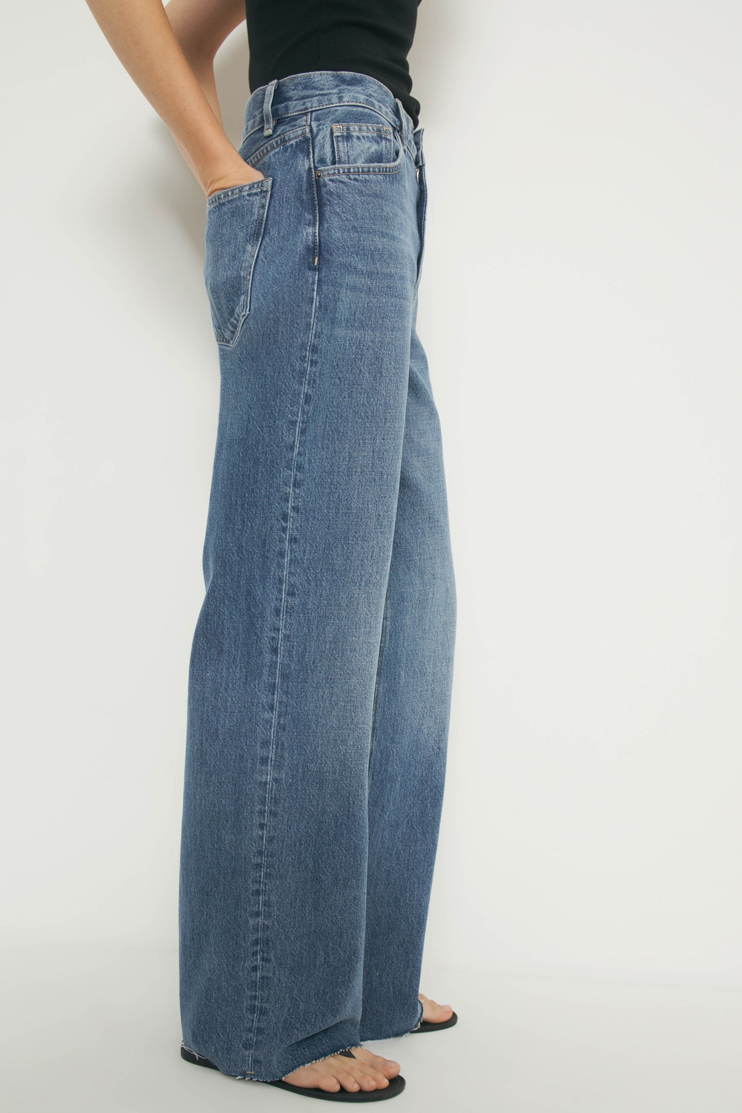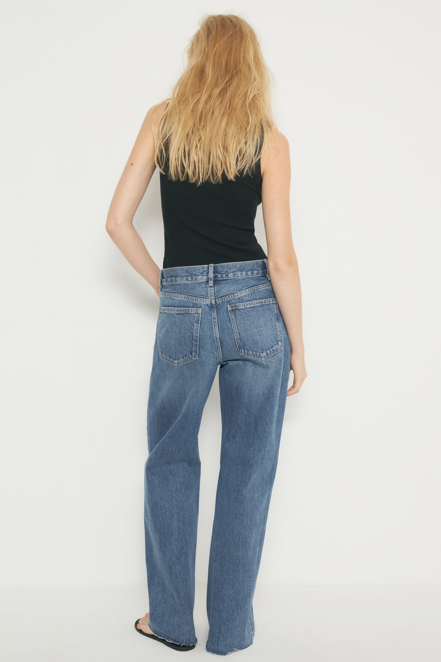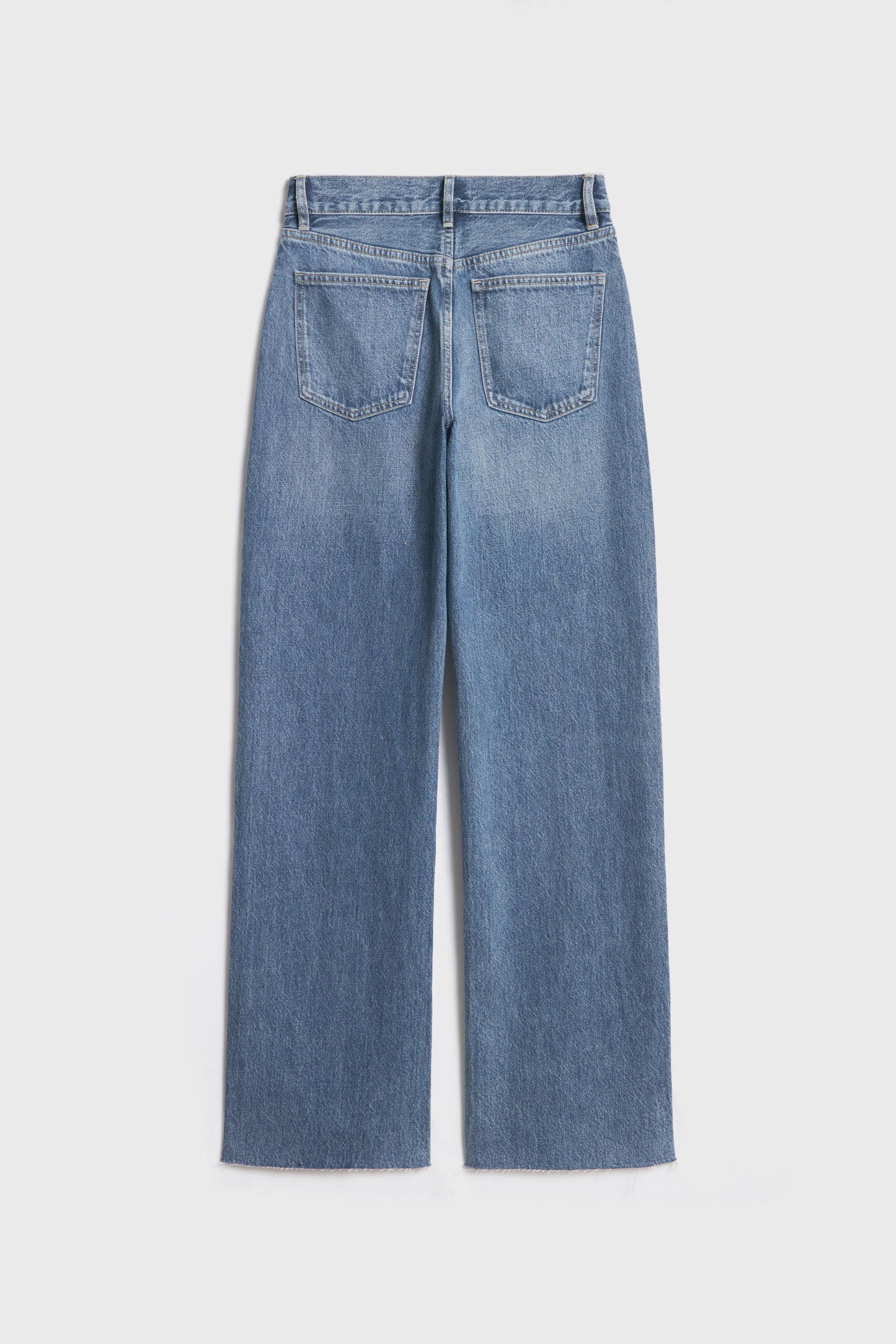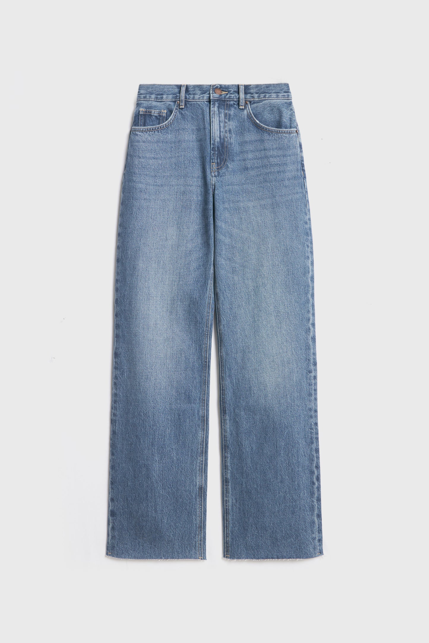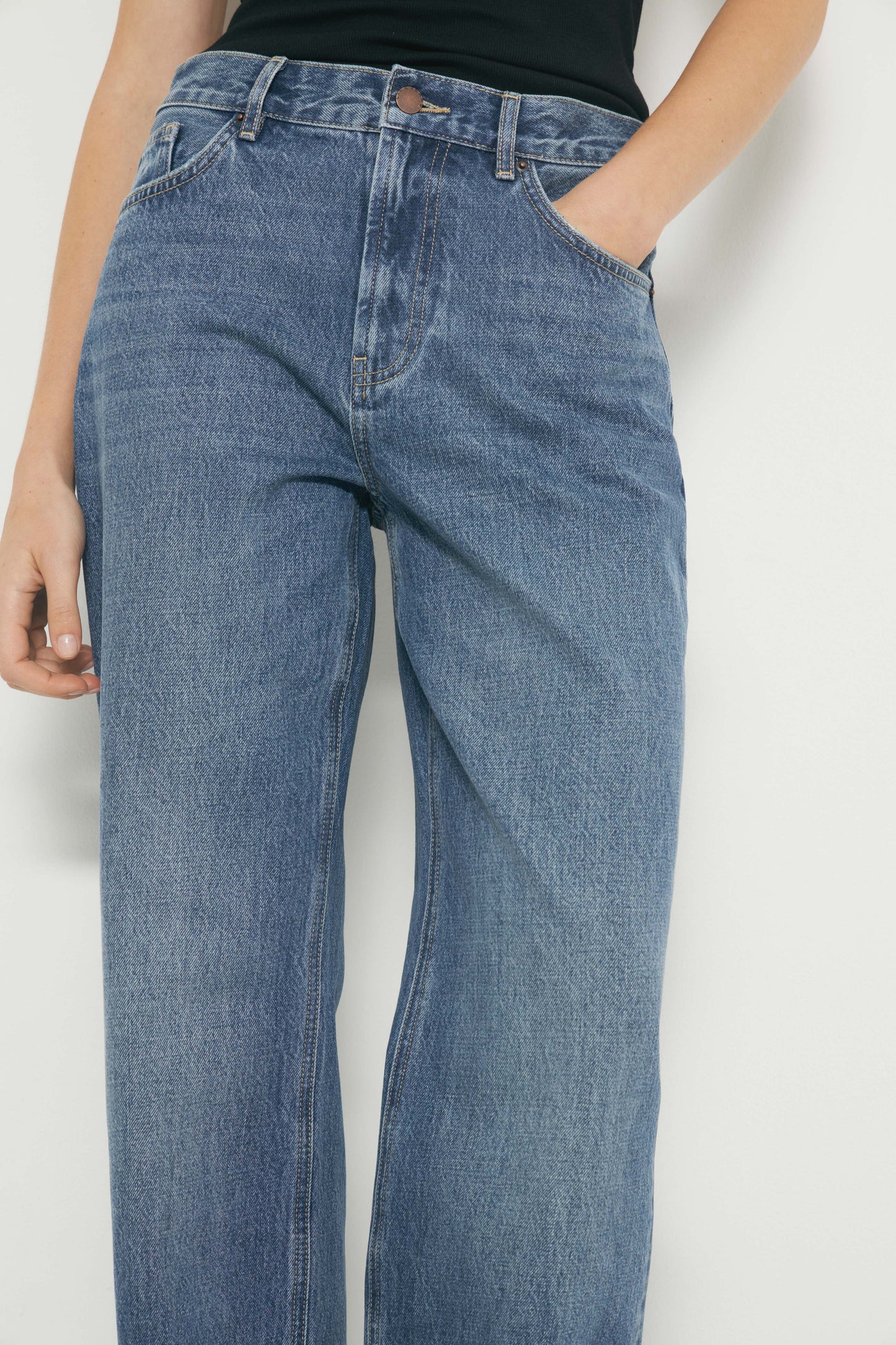 High-waist jeans in cotton denim with a five-pocket design. Faded effect. Straight legs and seamless hems. Front zip fly and metal button fastening.