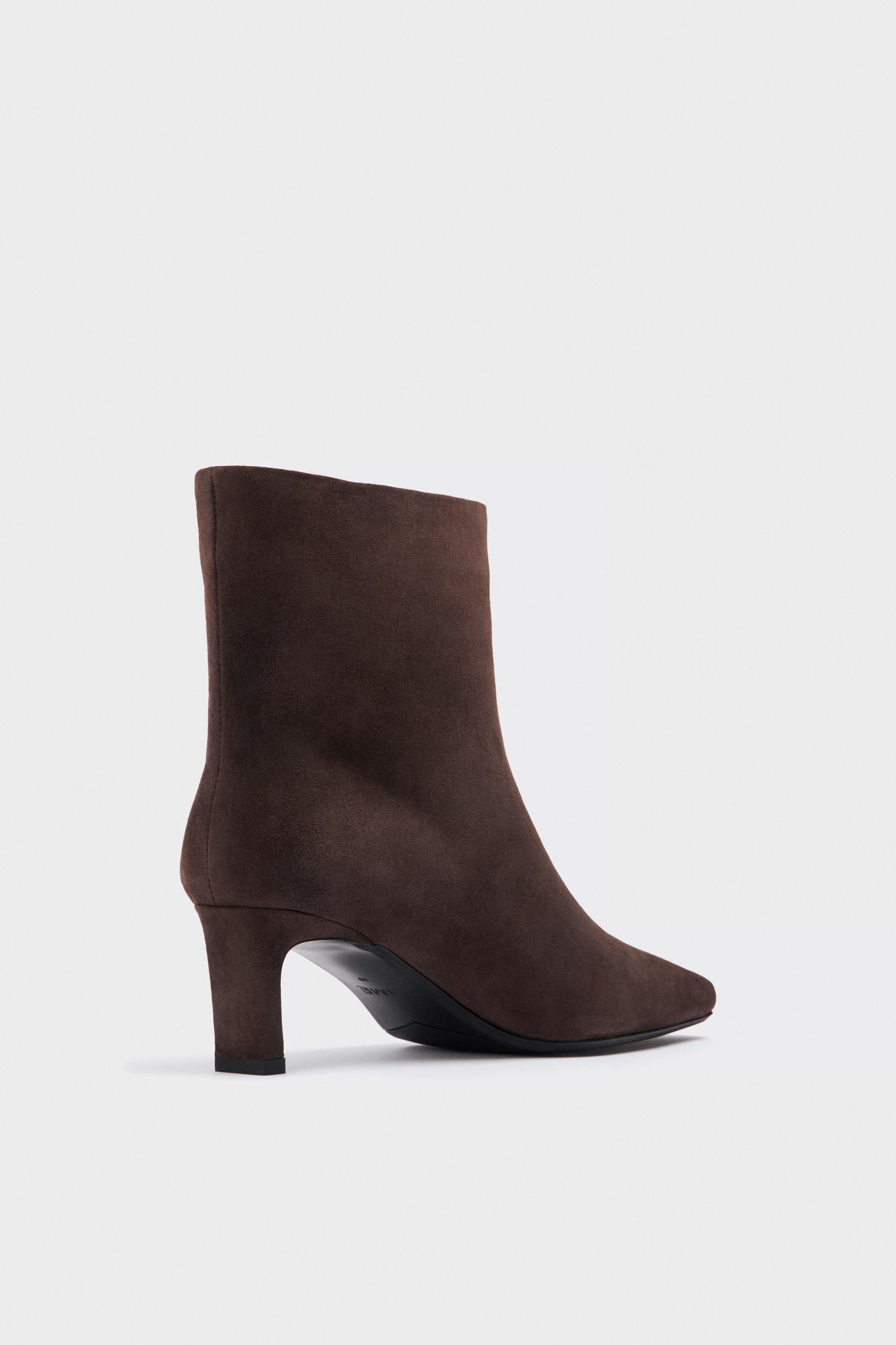 Suede boots with a pointed toes and thin heels. Wide shaft. Your purchases are delivered with a fabric bag.
