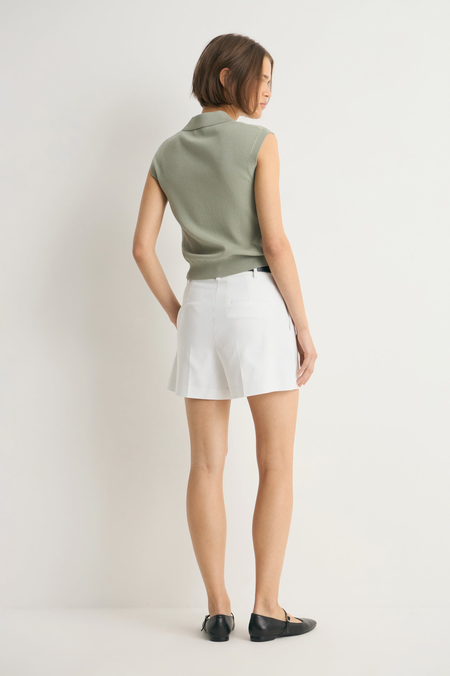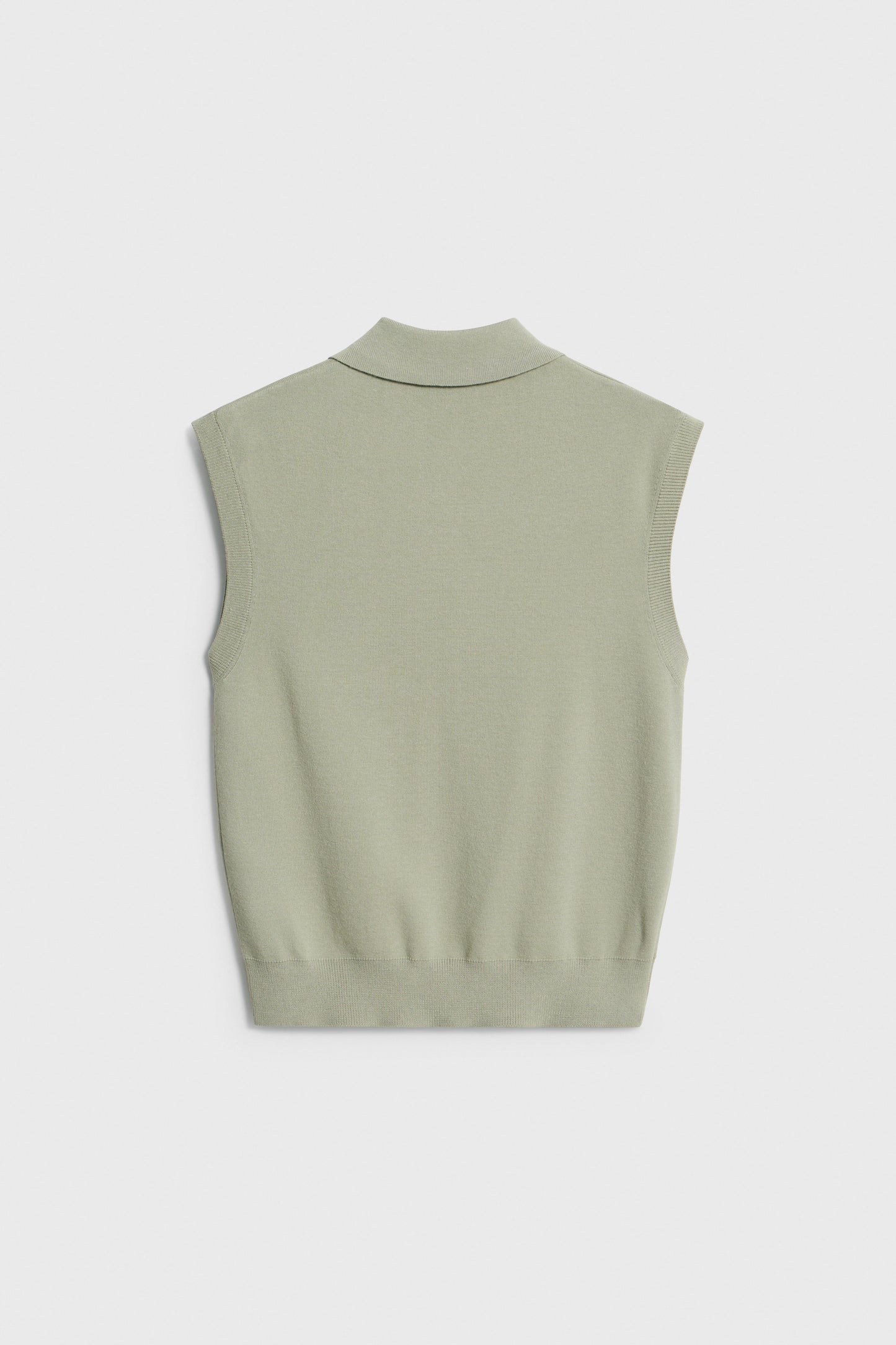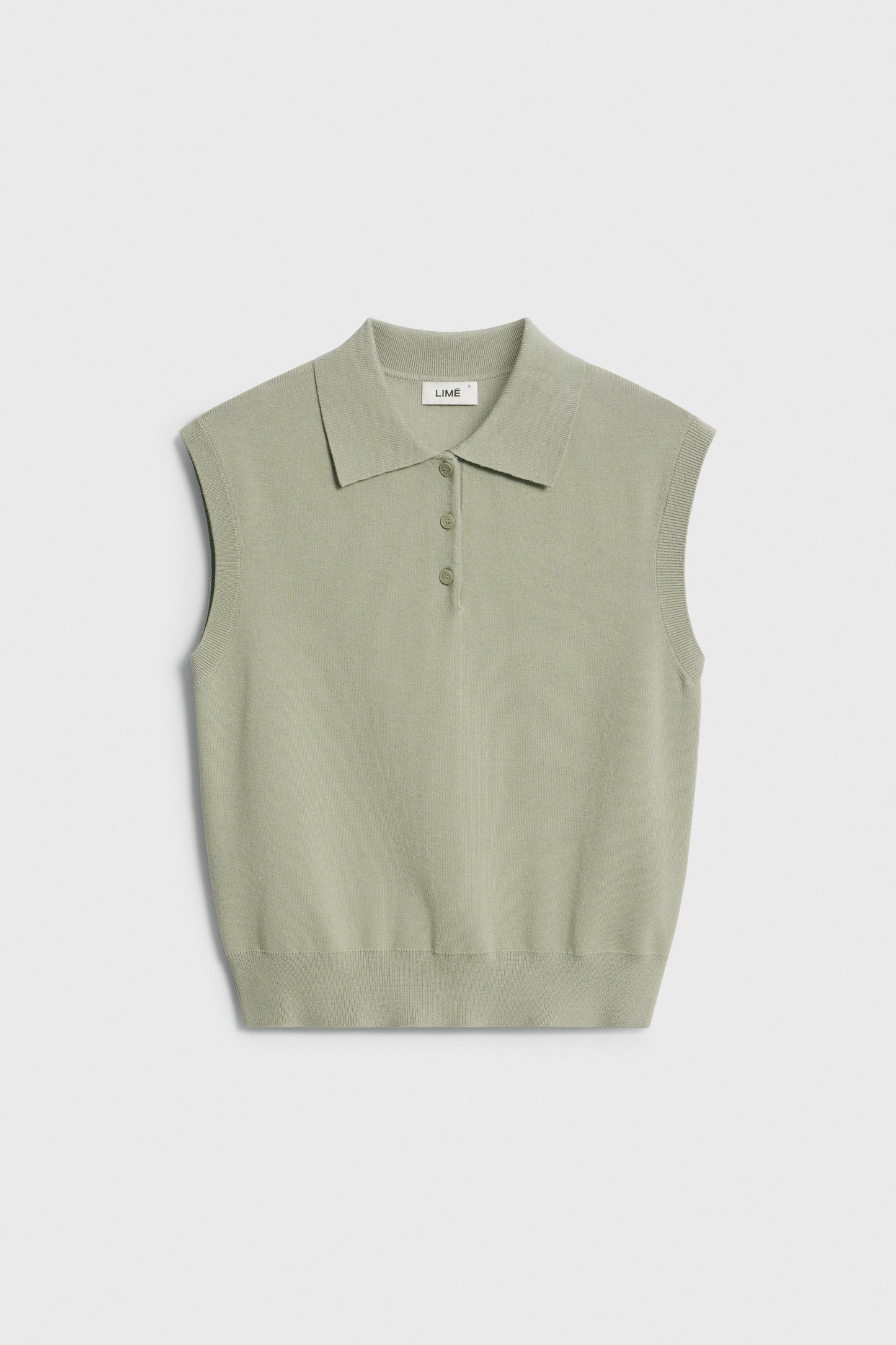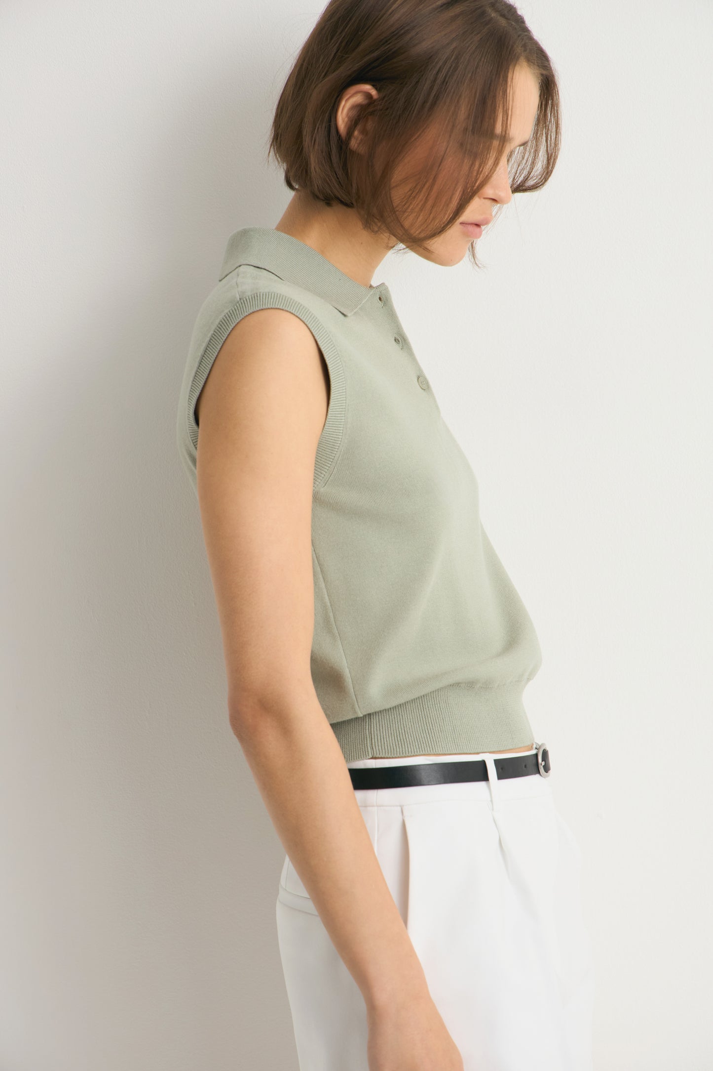 Top in knit viscose with a collar, button placket and a straight hem. Slim fit.