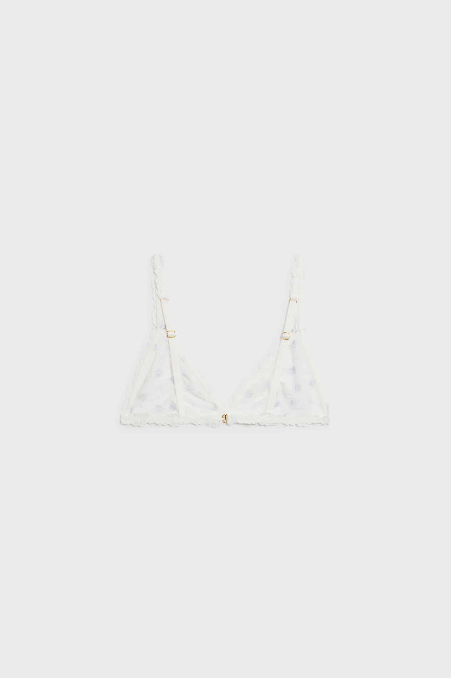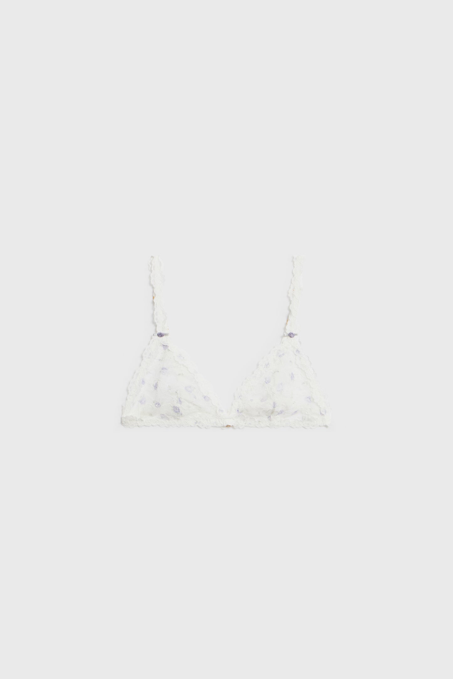 Soft, non-wired bra tops with an elasticated hem. Adjustable shoulder straps with small roses. Lined mesh cups that give the bust a natural shape and provide light support, and a hook-and-eye fastening at the back.