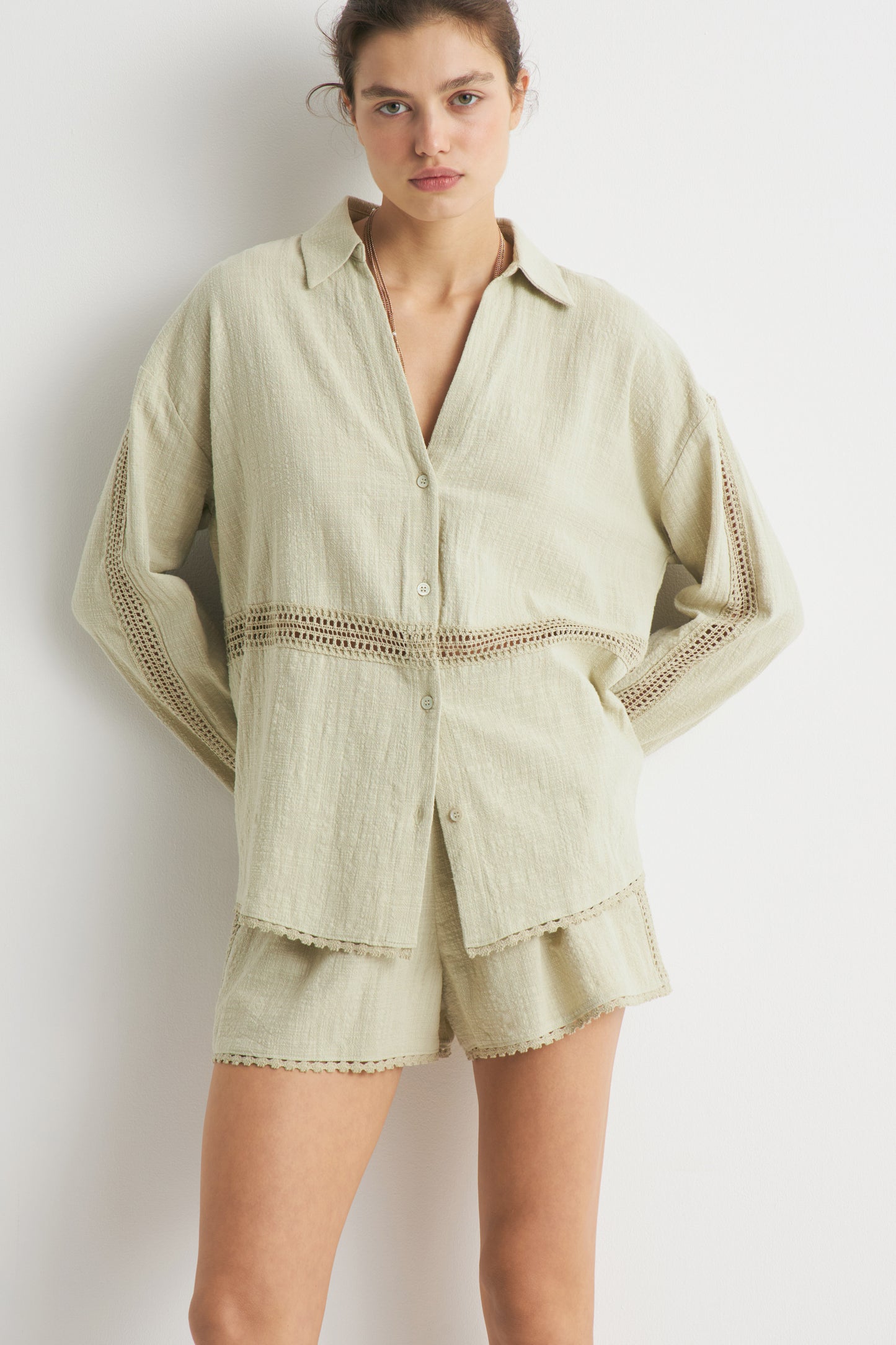 LACE-TRIMMED COTTON SHIRT