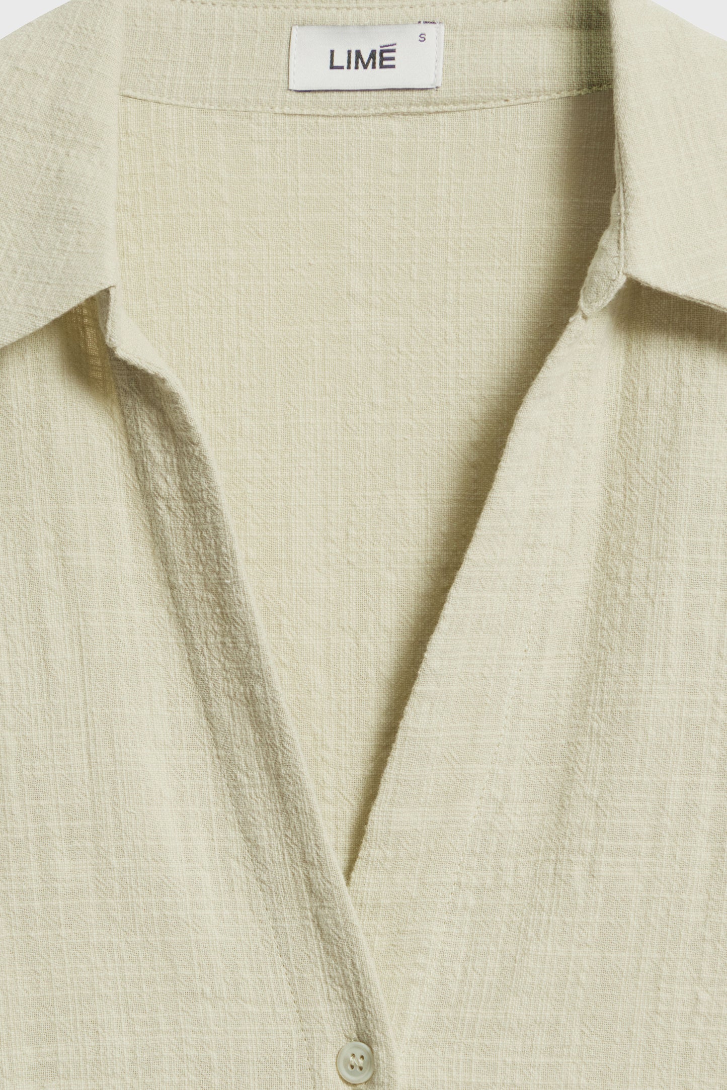 Shirt in woven cotton crêpe. V-shaped neckline, collar, long sleeves and lace trims. Front closure with buttons.