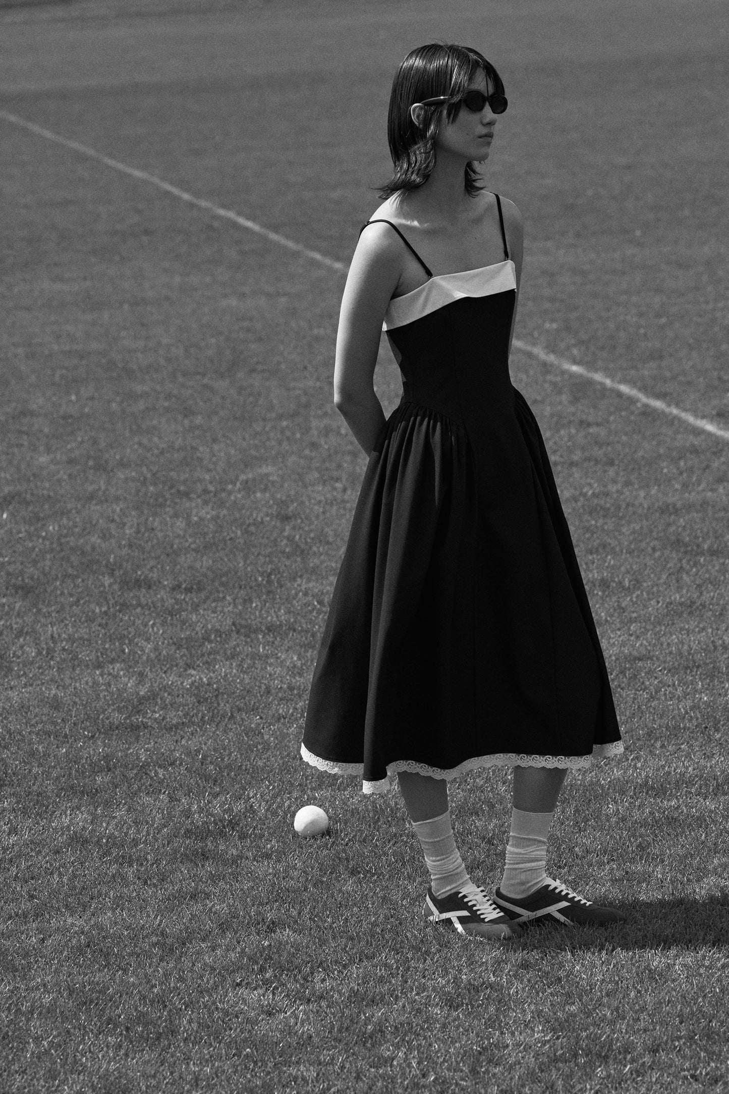 LACE-TRIMMED DRESS WITH FLARE SKIRT