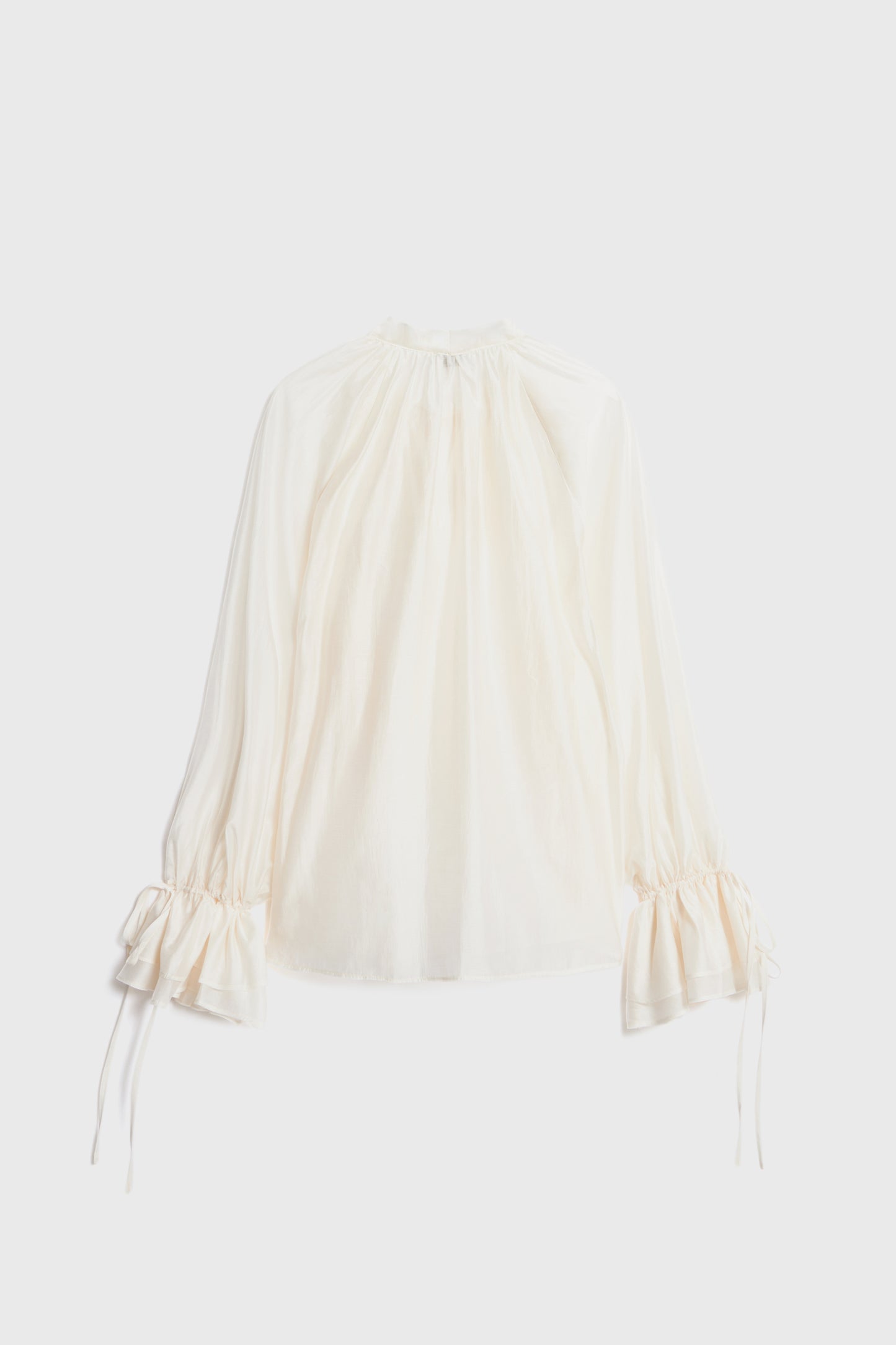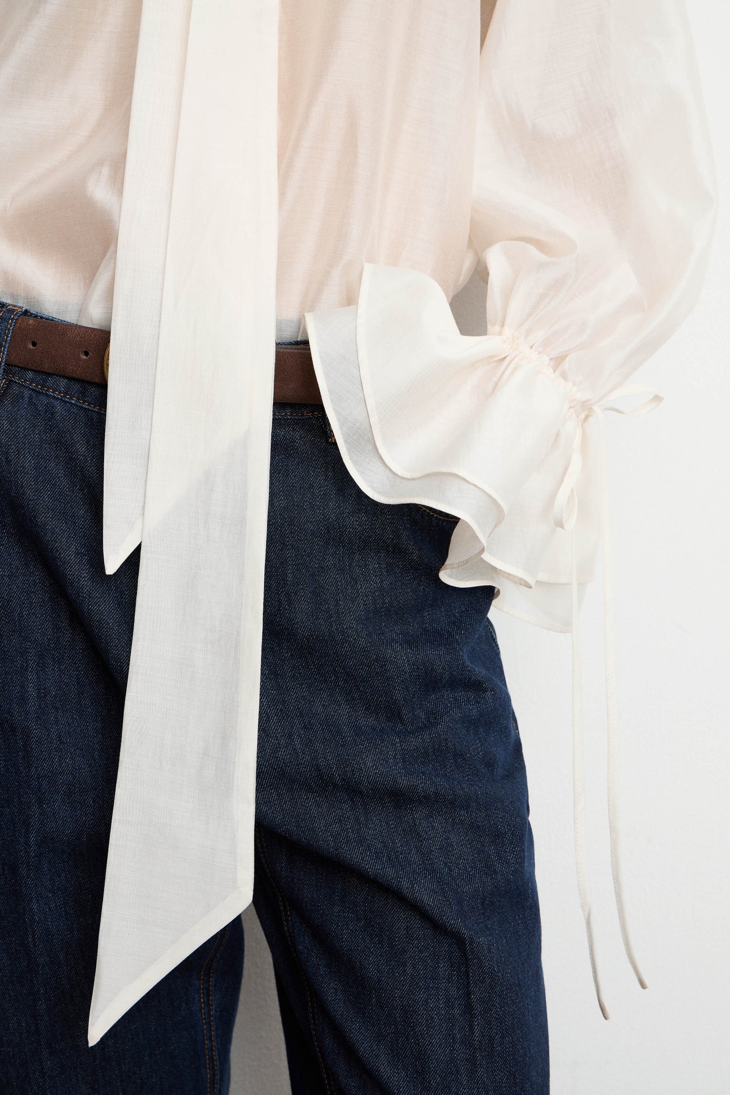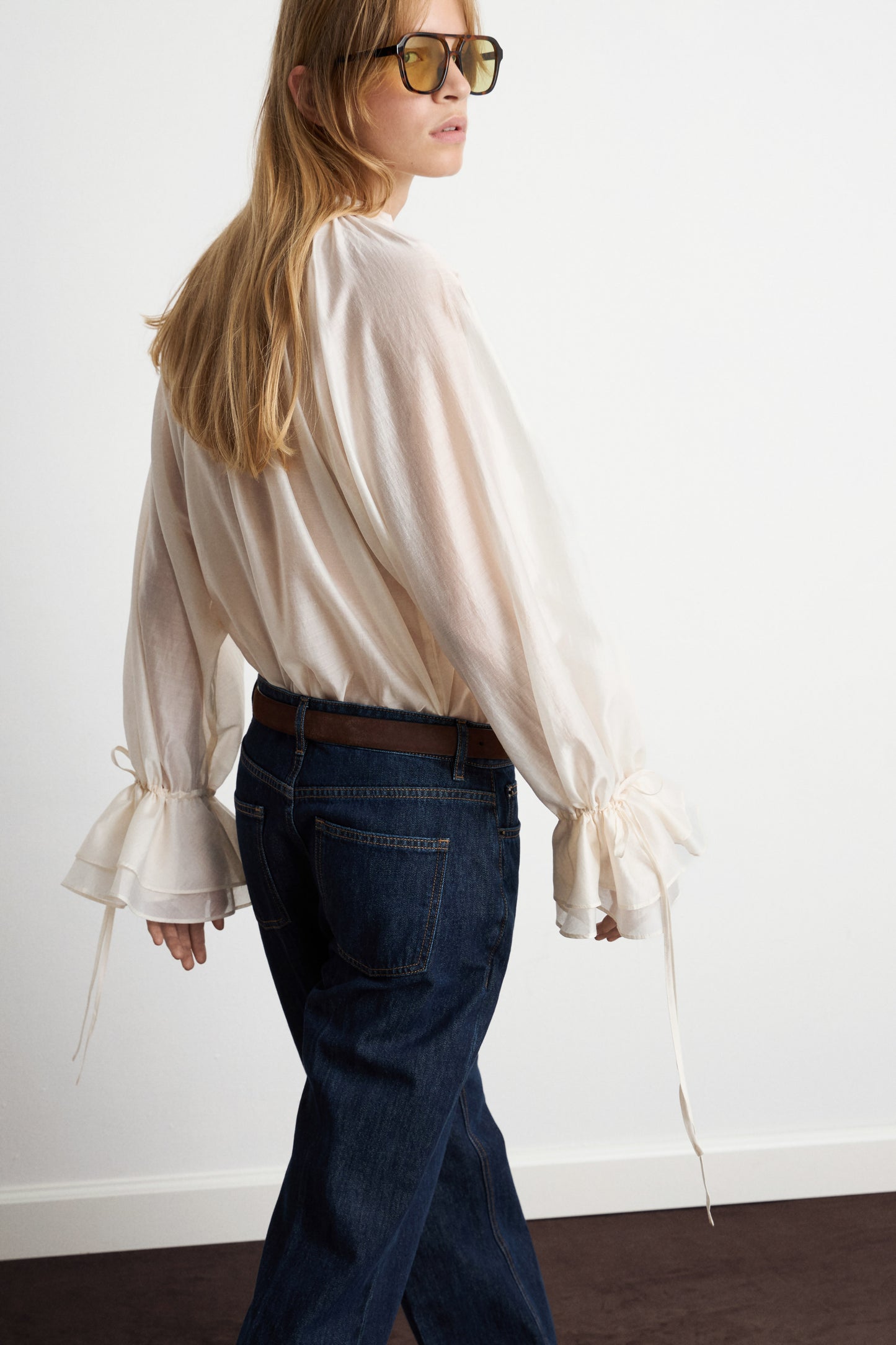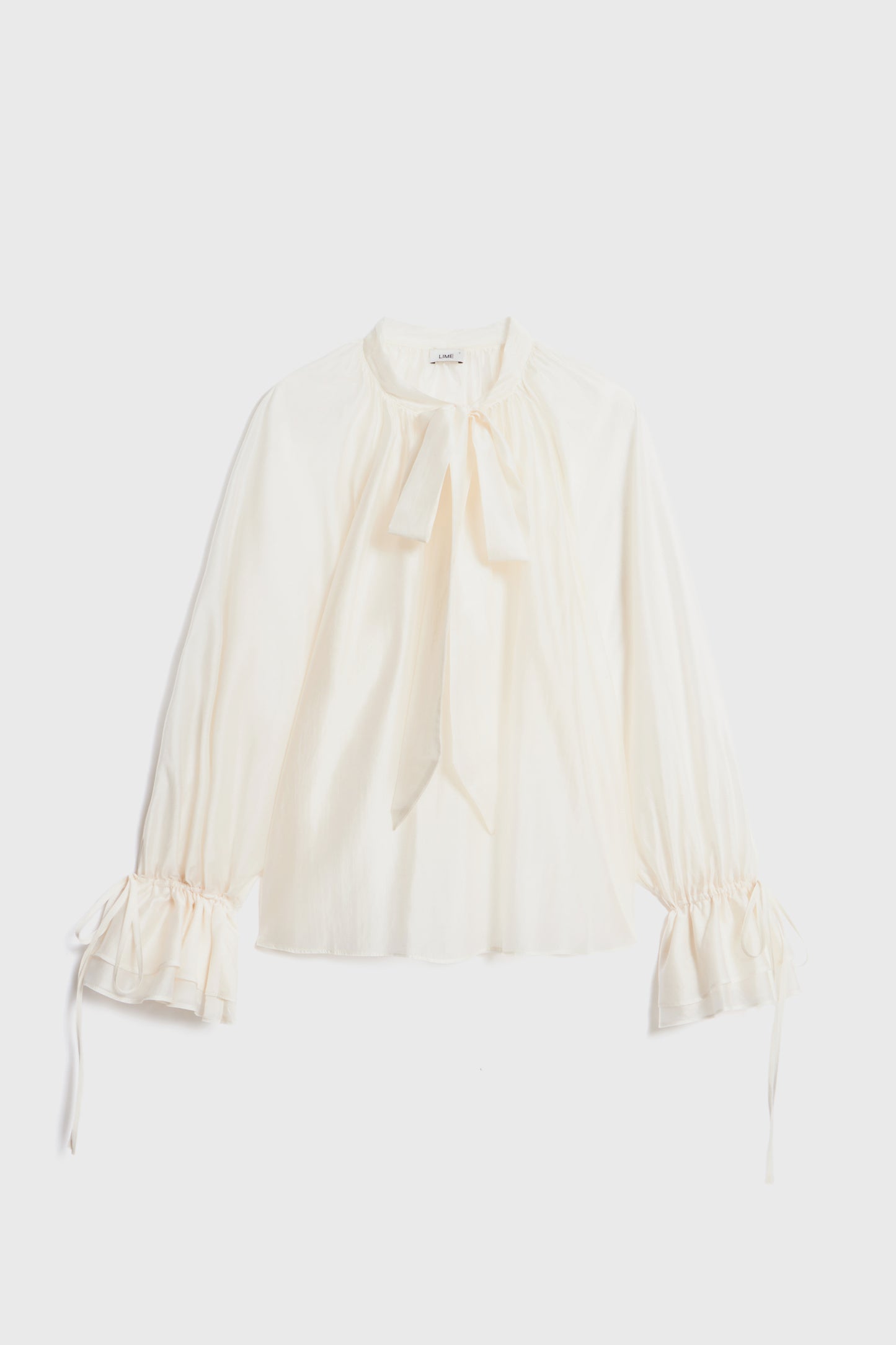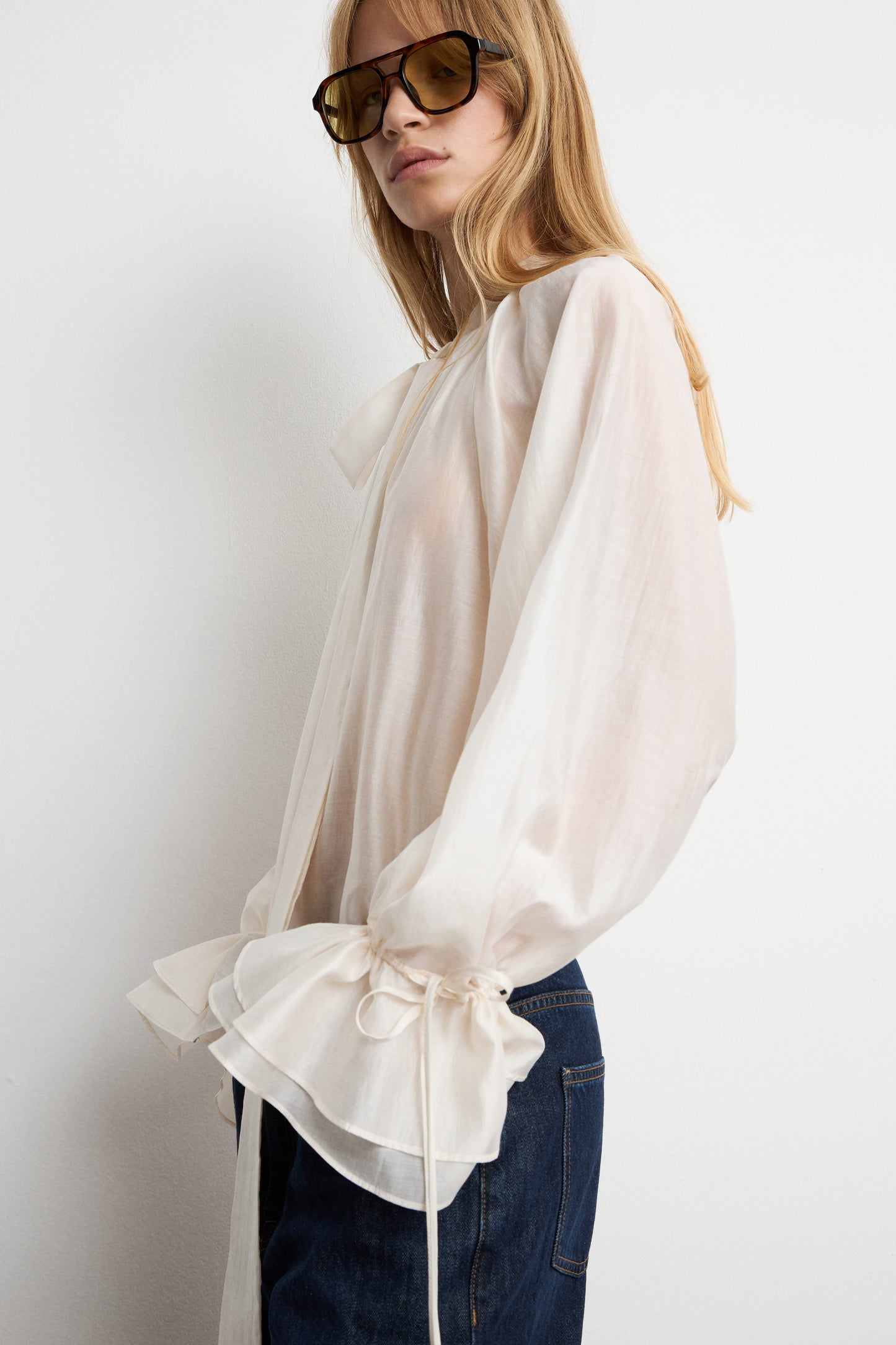 Loose-fit lavallière blouse in a woven lyocell blend. Long balloon sleeves with ties and wide cuffs.