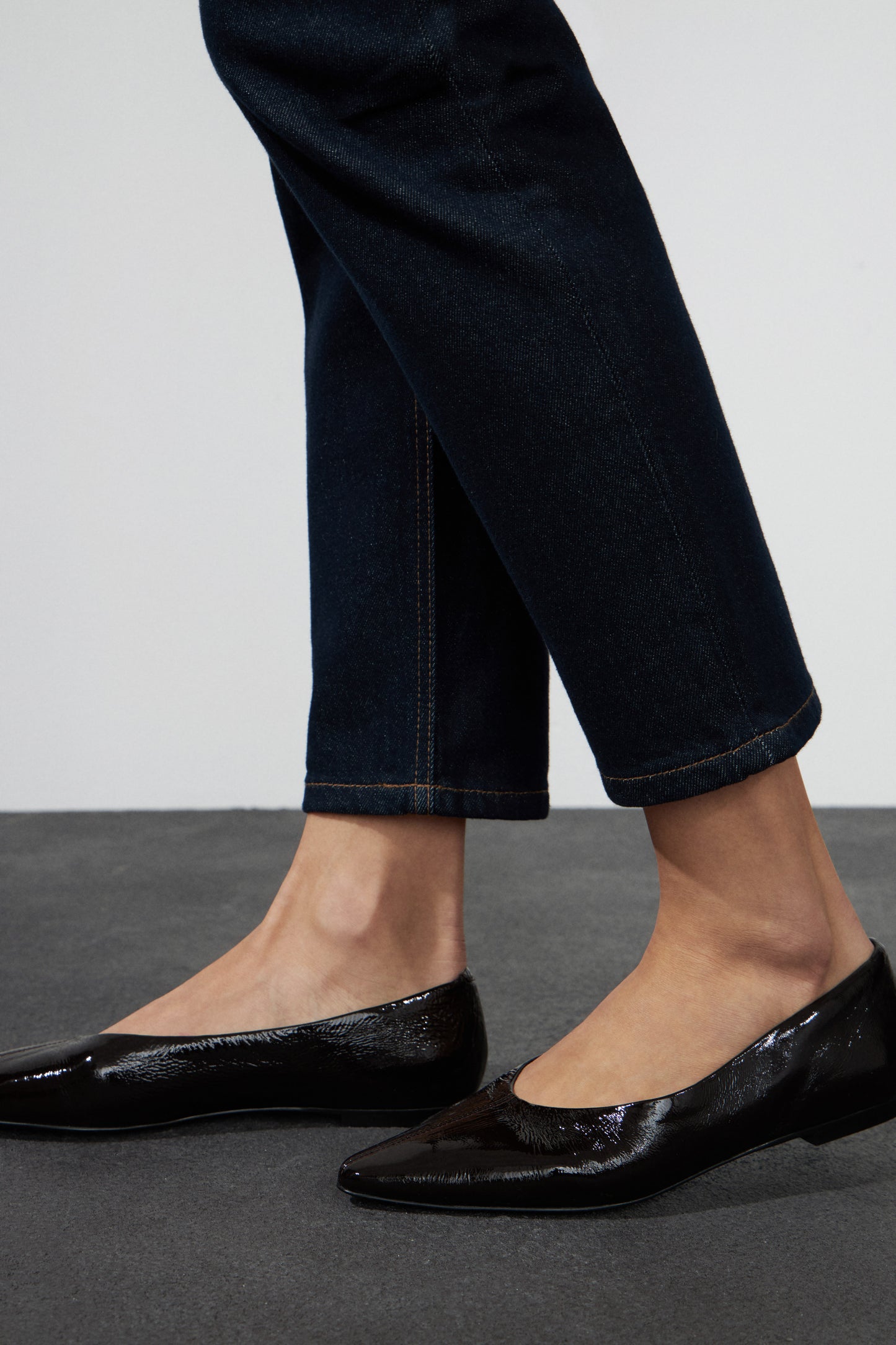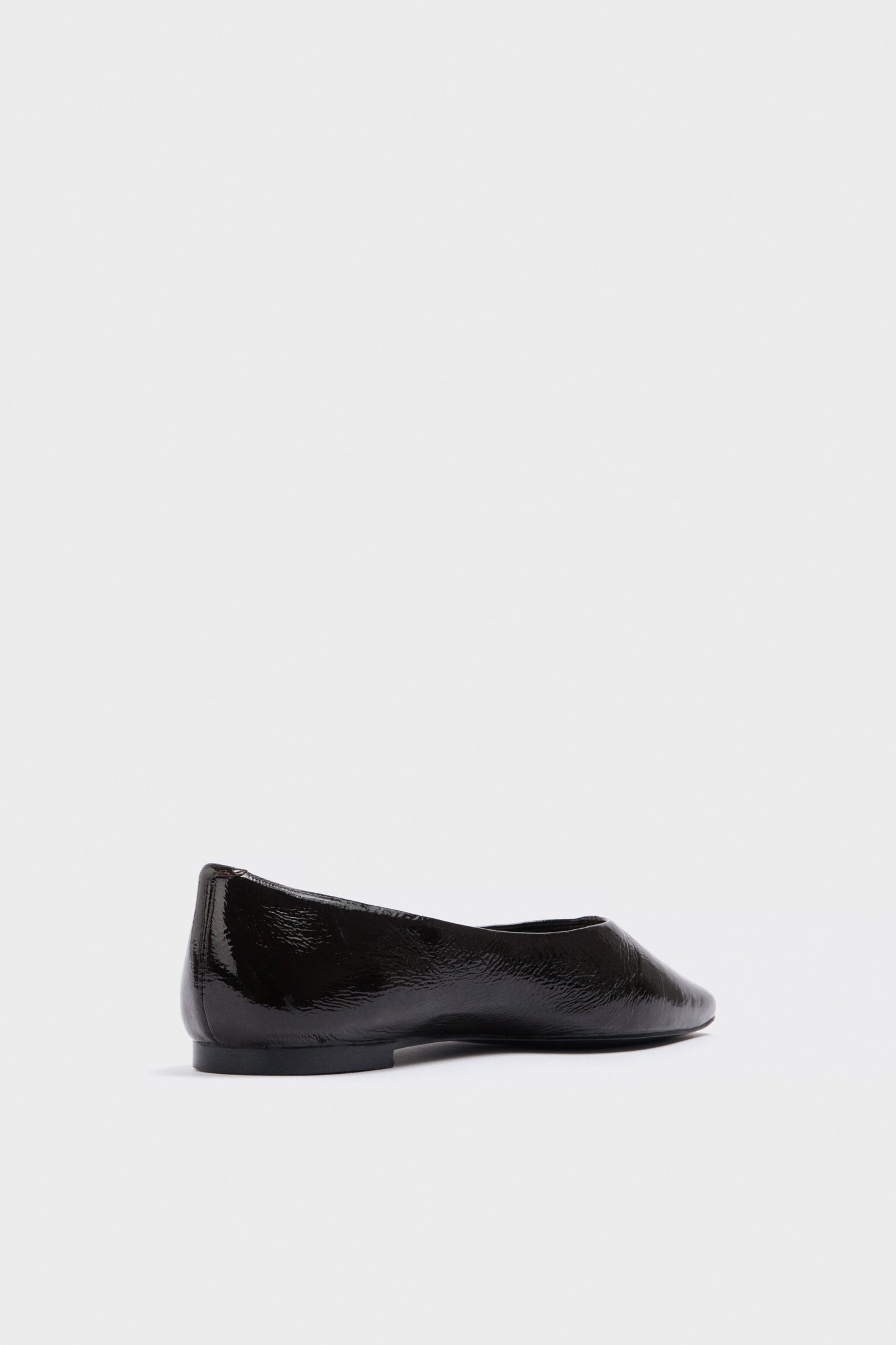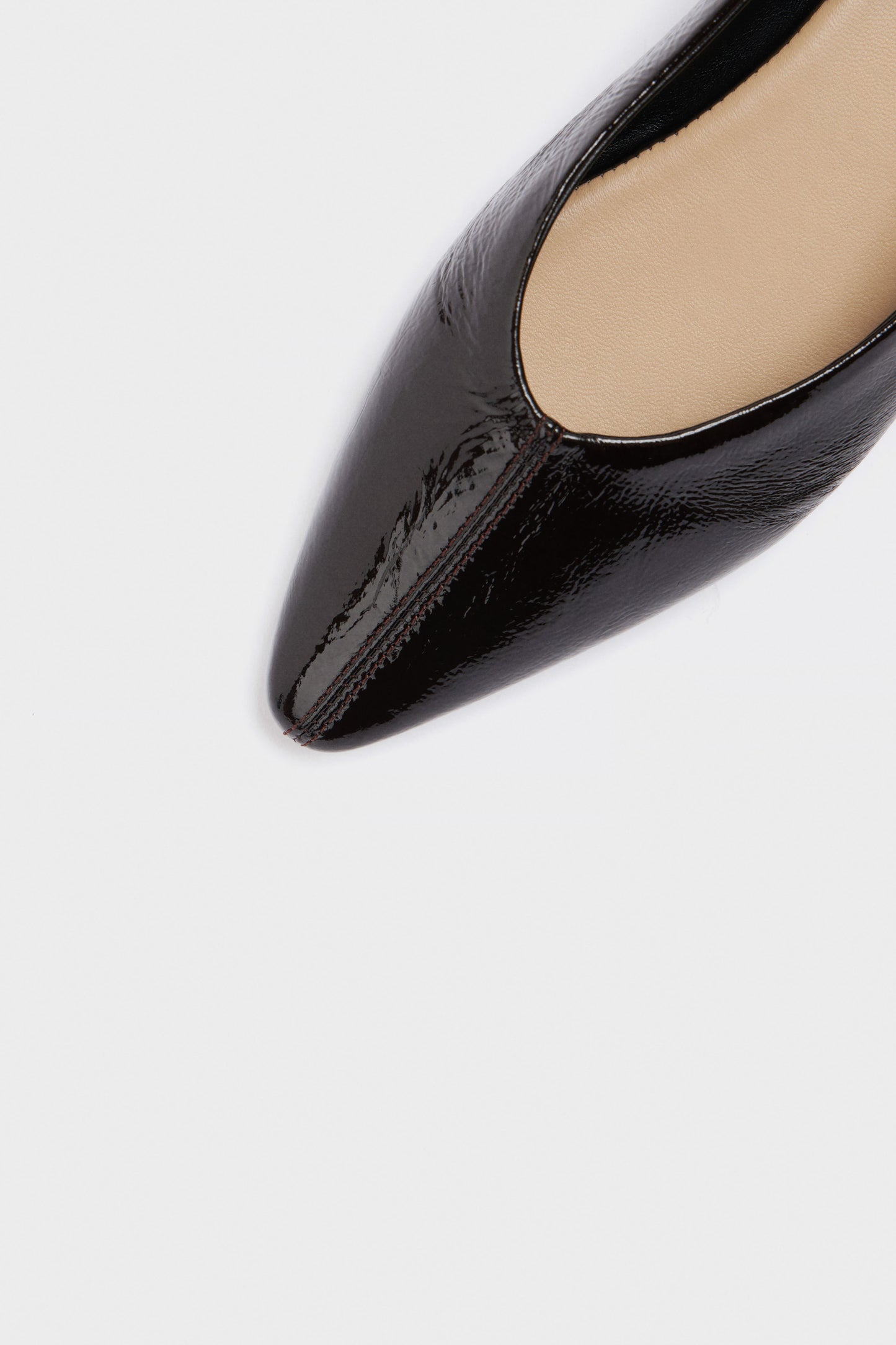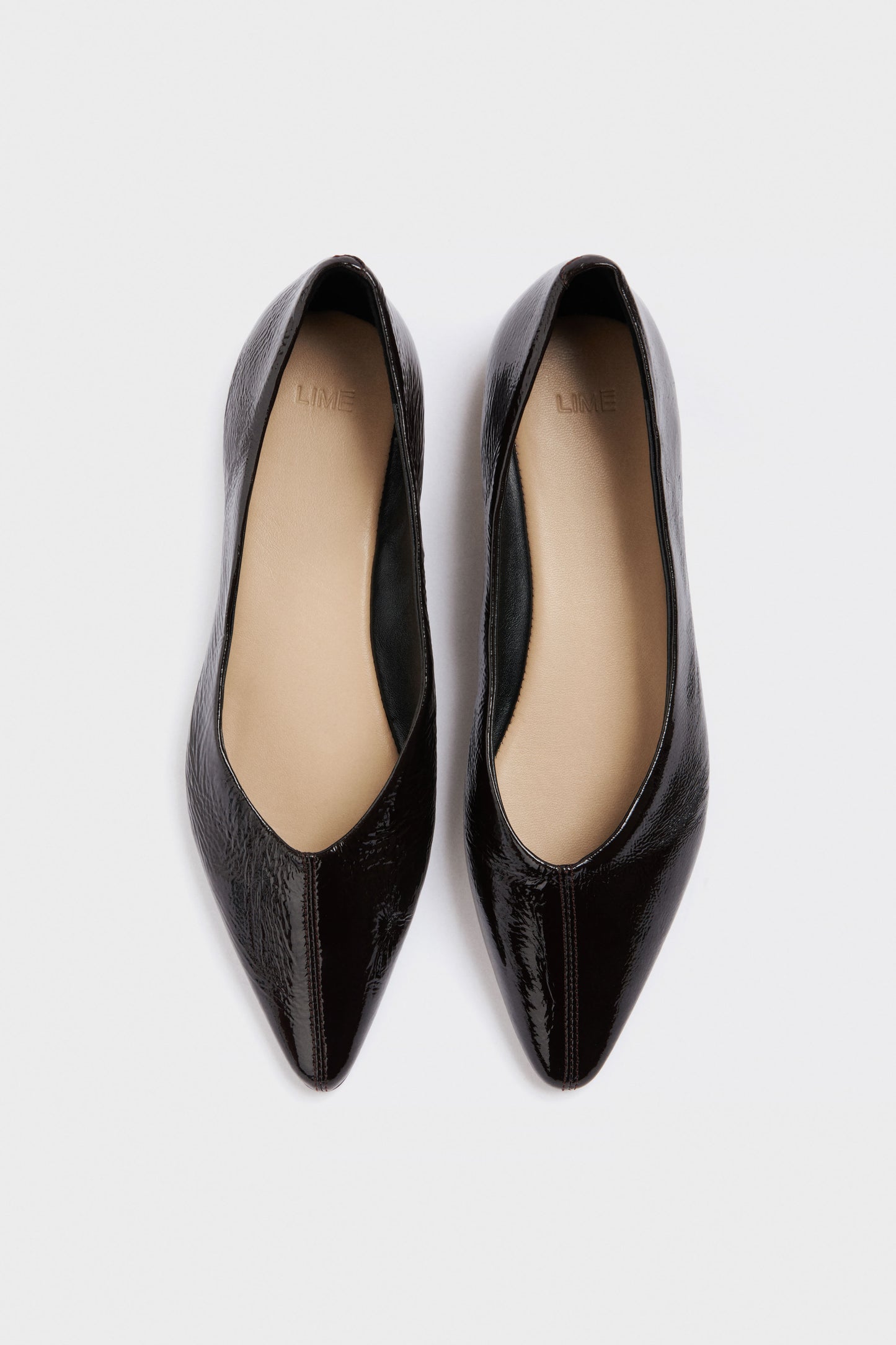 Classic flat shoes in shiny leather. Pointed toes. Leather lining and insoles. Your purchases are delivered with a fabric bag.