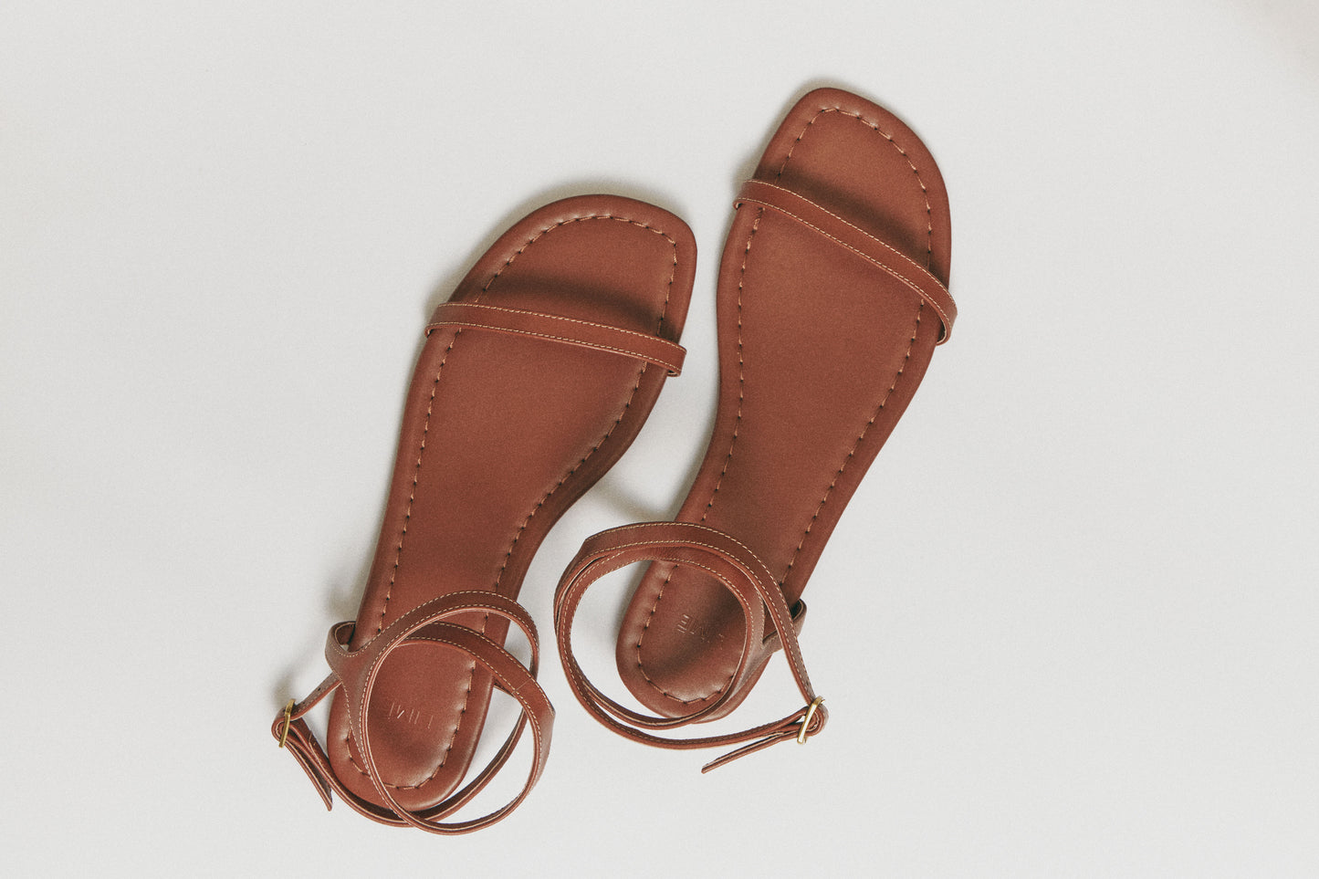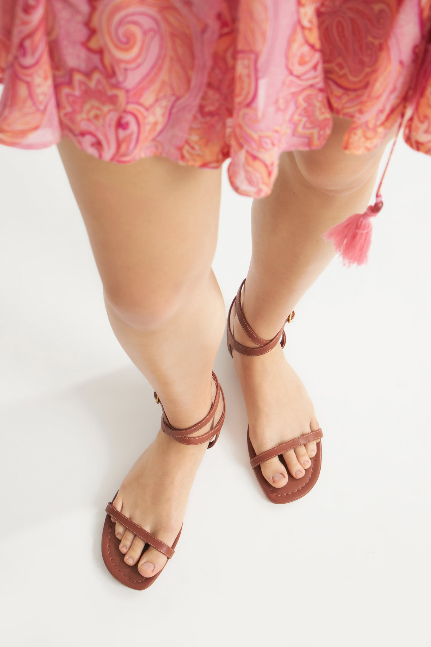 Leather sandals with square toes. They are designed with narrow vamps, crossover ankle straps and metal buckle. Your purchases are delivered with a fabric bag.