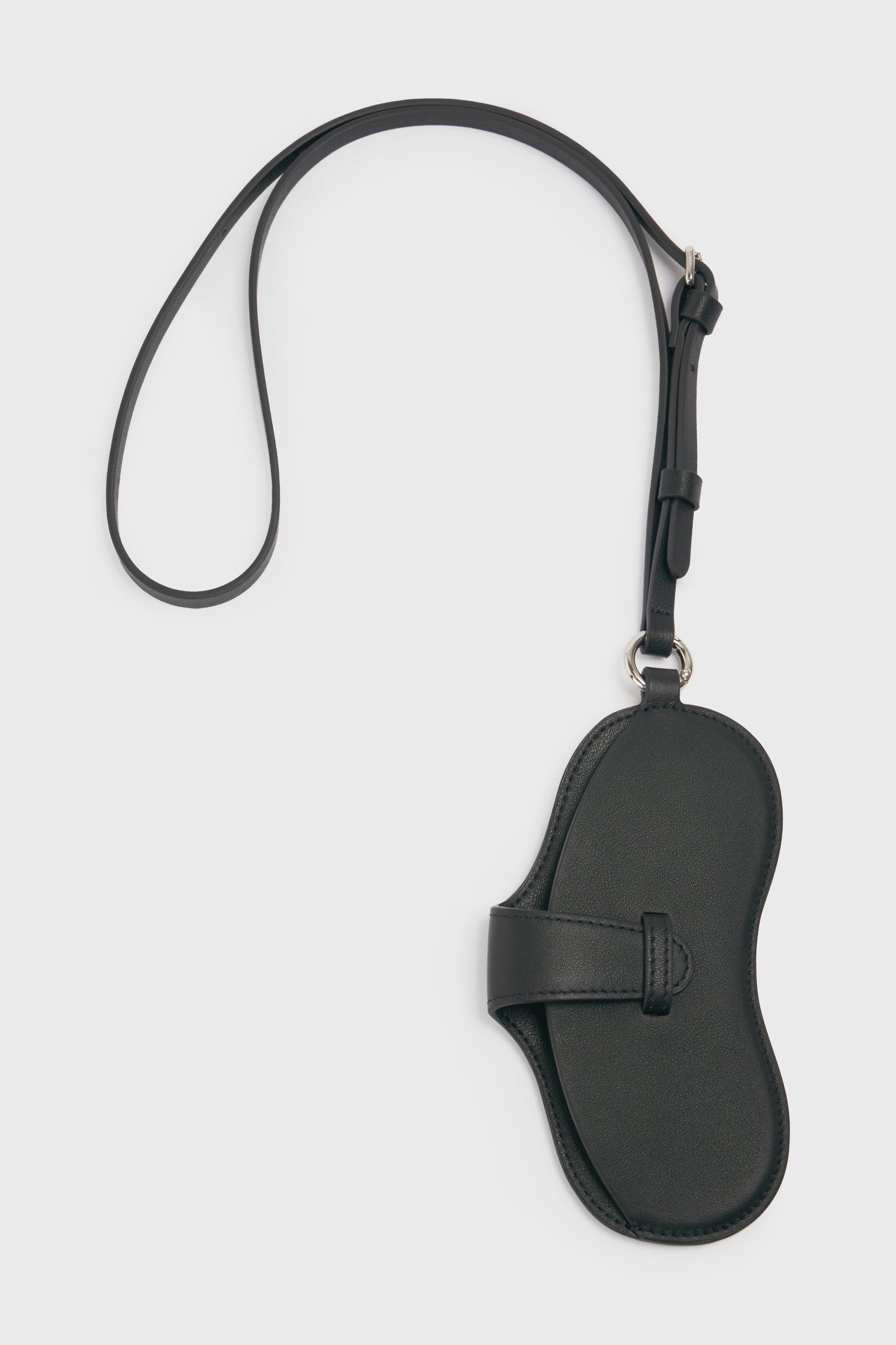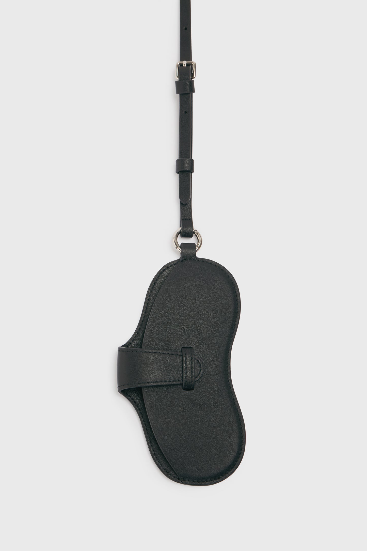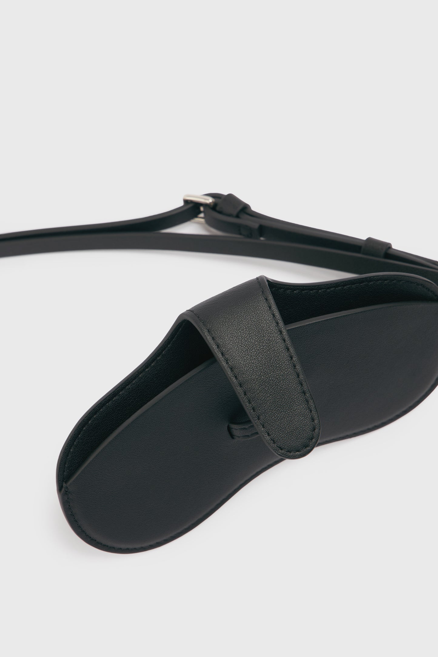 Case for sunglasses in soft leather featuring a long strap. Size: 16 x 0.3 x 7 cm (length x width x height).