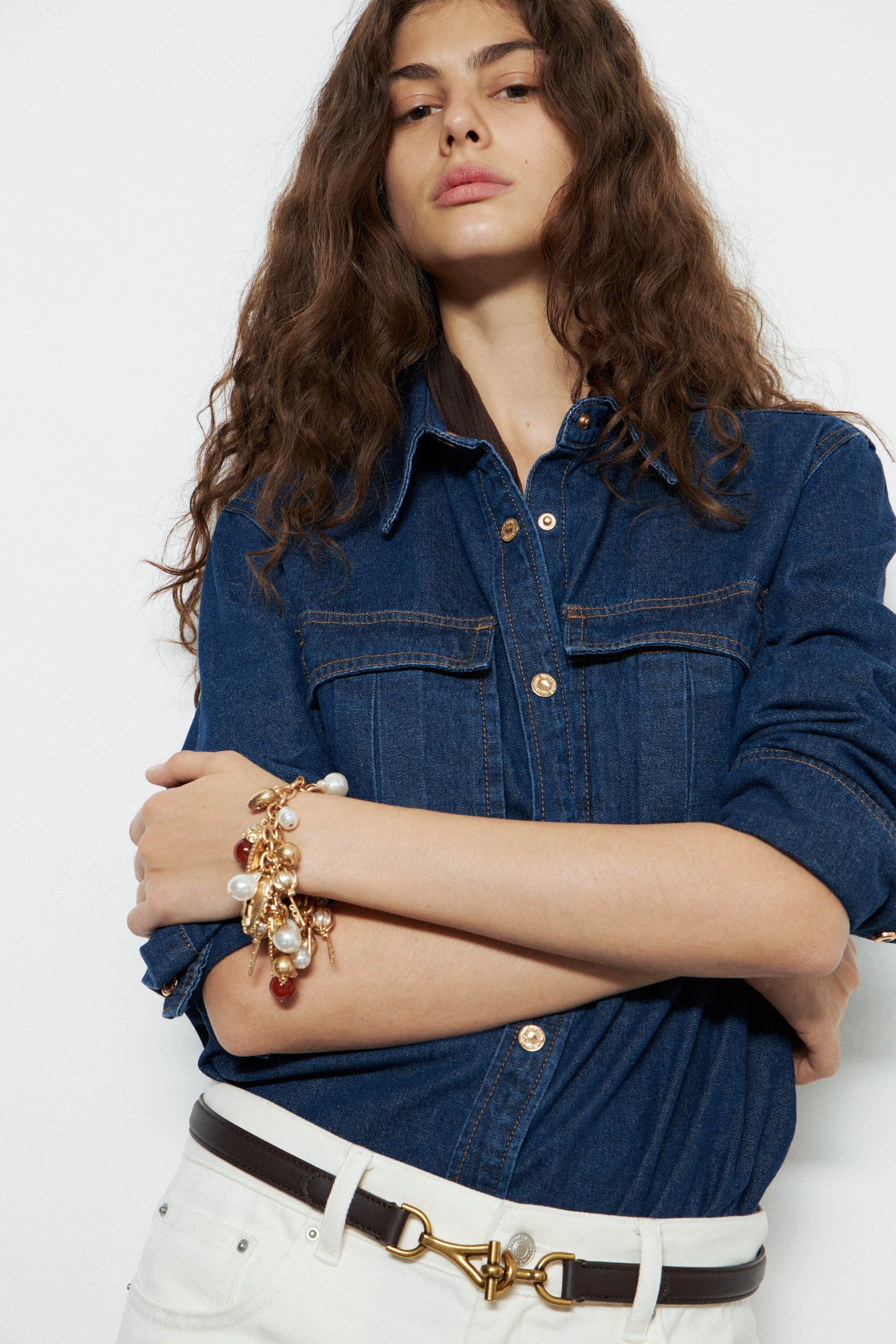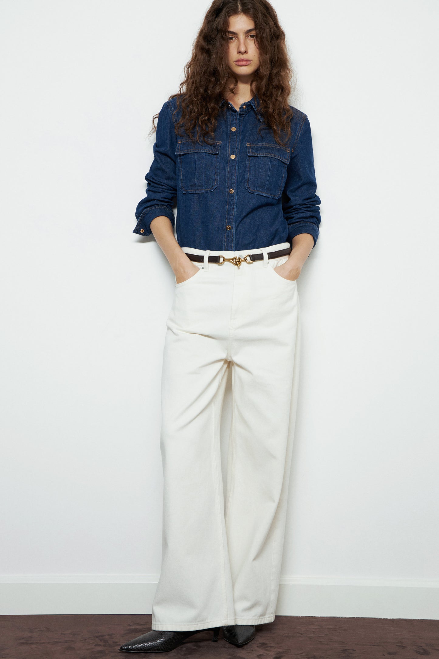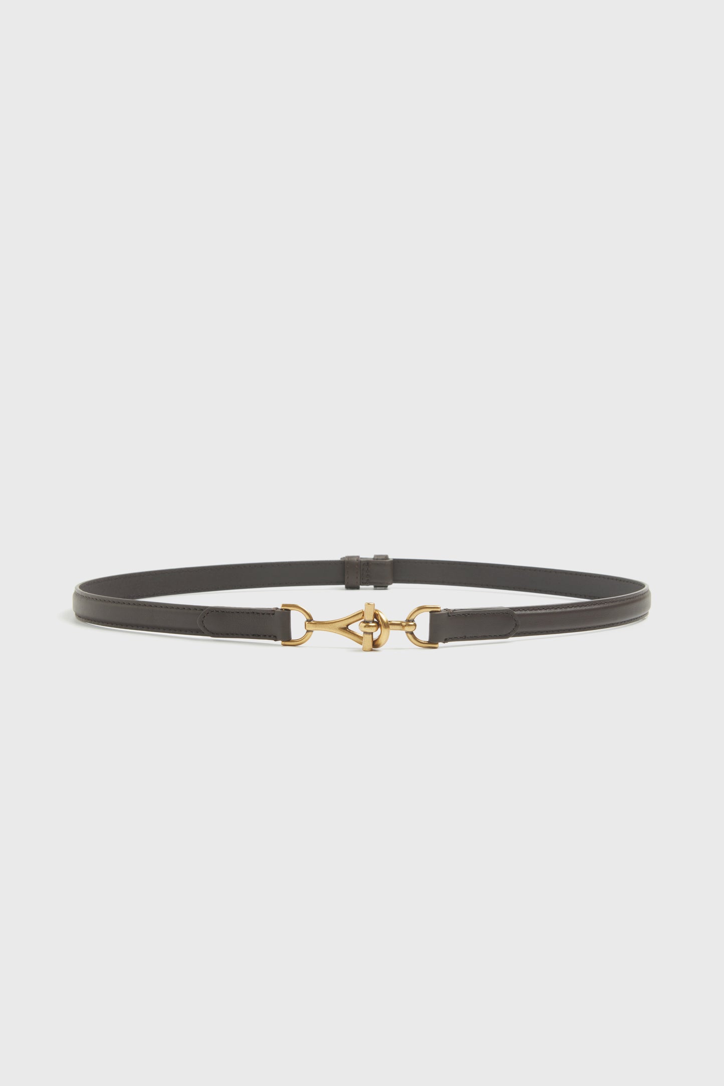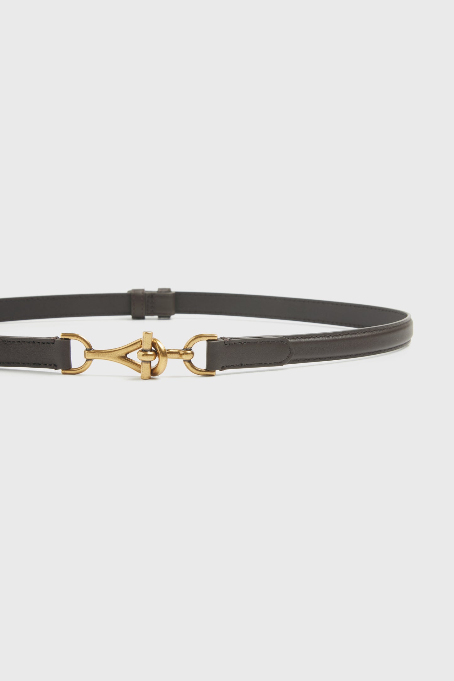 Adjustable belt made of genuine matte leather. Gold-tone buckle in an equestrian-inspired design, fastened with a metal hook. Size XS/S – 88 x 2,2 cm M/L – 100 x 2,2 cm