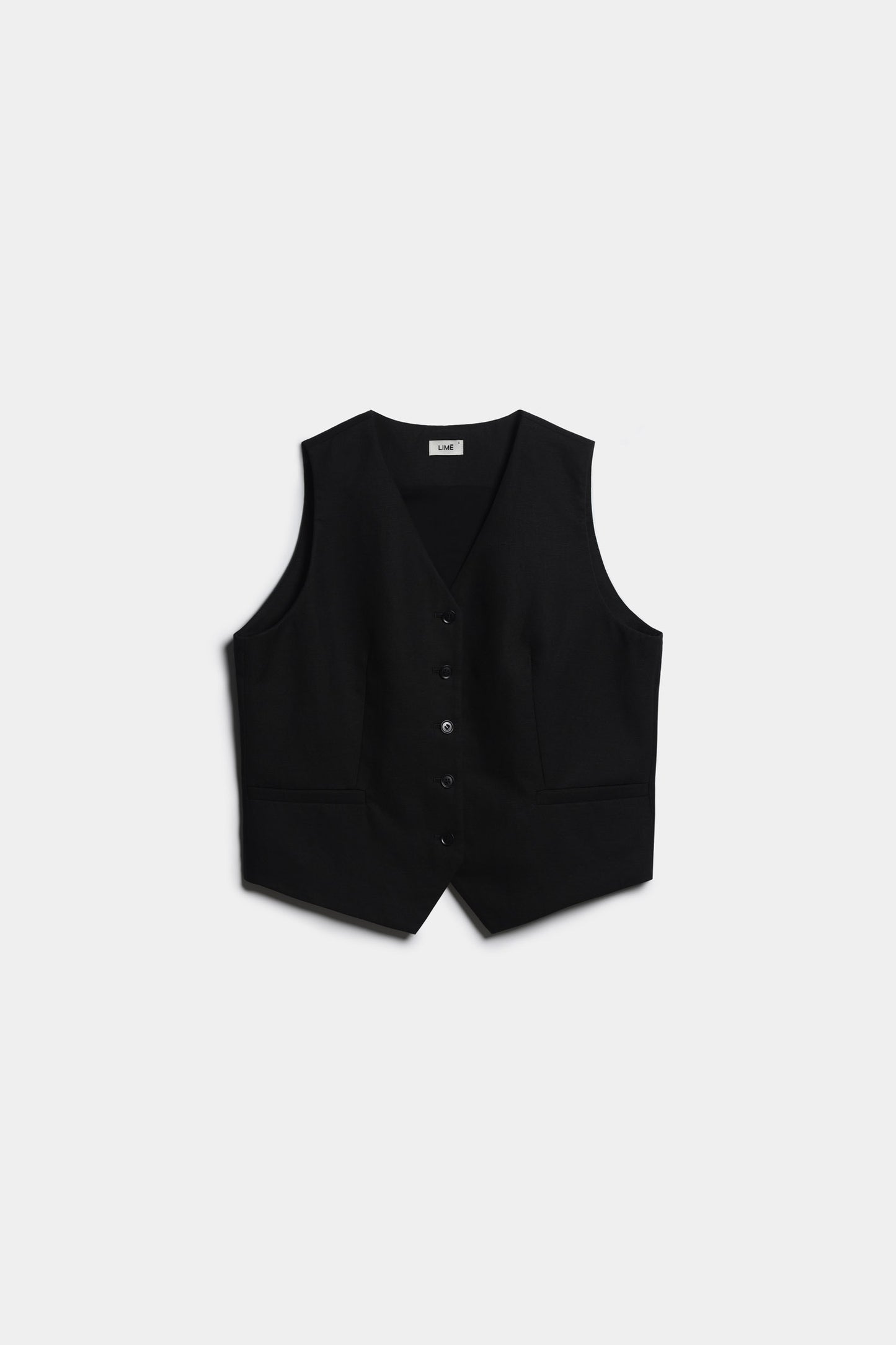 Single-breasted waistcoat with a V-shaped neckline and buttons down the front made from a lyocell and linen blend. Fake welt pockets at the front. Pointed hems. Cotton lining. Straight fit.