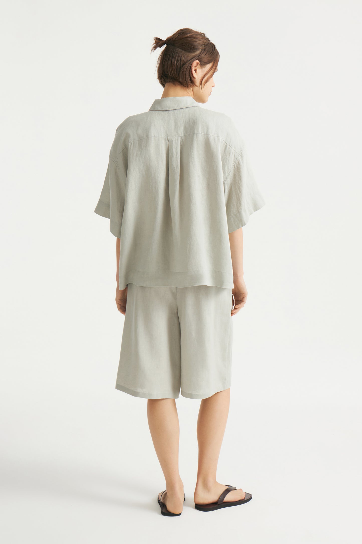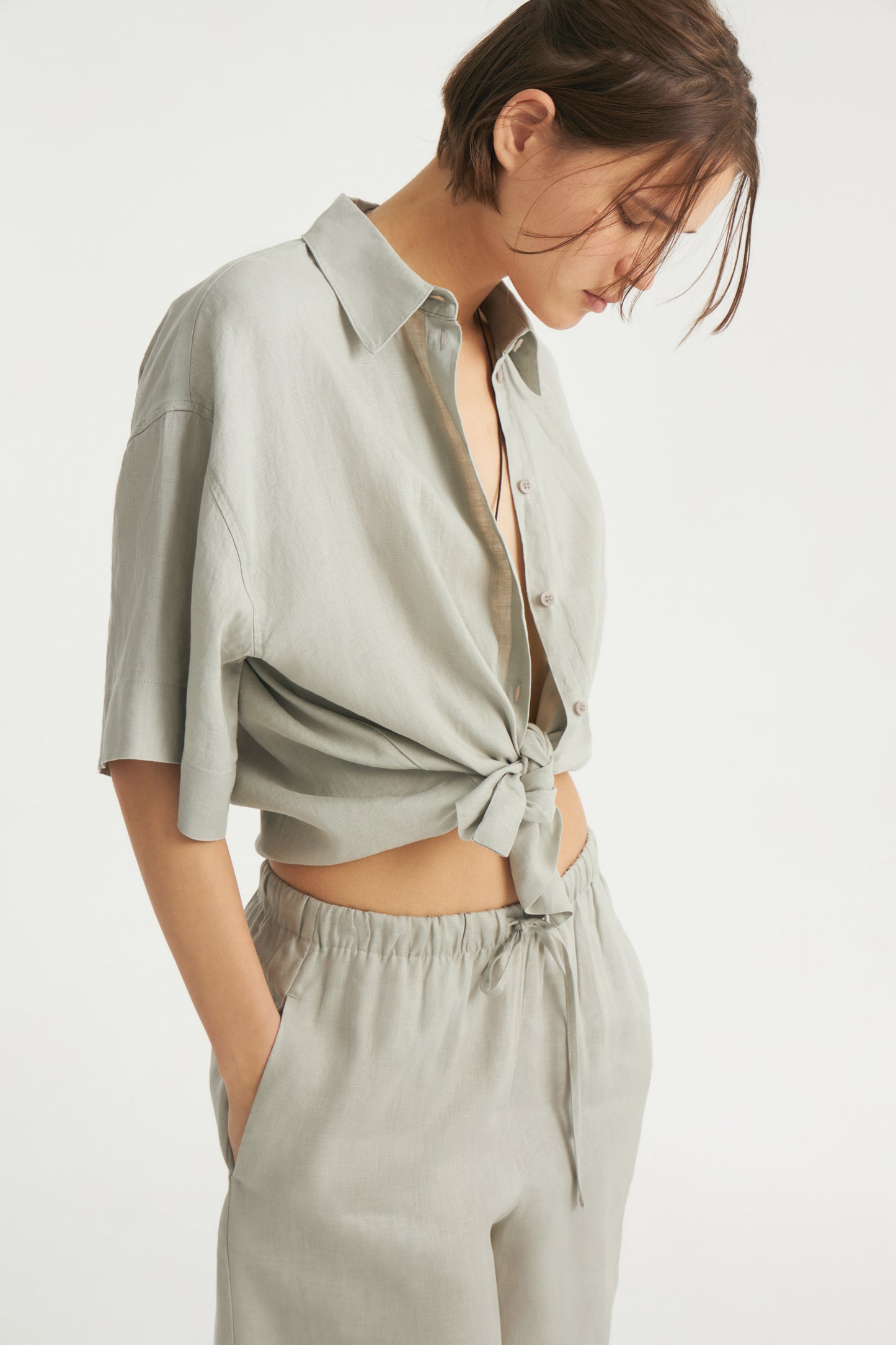 Relaxed-fit shirt in airy linen with a collar, button front, short sleeves and straight-cut hem. Fabric made from linen is breathable, beautiful both ironed and wrinkled, and softens over time.