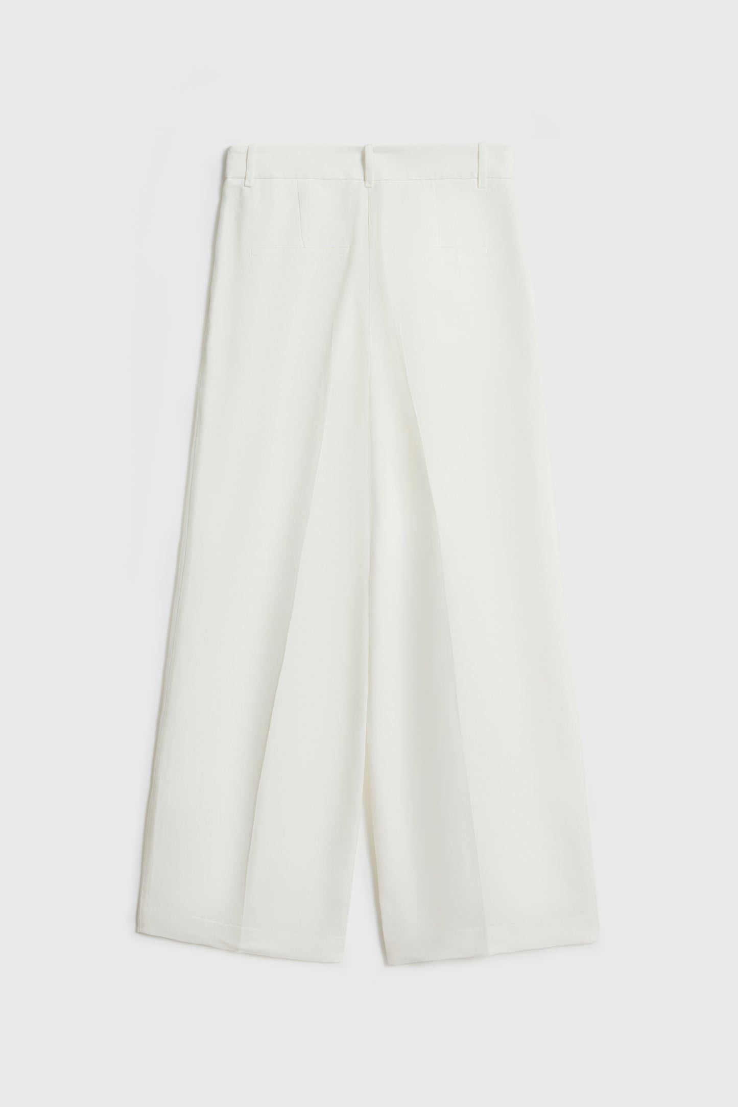 Trousers in lyocell and linen blend with darts. Straight-leg design. Featuring front pockets and fake welt pockets. Front zip fly, button and metal hook fastening.