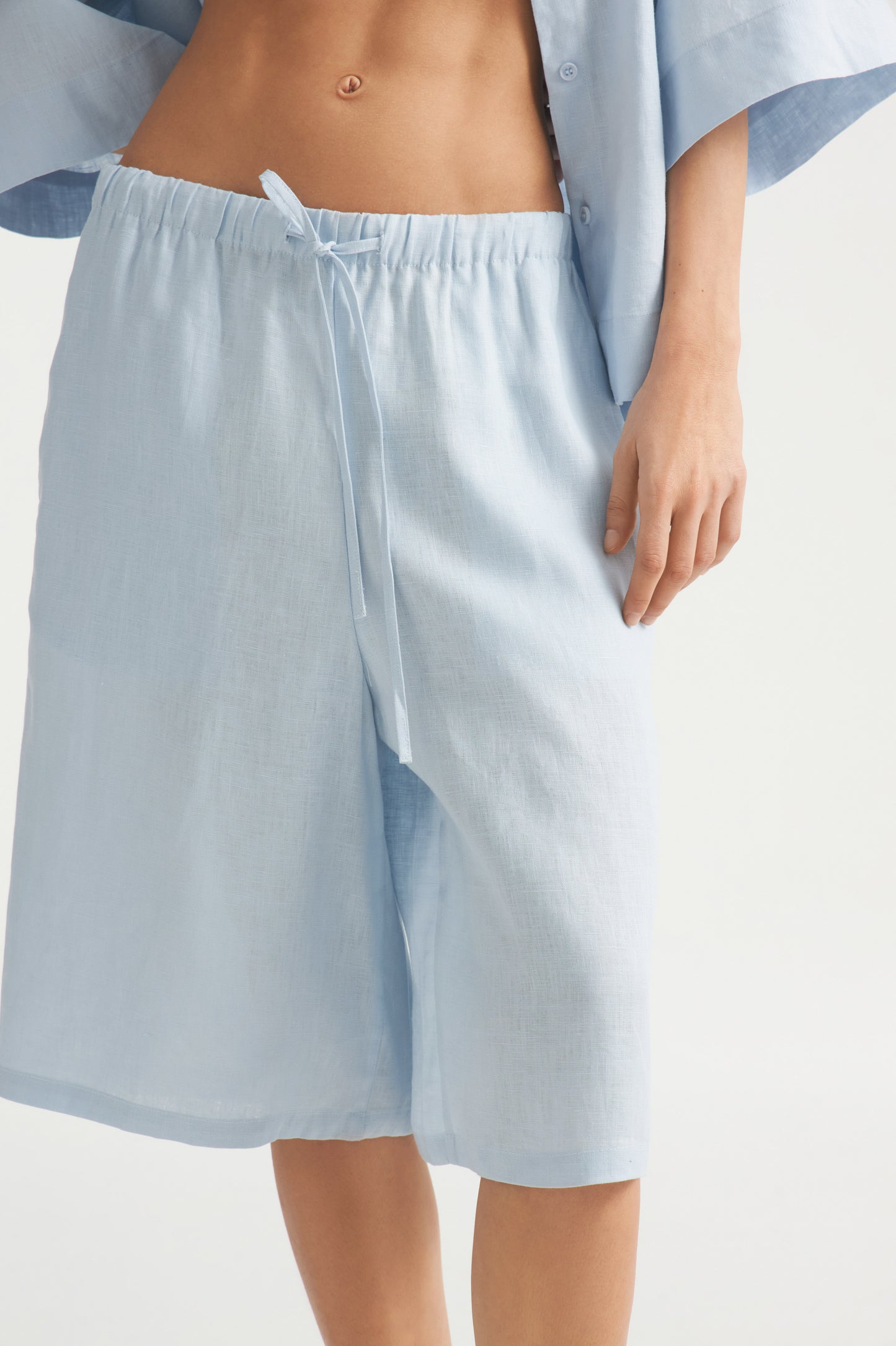 Wide-leg shorts in airy linen with an adjustable drawstring waist and front pockets.