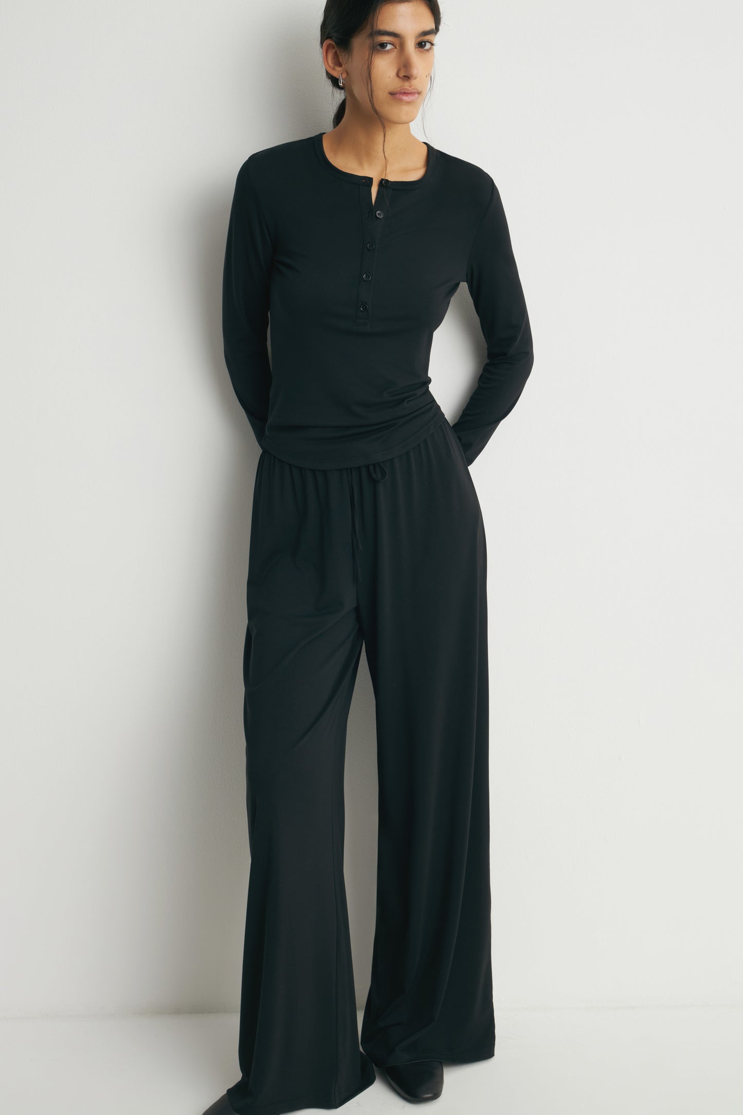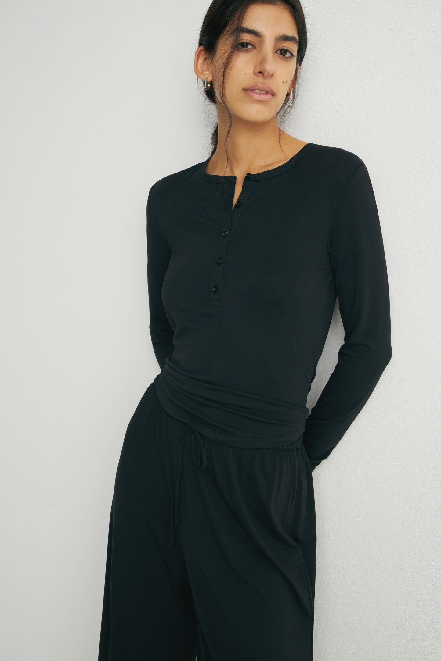 Long-sleeved Henley top in modal blend with a button placket. Slim fit with round neckline.