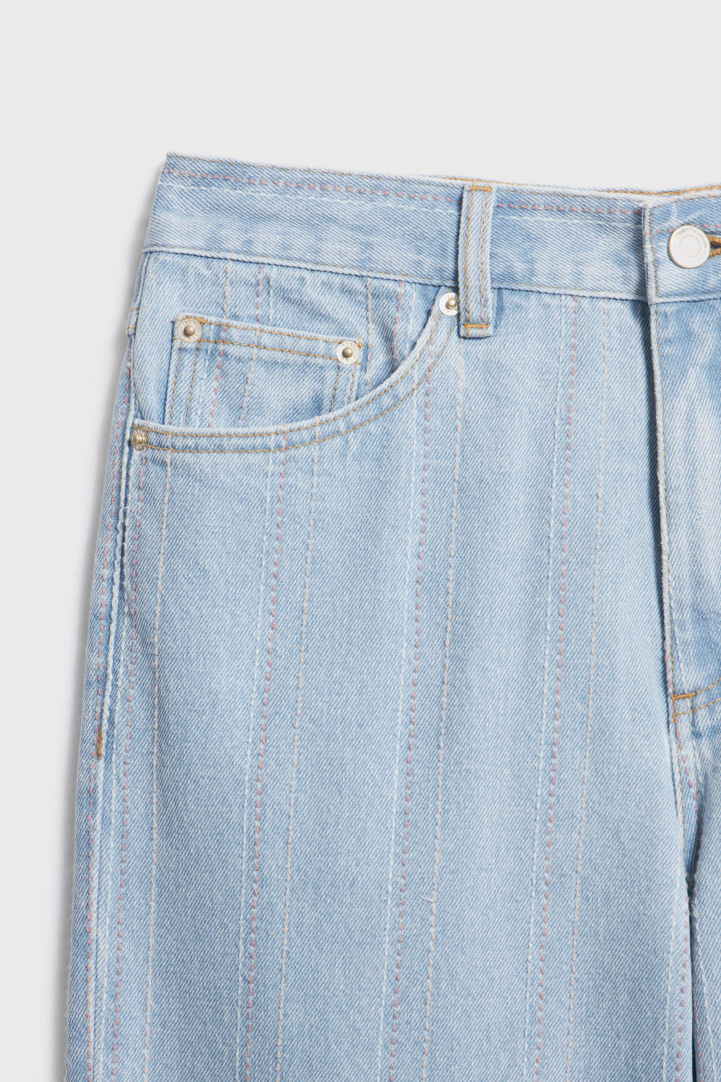 Low-waist jeans with a five-pocket design crafted from cotton blend denim. Relaxed fit and loose legs. Faded effect. Embroidered stripes detailing. Front zip fly and top button fastening.