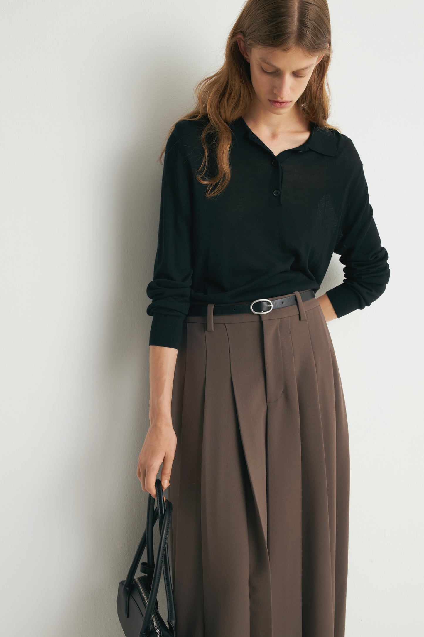 LYOCELL AND WOOL KNIT POLO SWEATER