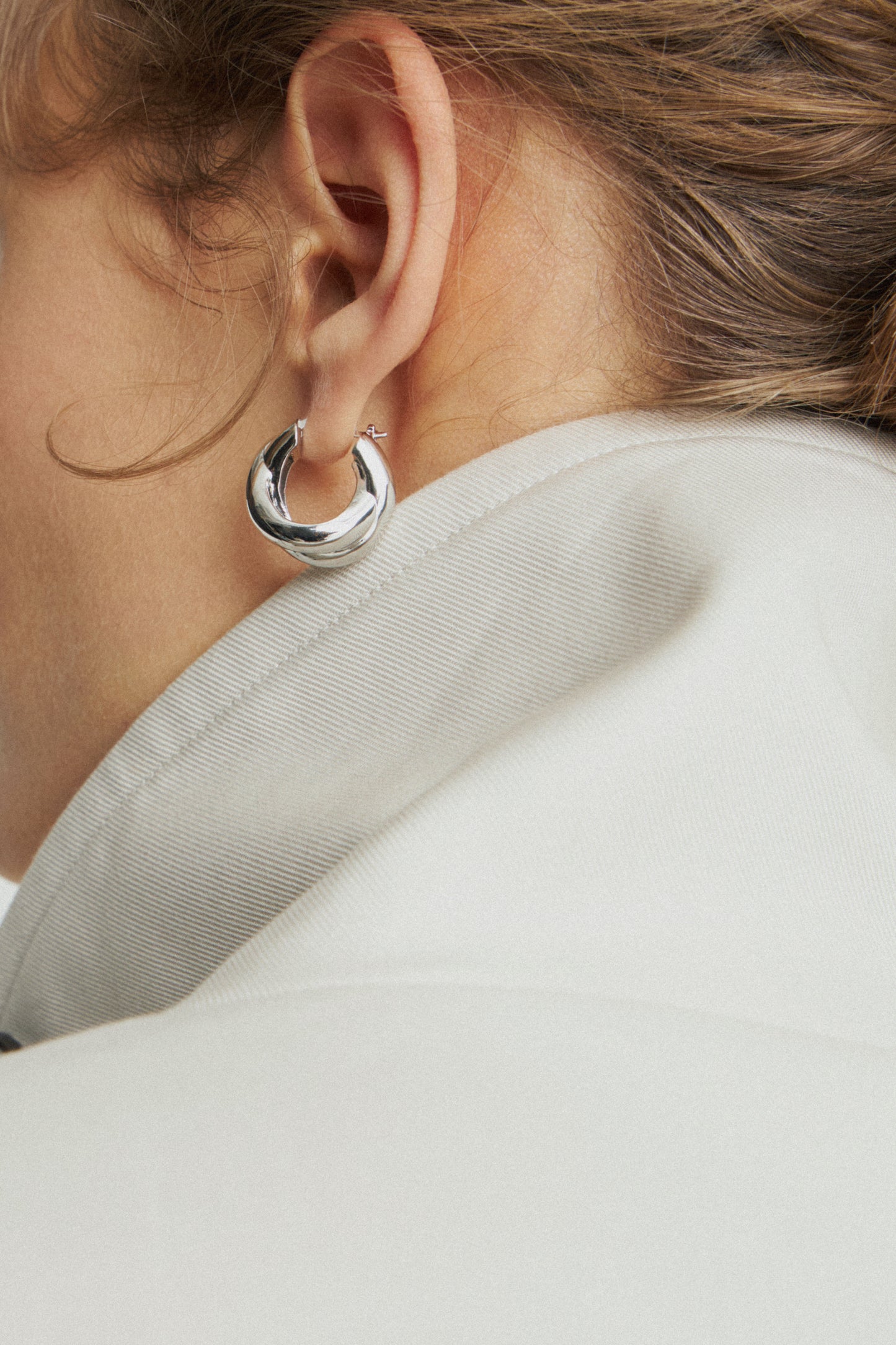Chunky hoop earrings in metal with a rounded and crossed-look elements. Lever clasp.