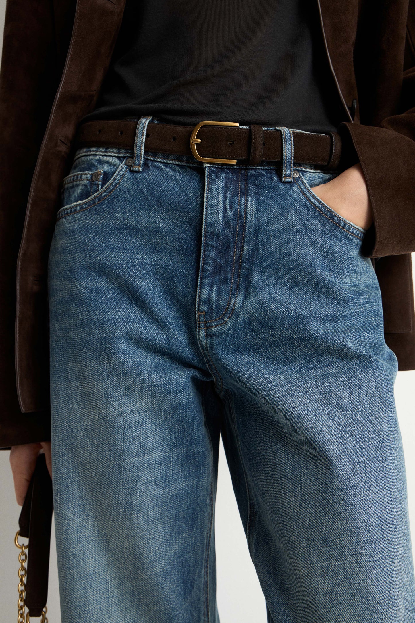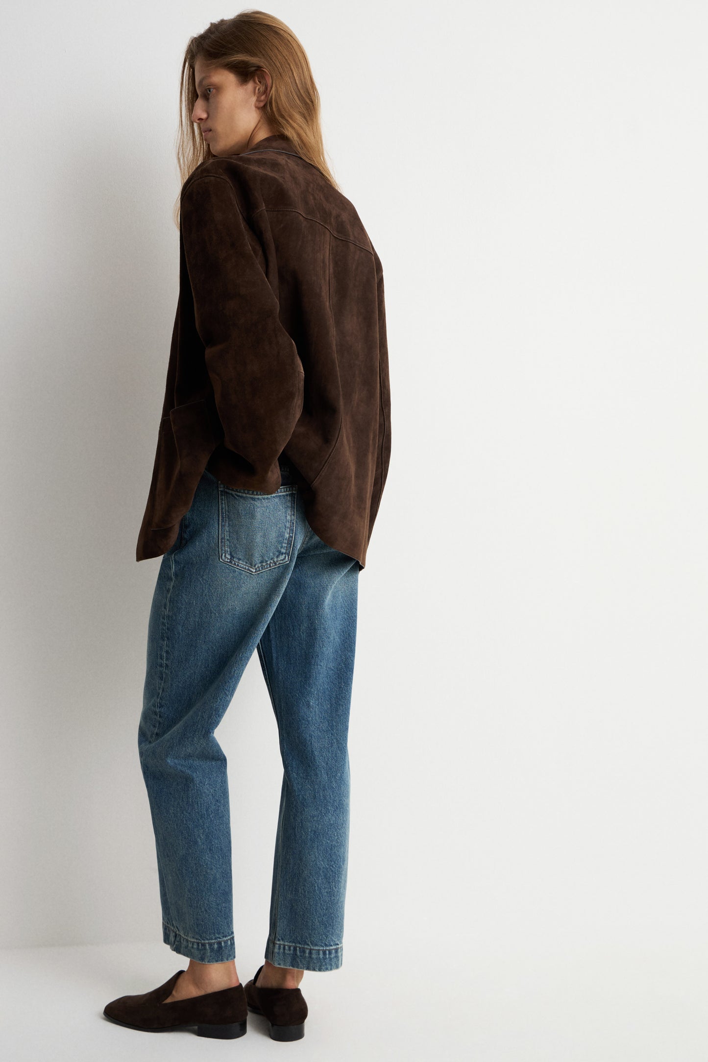 Mid-waist jeans with a five-pocket design. Straight legs. Front zip fly and metal button fastening.