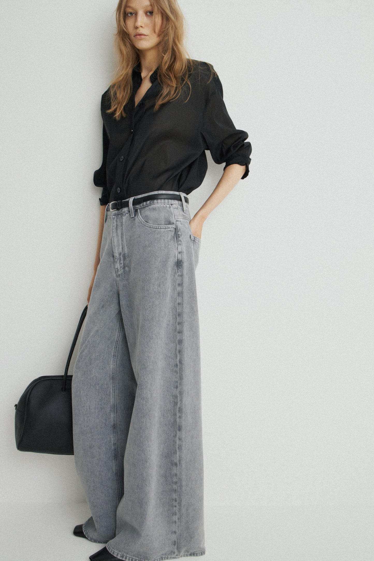 Mid-waist jeans with five pockets. Extra wide-leg design. Faded effect. Ripped detailing. Front zip fly and top button fastening.